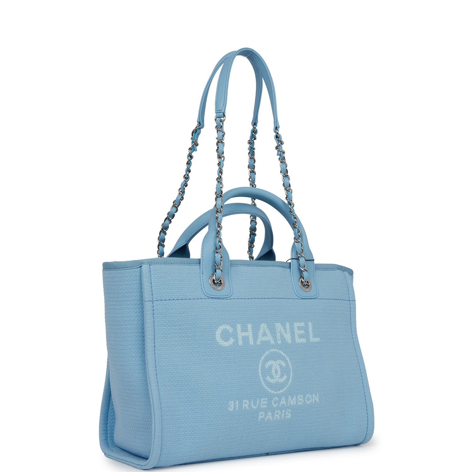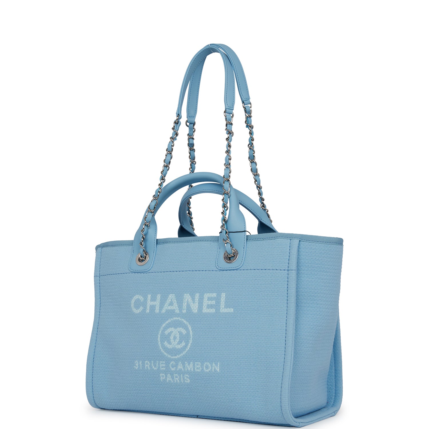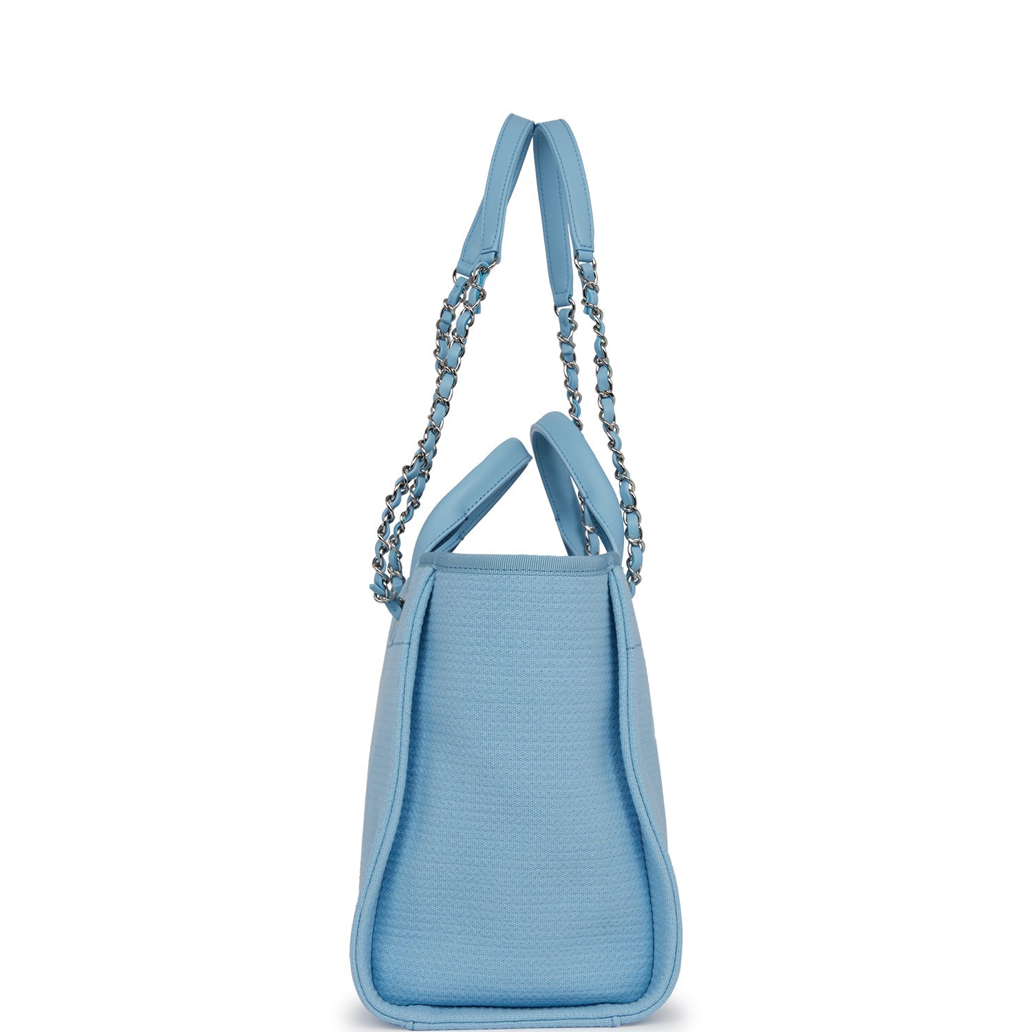 Chanel Small Deauville Shopping Bag Blue Boucle Silver Hardware