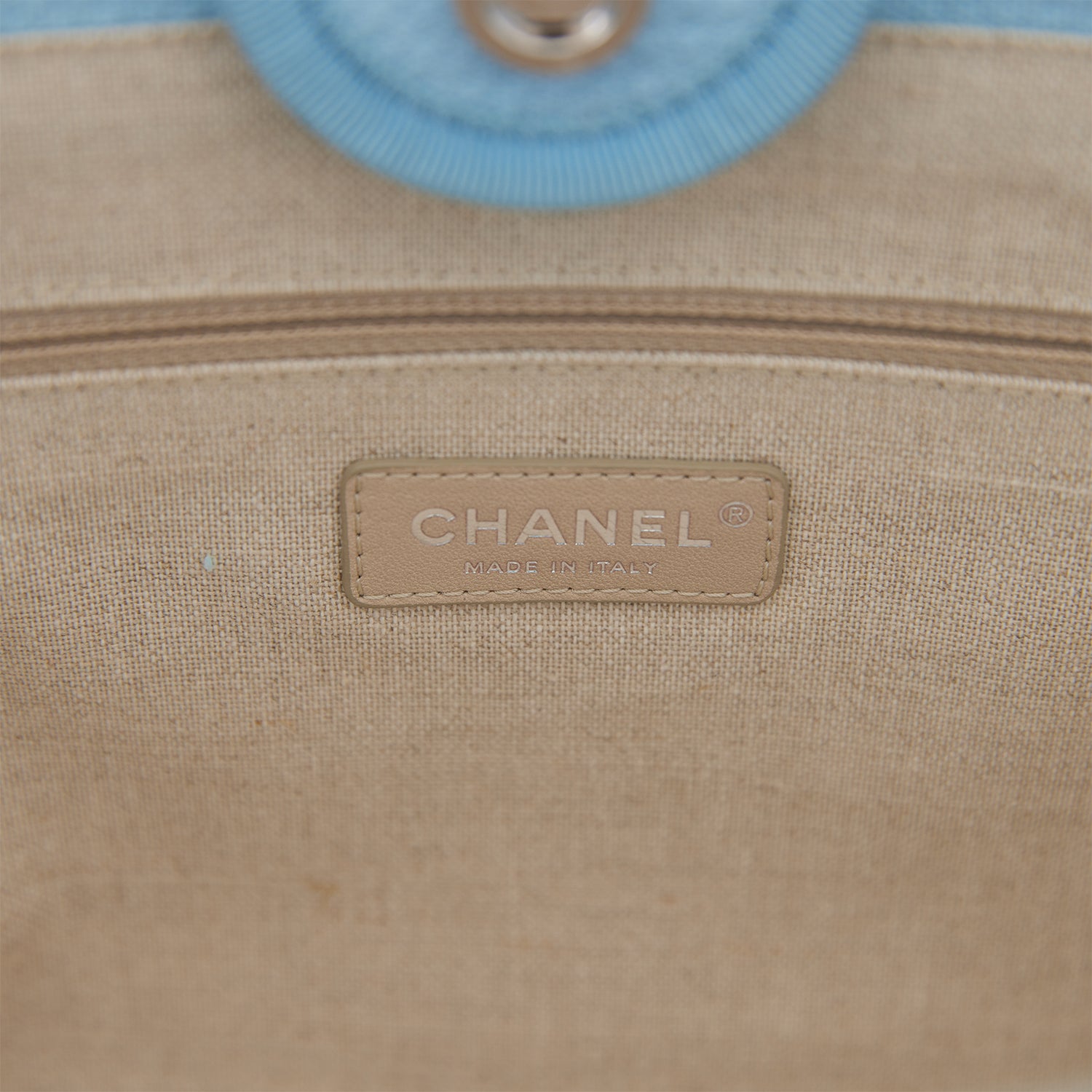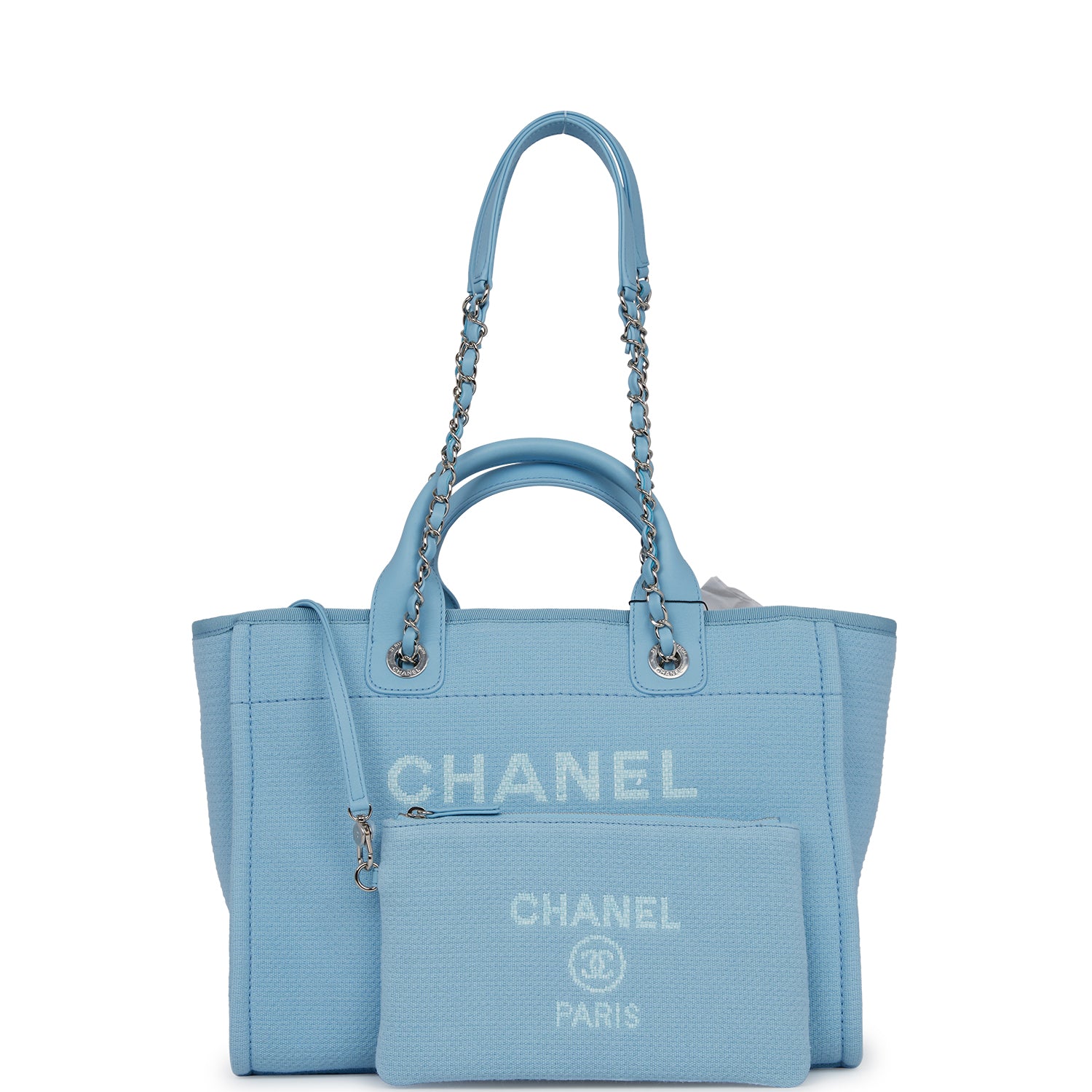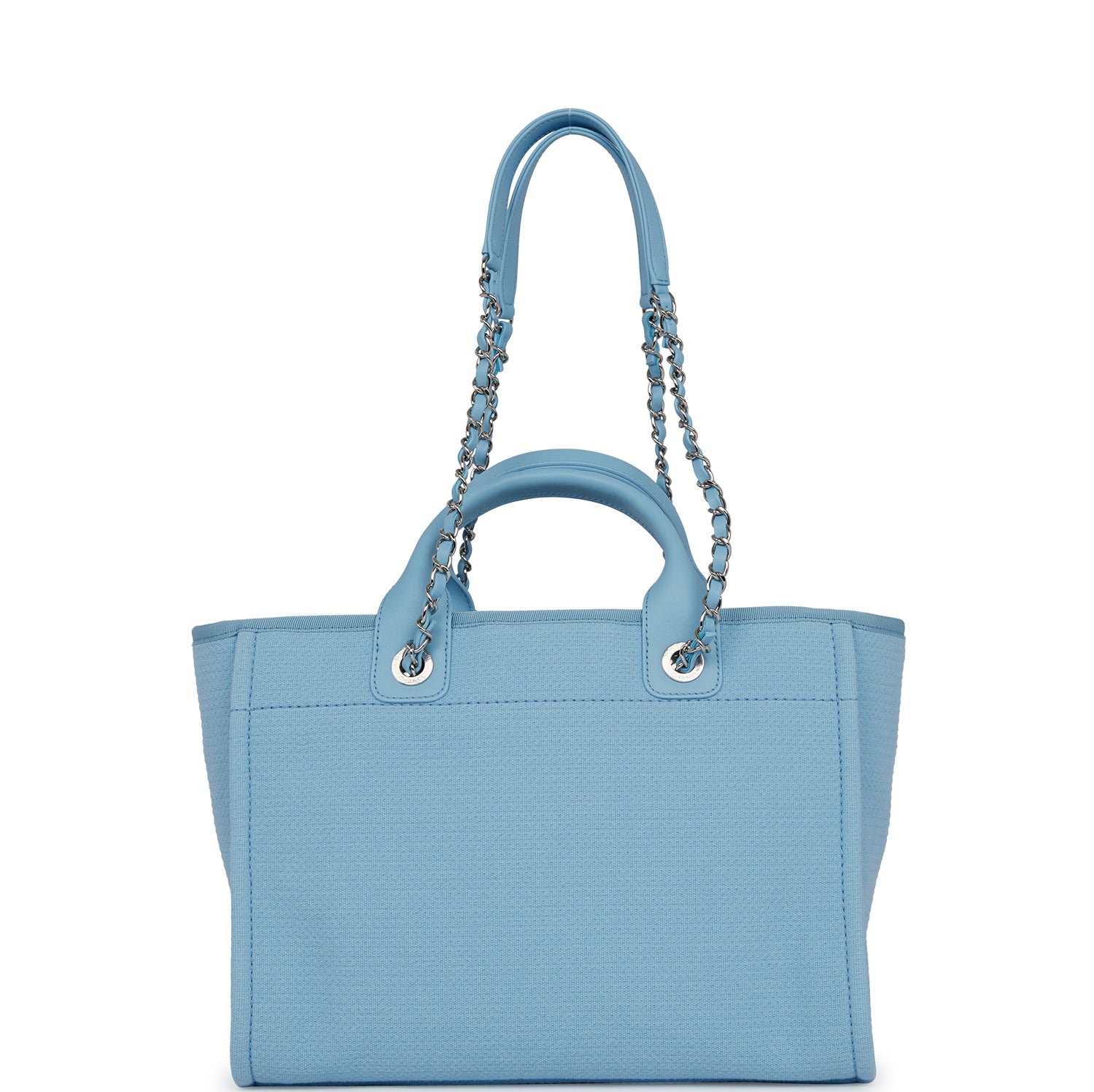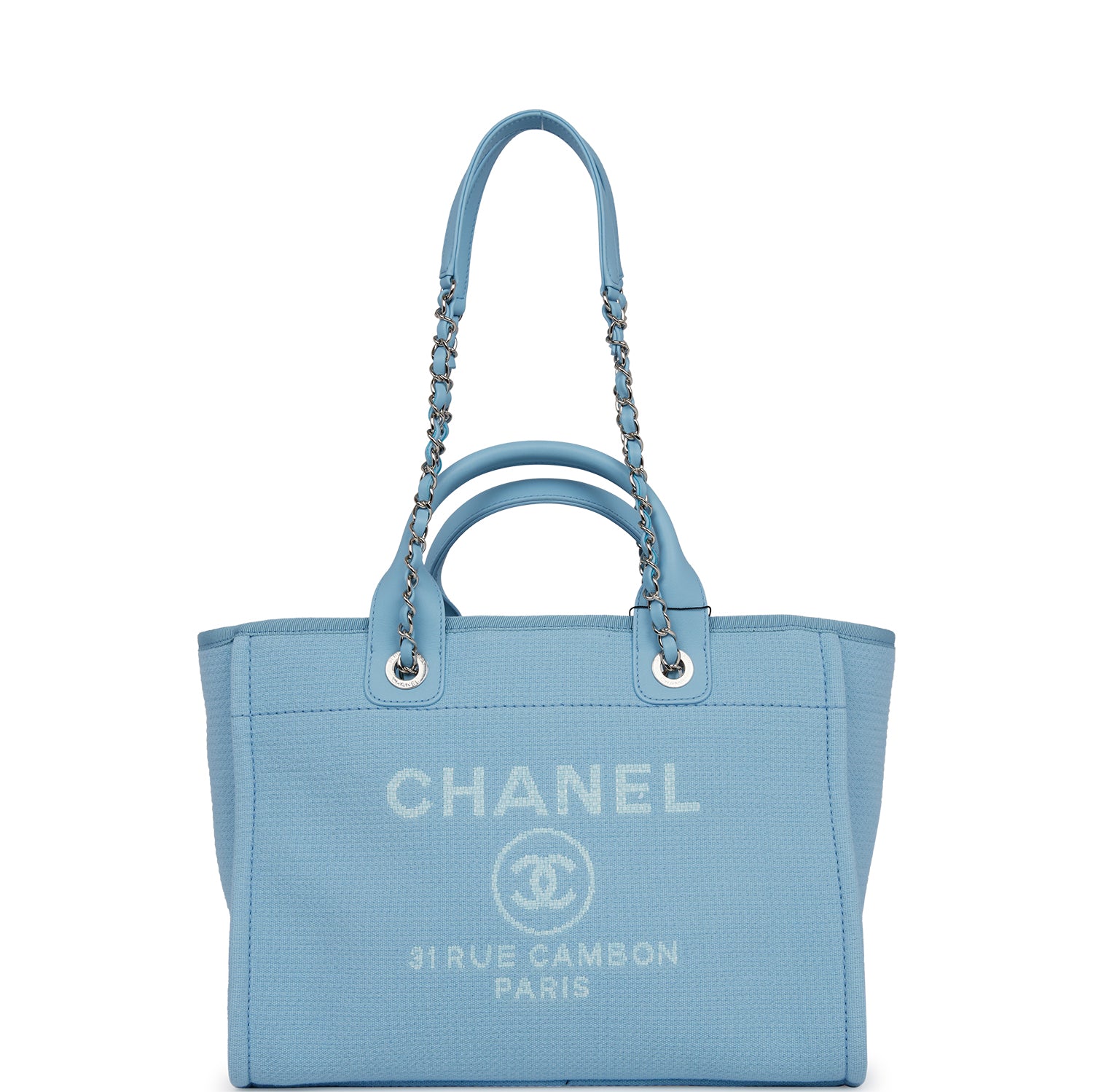 Chanel Small Deauville Shopping Bag Blue Boucle Silver Hardware