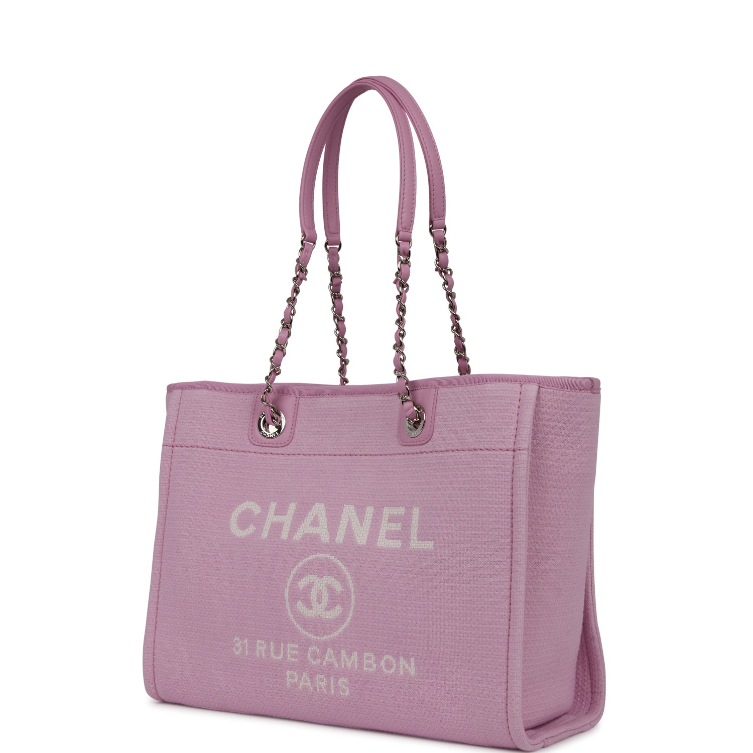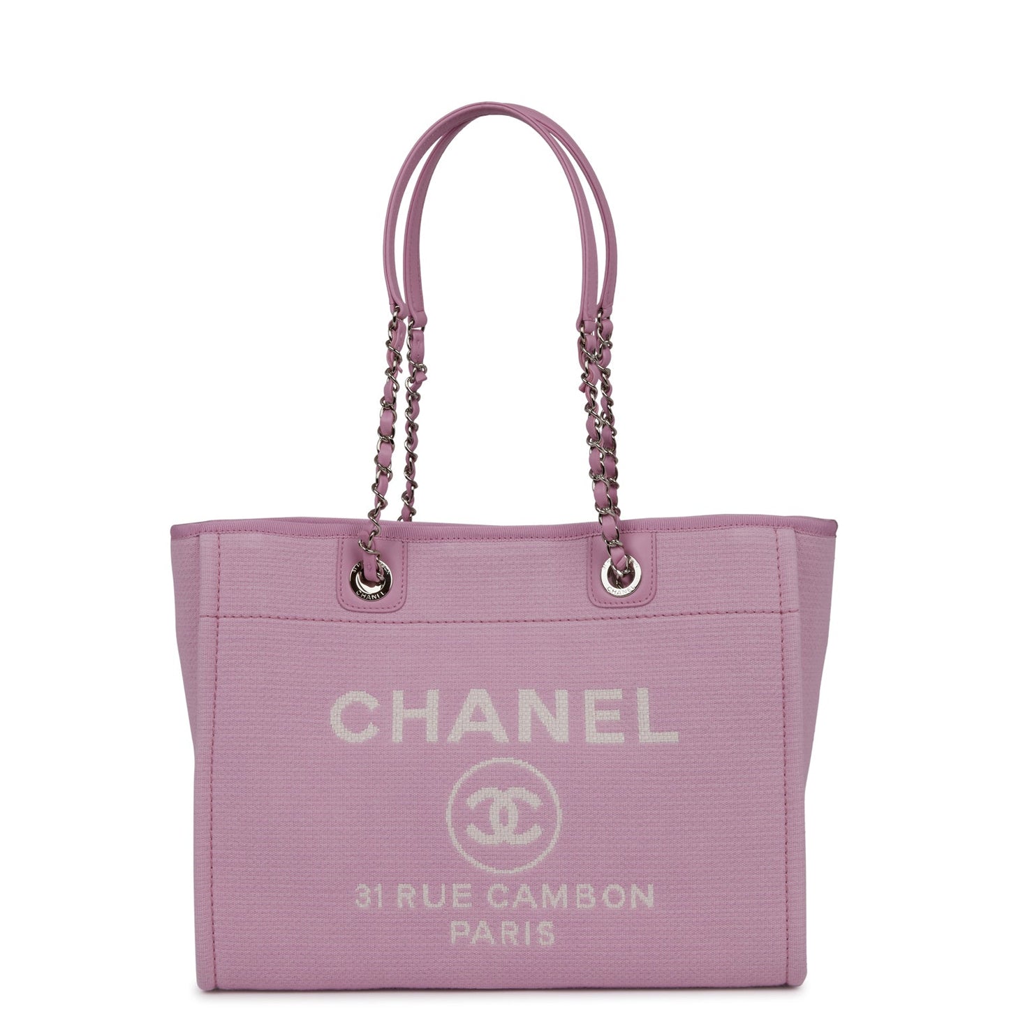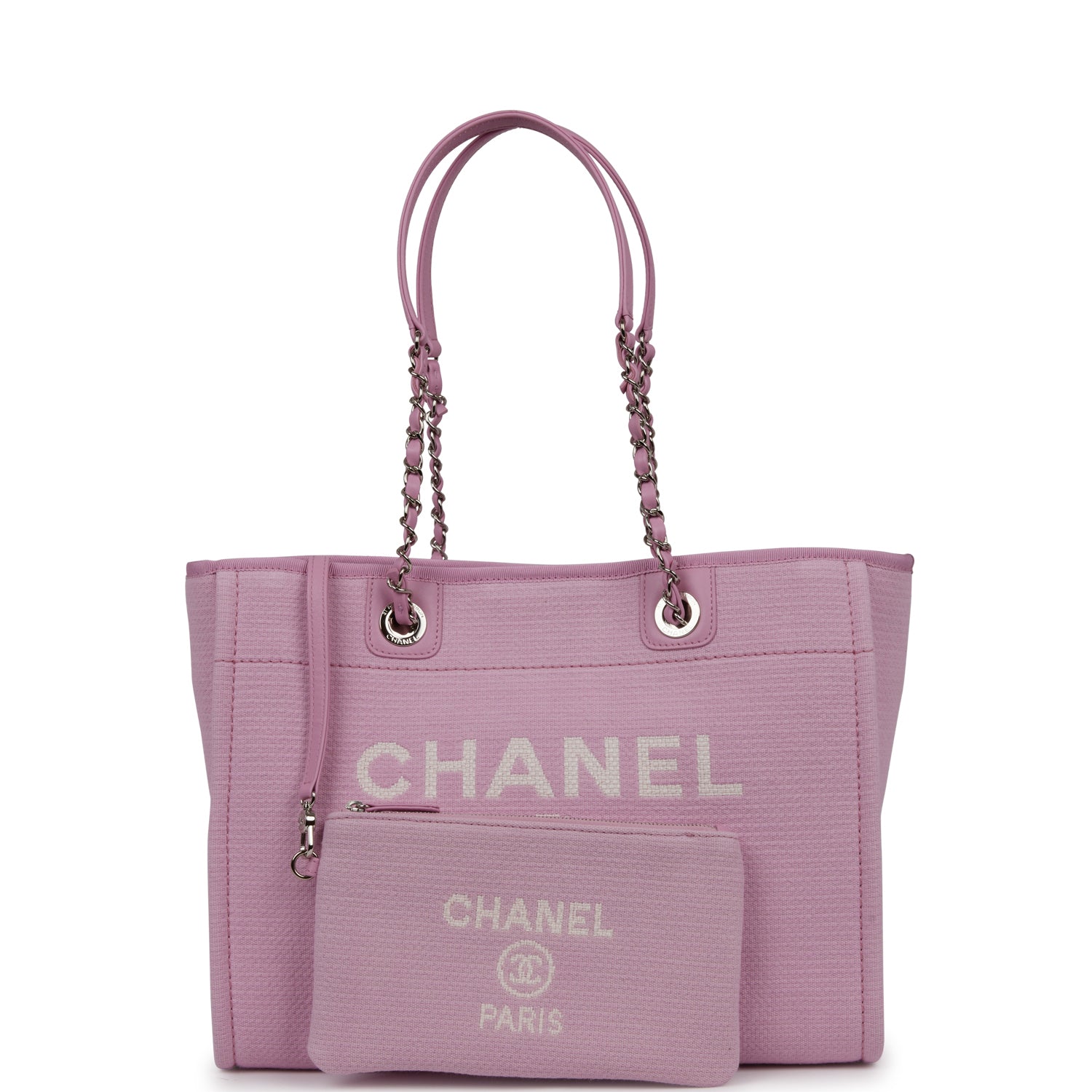 Chanel Small Deauville Shopping Bag Pink Boucle Light Silver Hardware