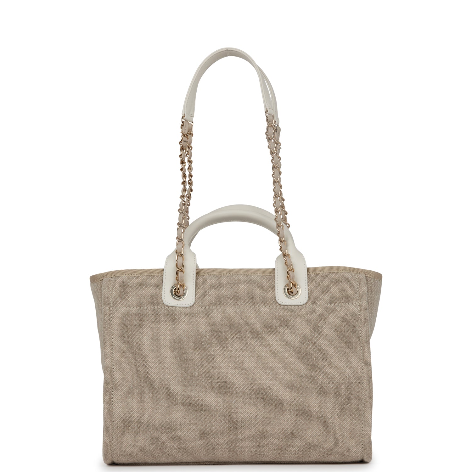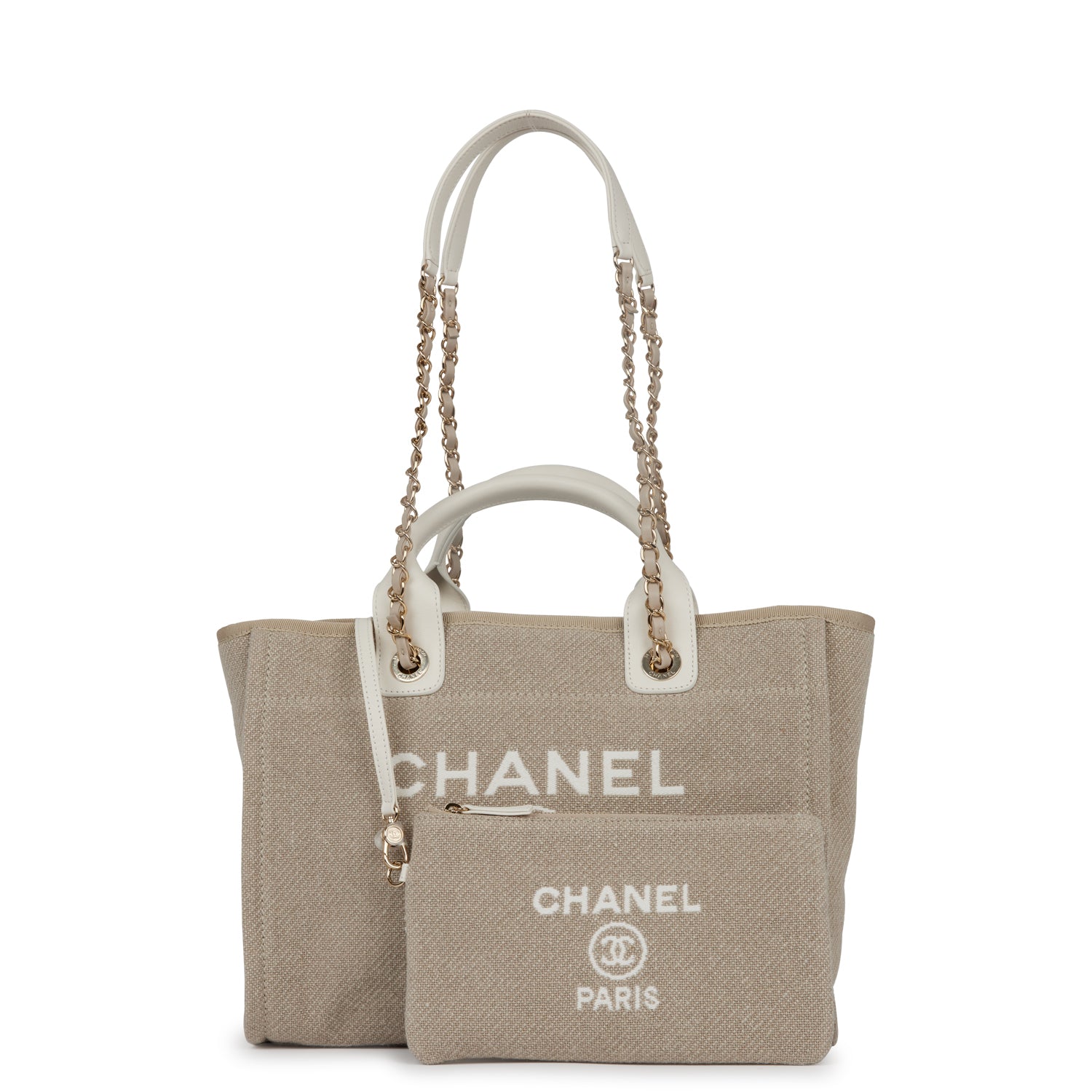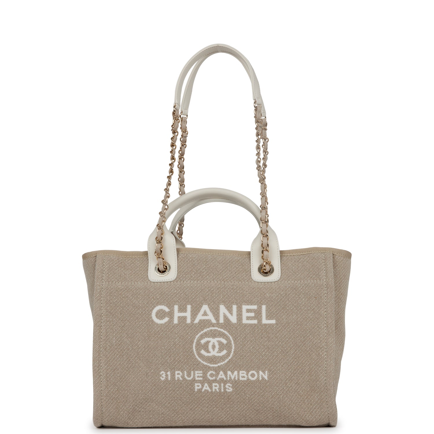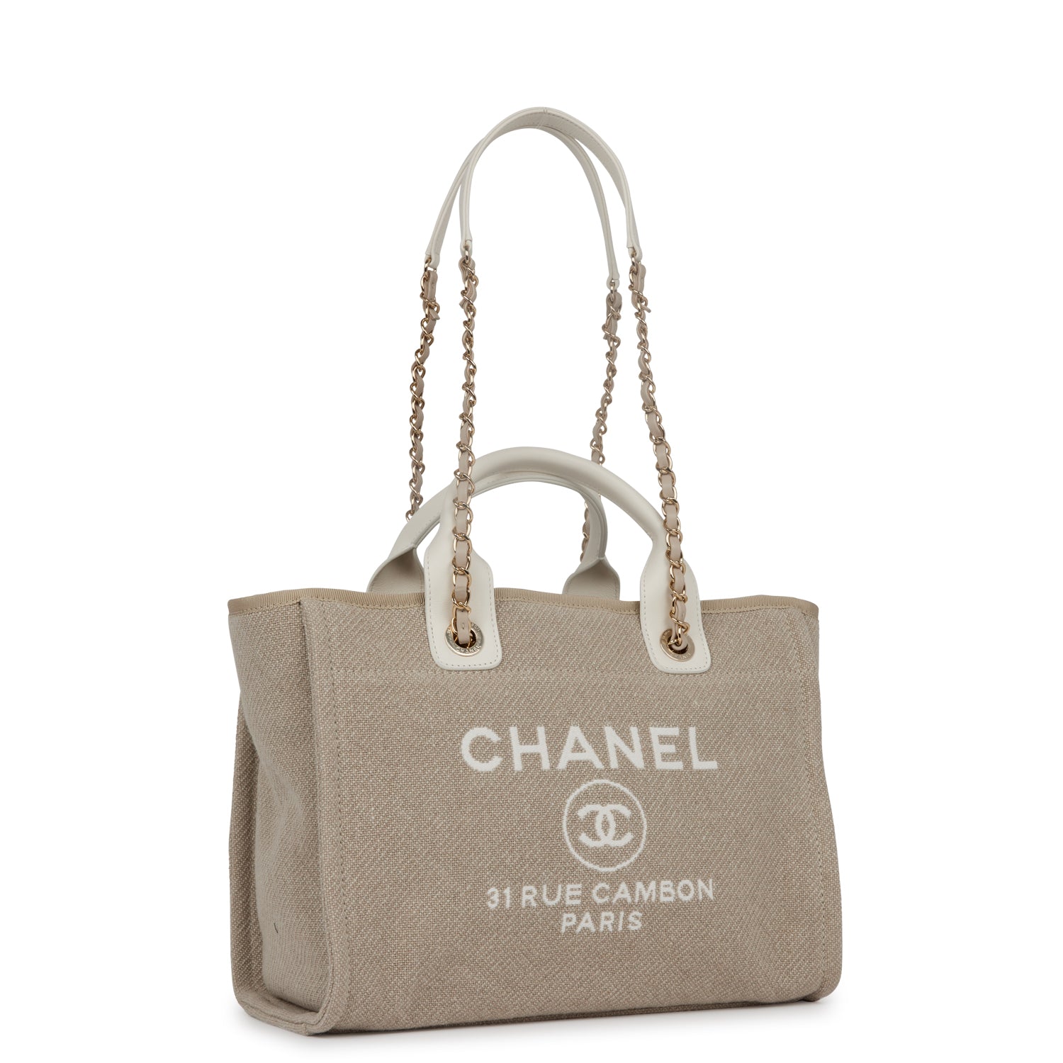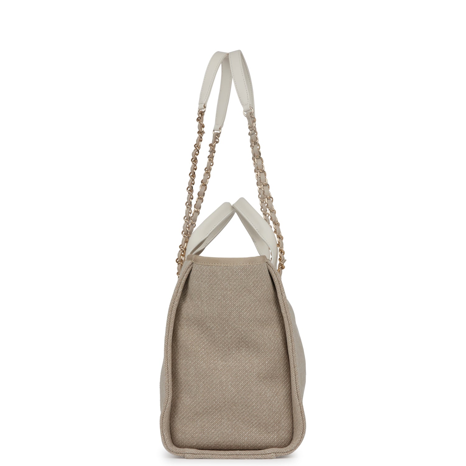 Chanel Small Deauville Shopping Bag White and Beige Boucle Light Gold Hardware