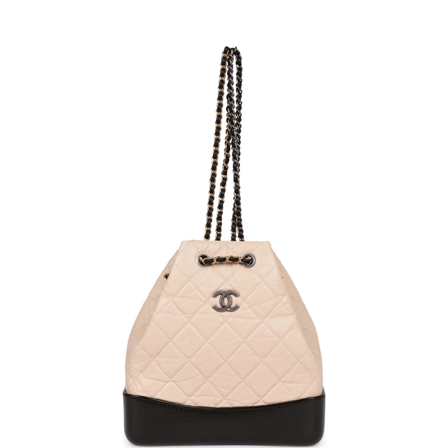 Chanel Small Gabrielle Backpack Beige and Black Aged Calfskin Mixed Hardware