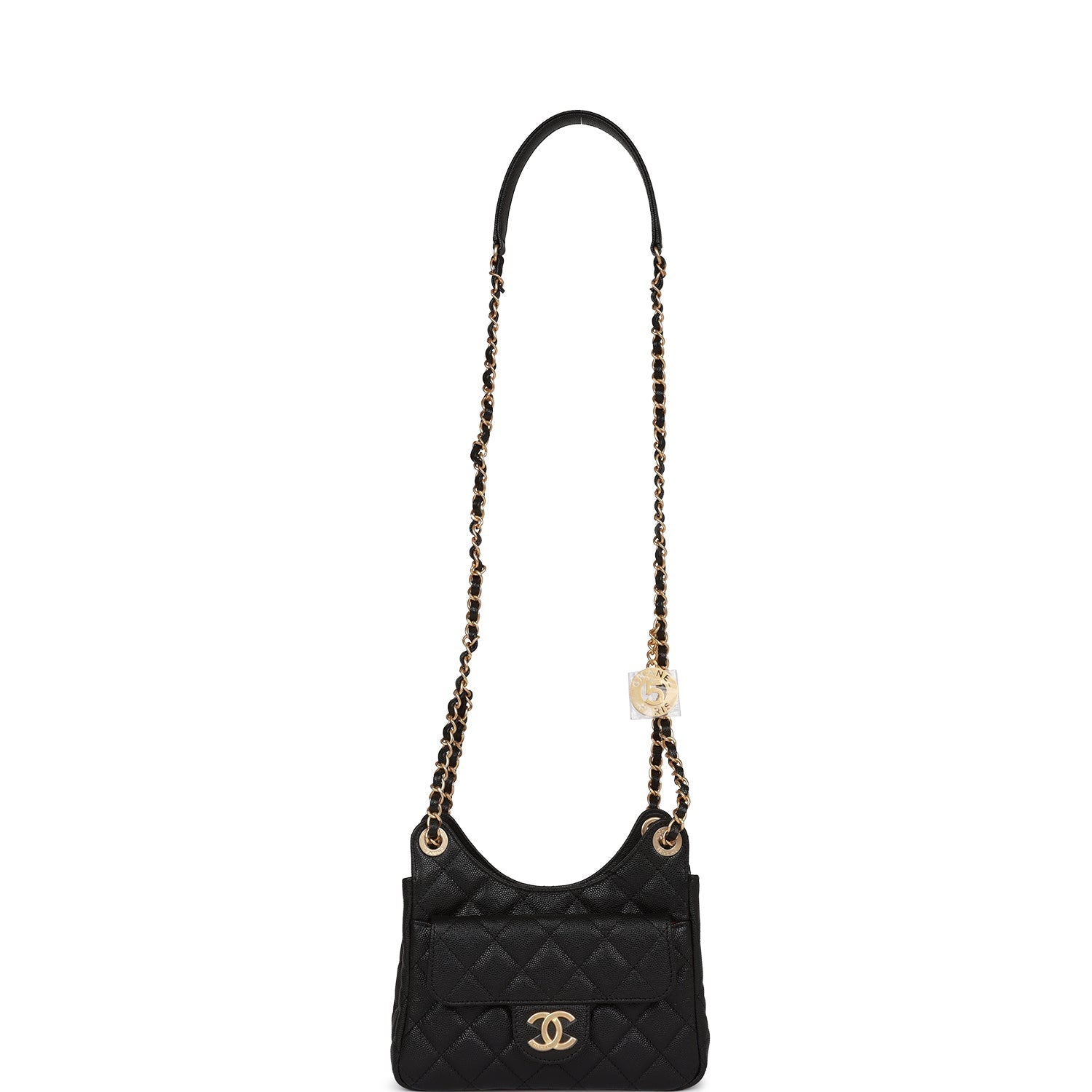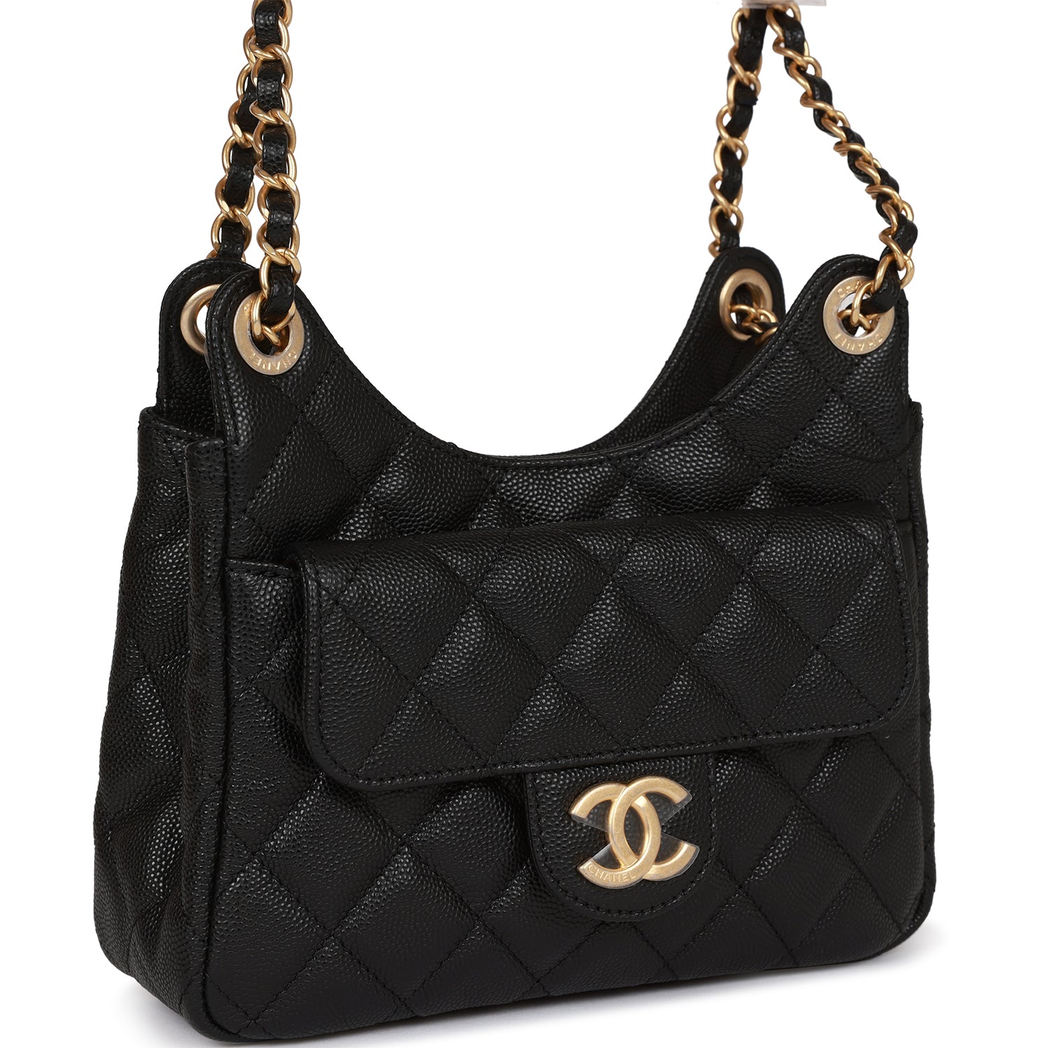Chanel Small Hobo Bag Black Caviar Antique Gold Hardware