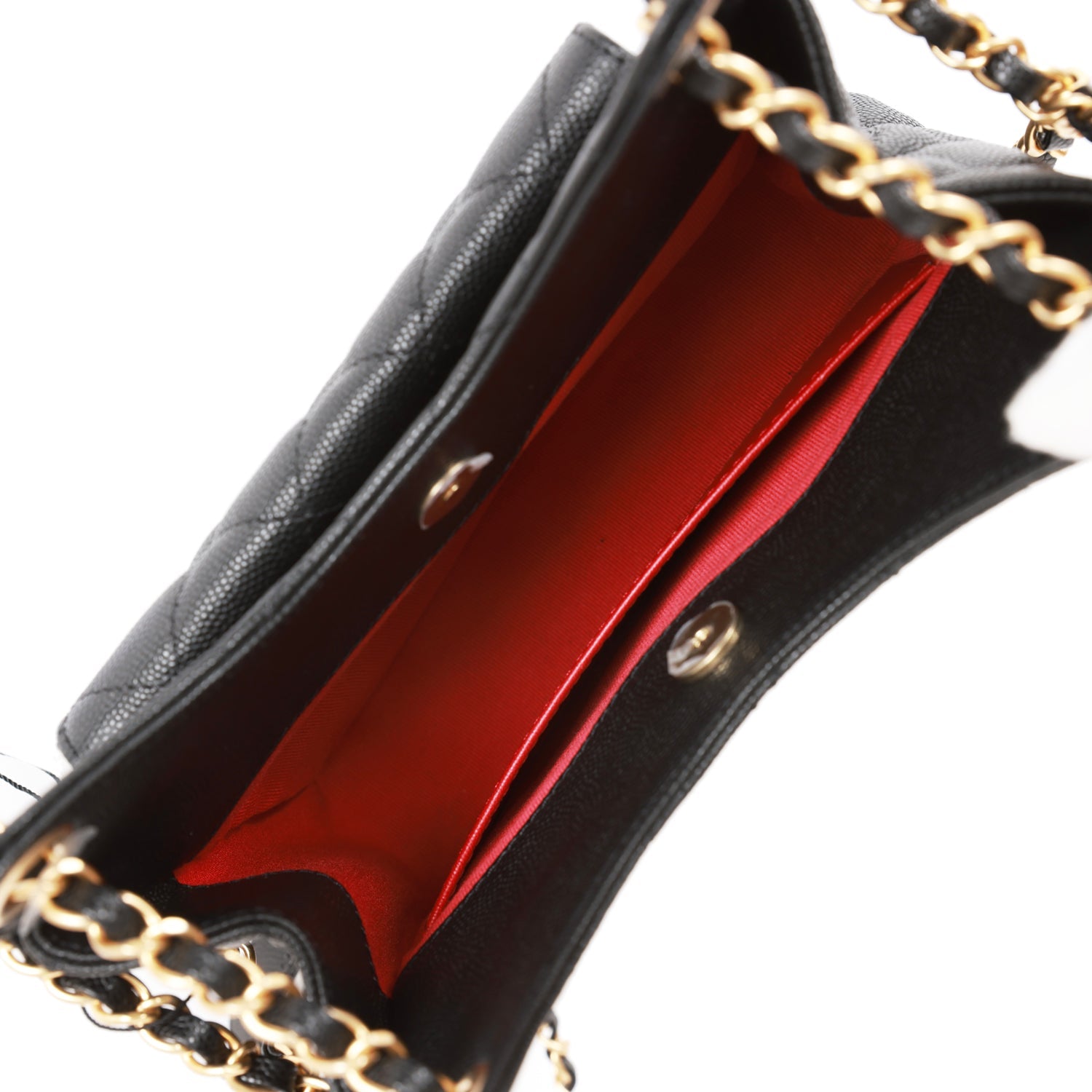 This Small Hobo bag is of black caviar with antique gold tone hardware and has the signature diamond quilting, front pocket with the signature CC logo, rear magnetic pocket and long antique gold tone and black leather chain.