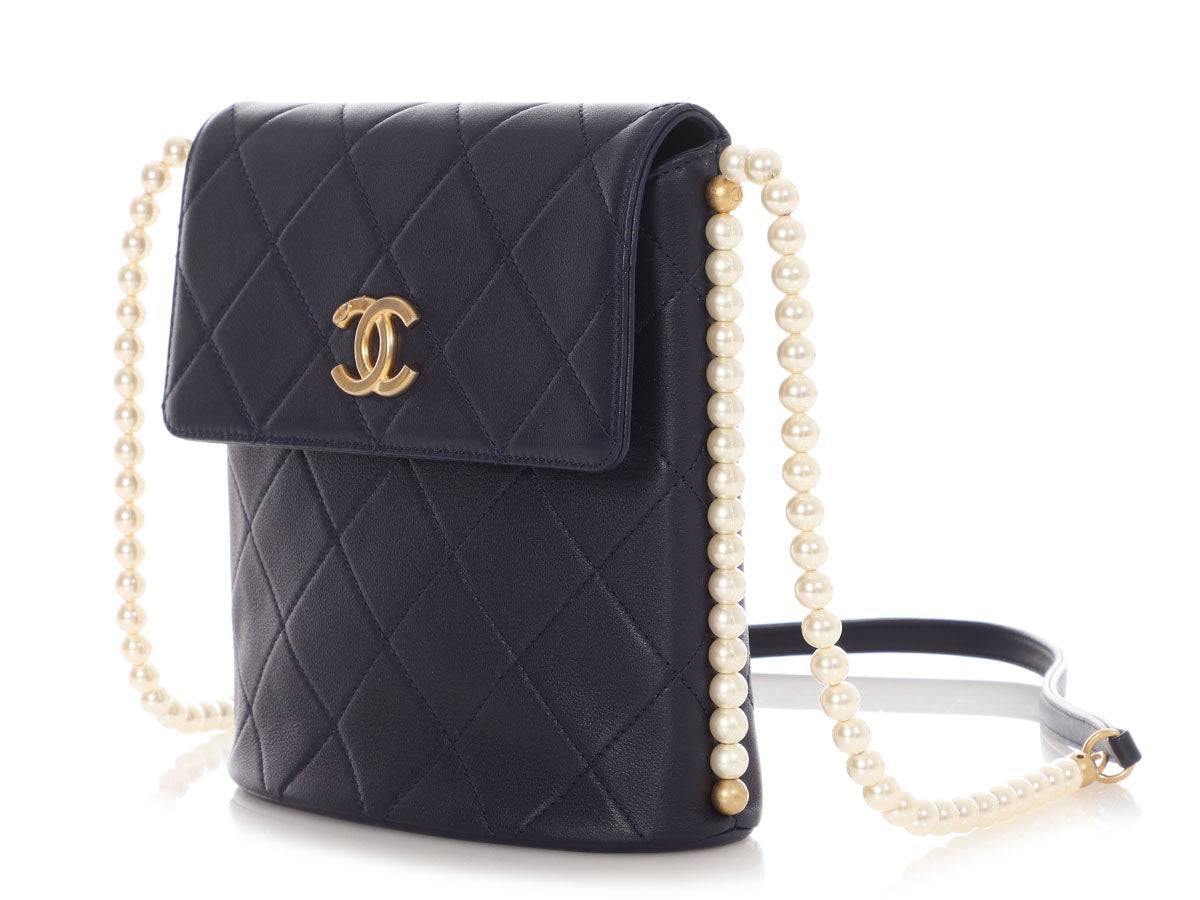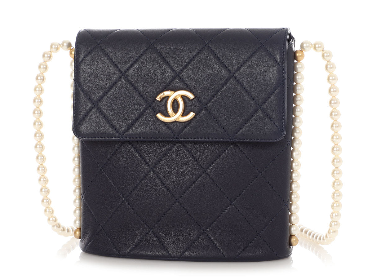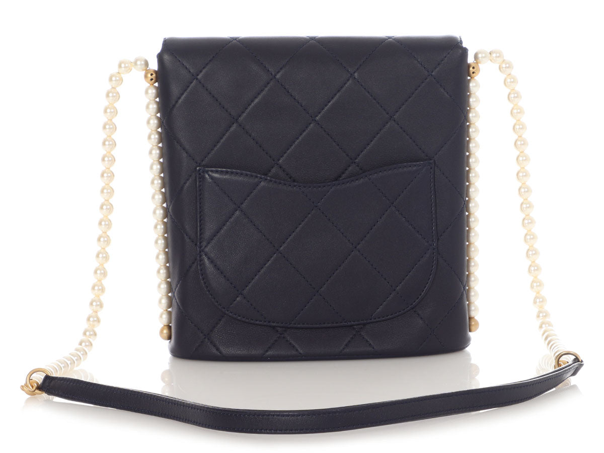 Chanel Small Navy Quilted Calfskin Pearl Strap Bag