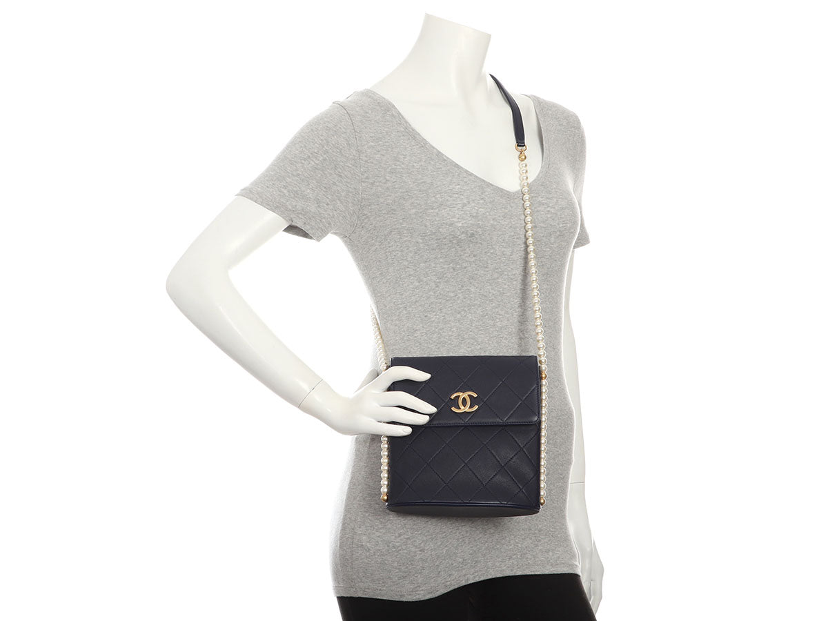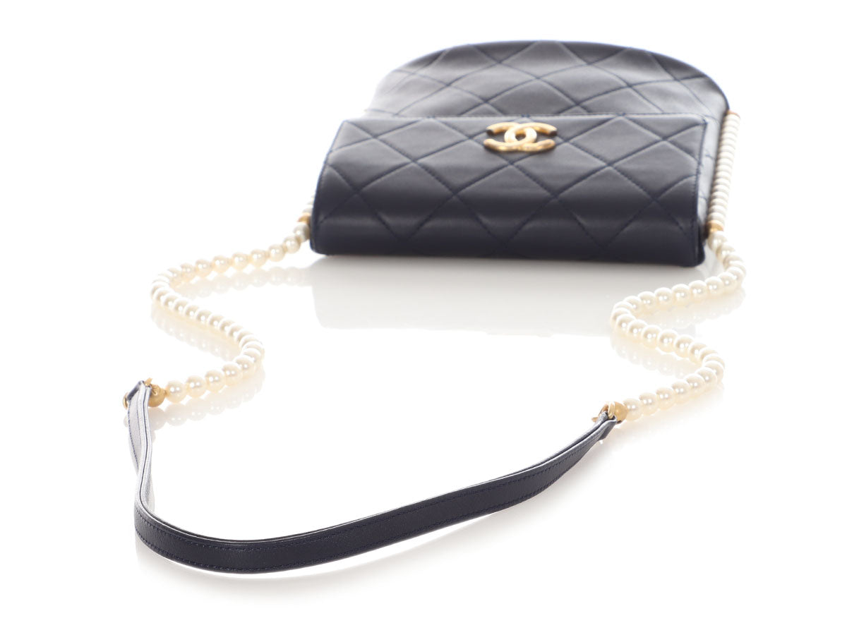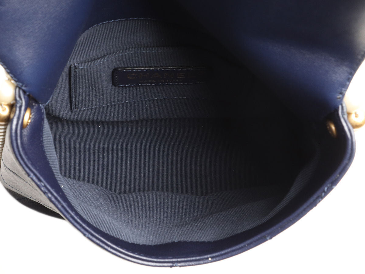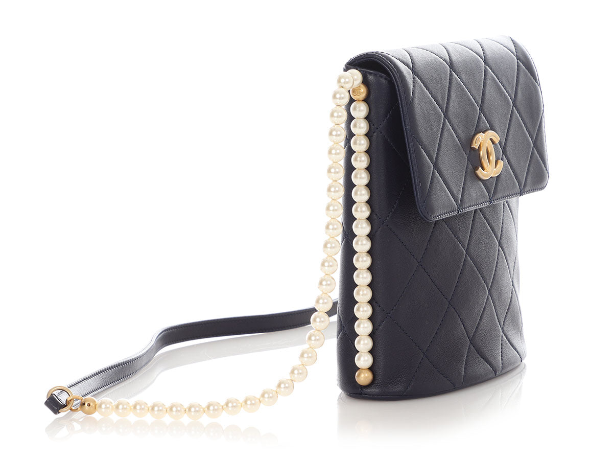 Chanel Small Navy Quilted Calfskin Pearl Strap Bag