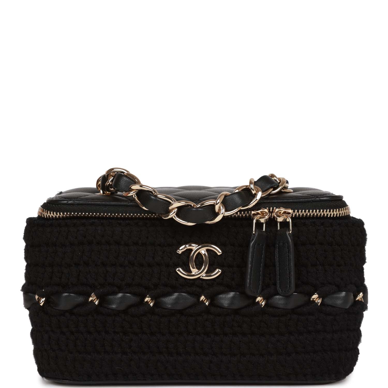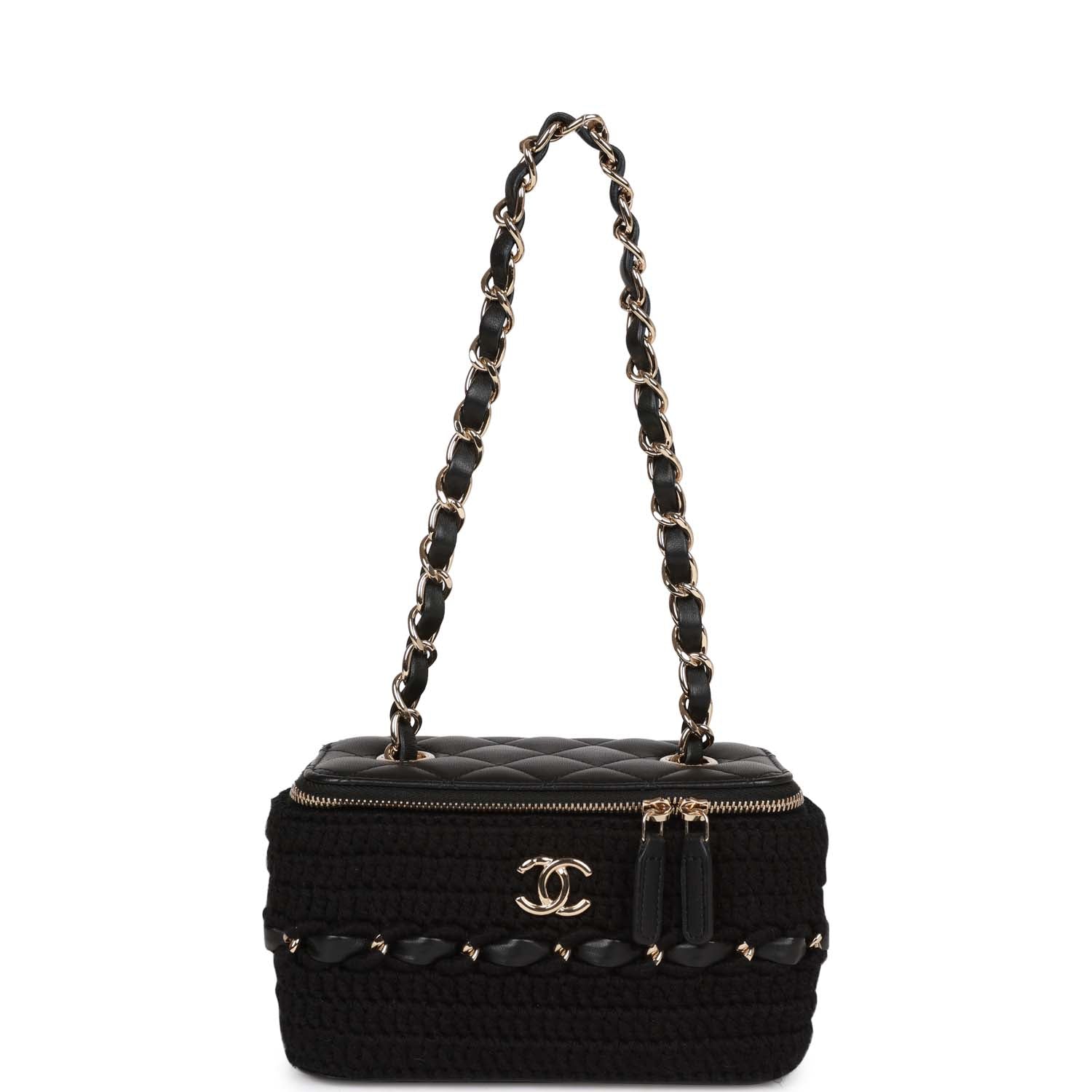 Chanel Small Vanity Case Black Crochet and Lambskin Light Gold Hardware