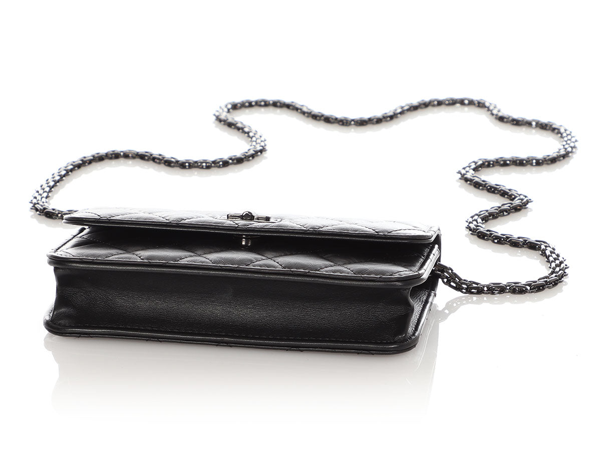 Chanel So Black Aged Quilted Calfskin Reissue Phone Holder With Chain