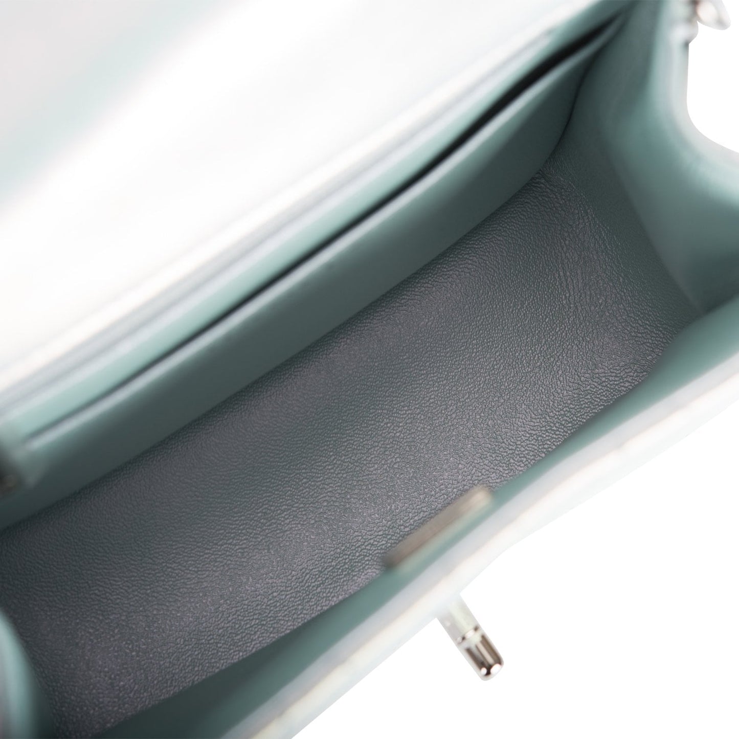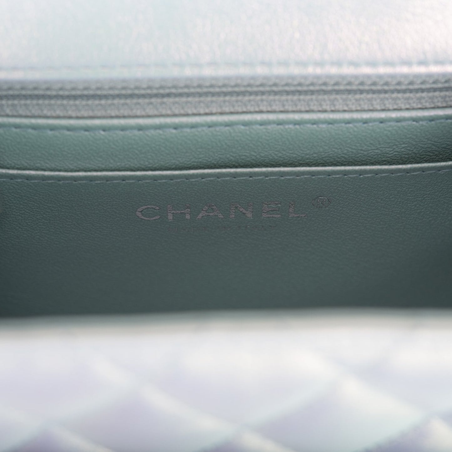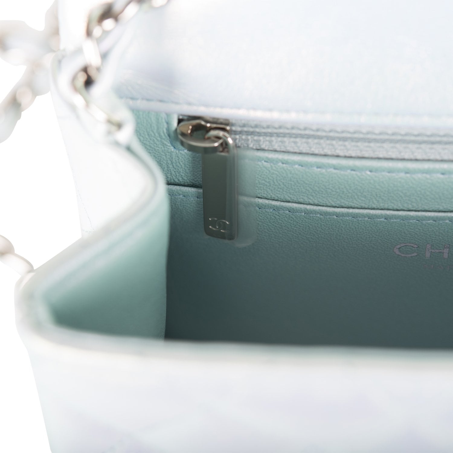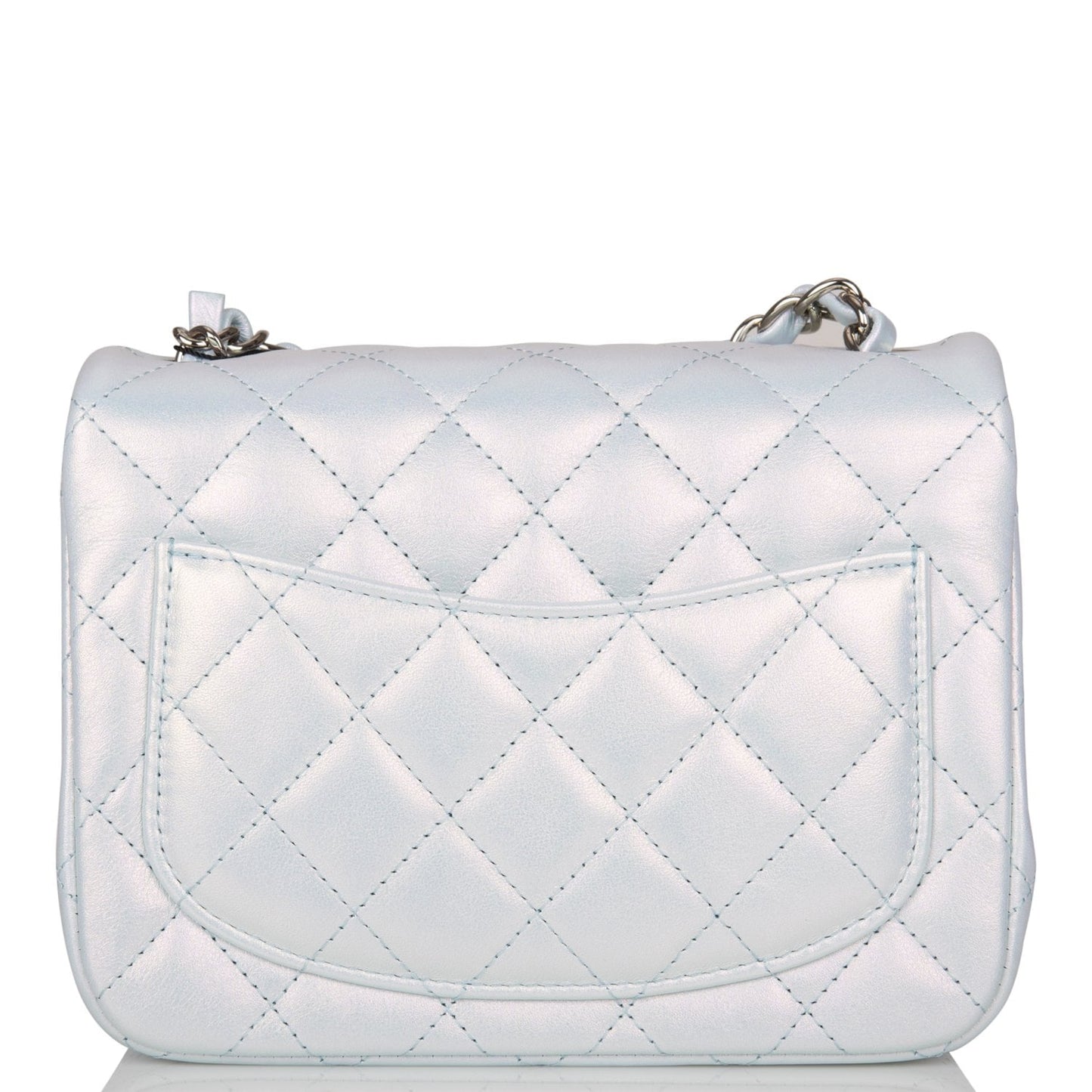 Chanel Mini Square Flap Bag Blue Iridescent Lambskin Silver Hardware