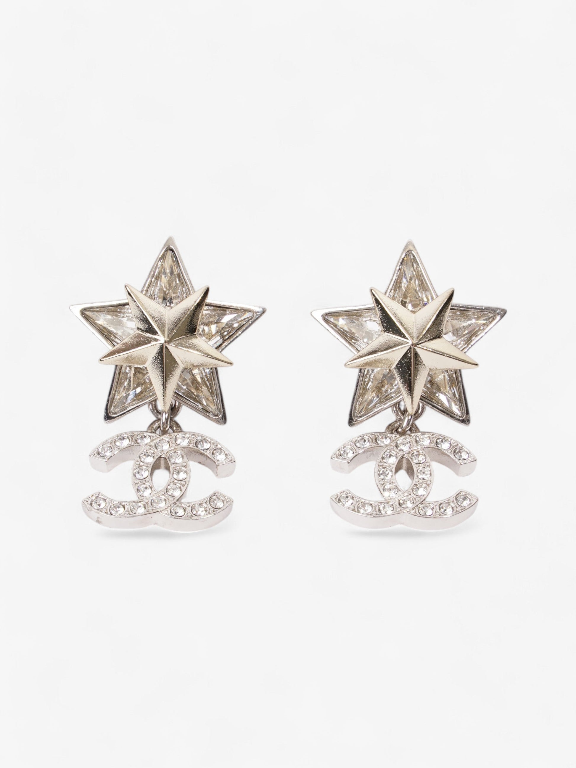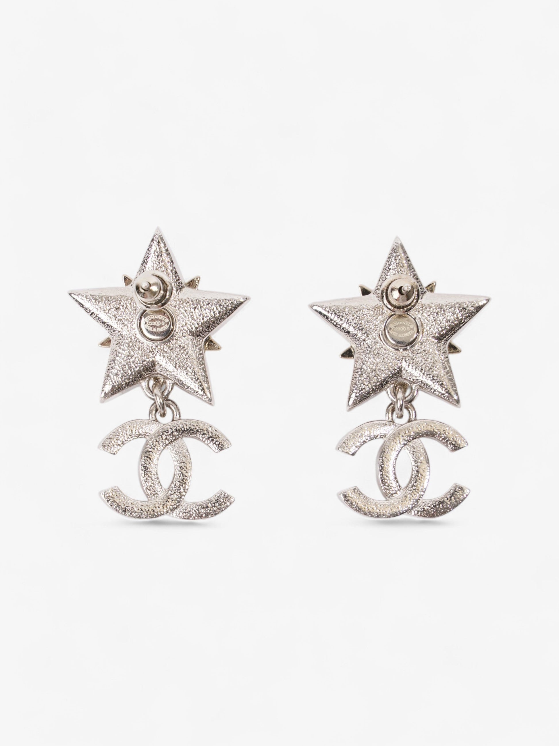 Chanel Star Drop CC Earrings Silver Base Metal