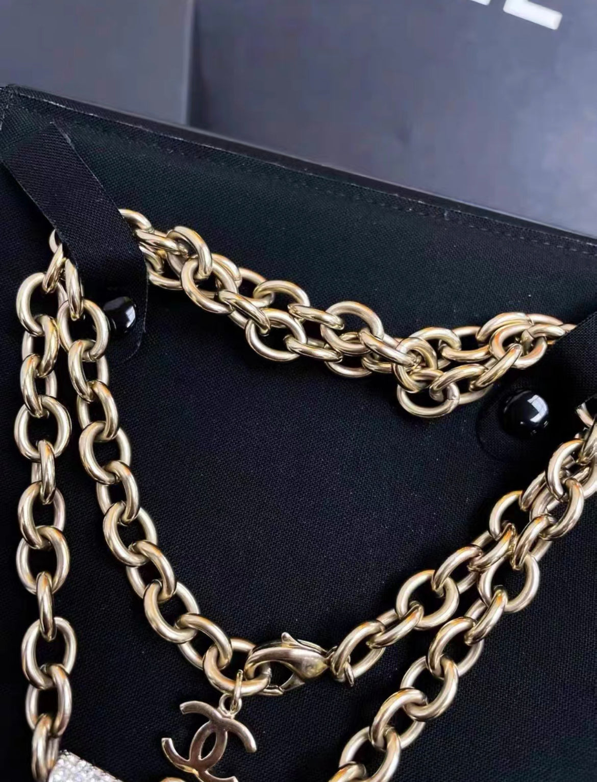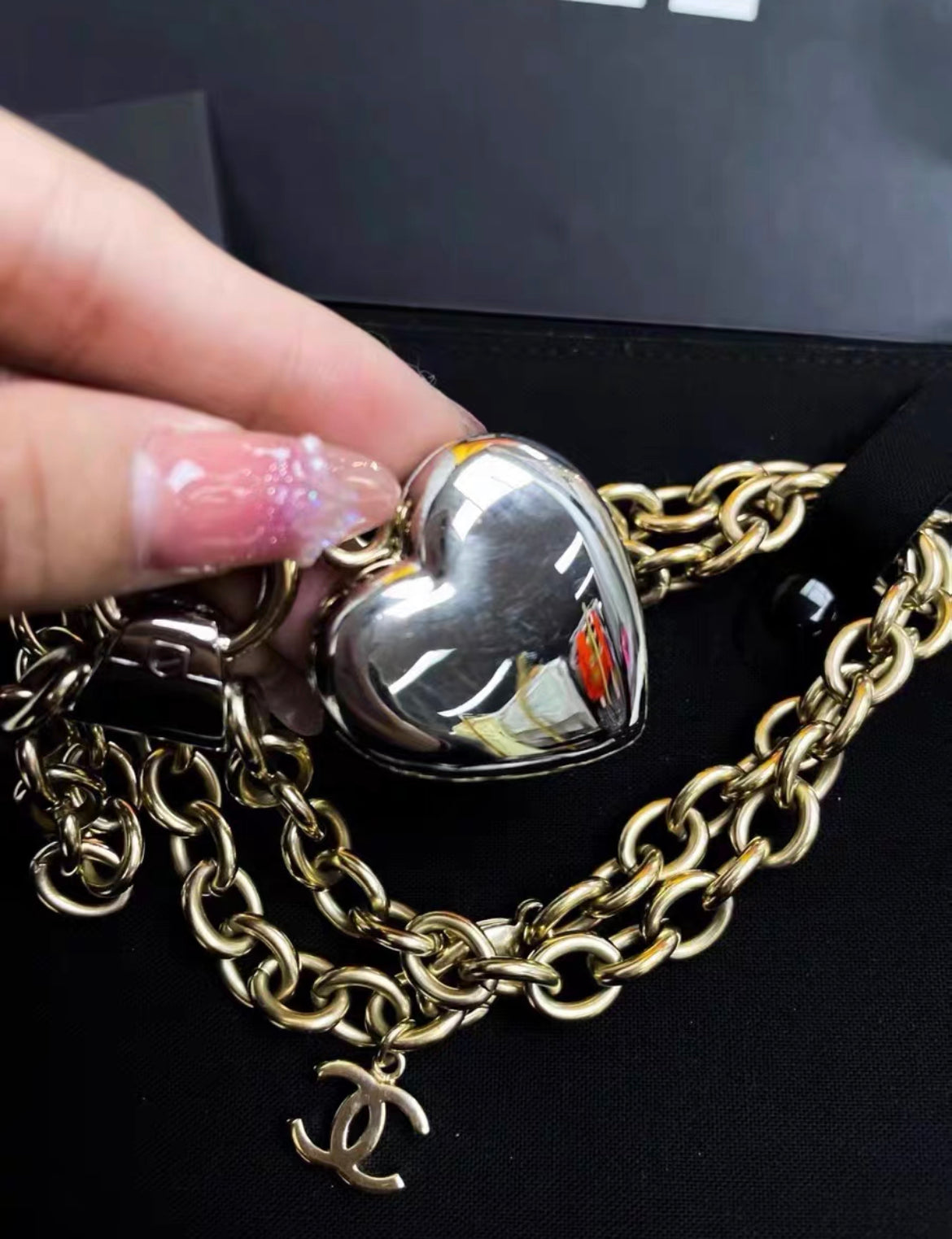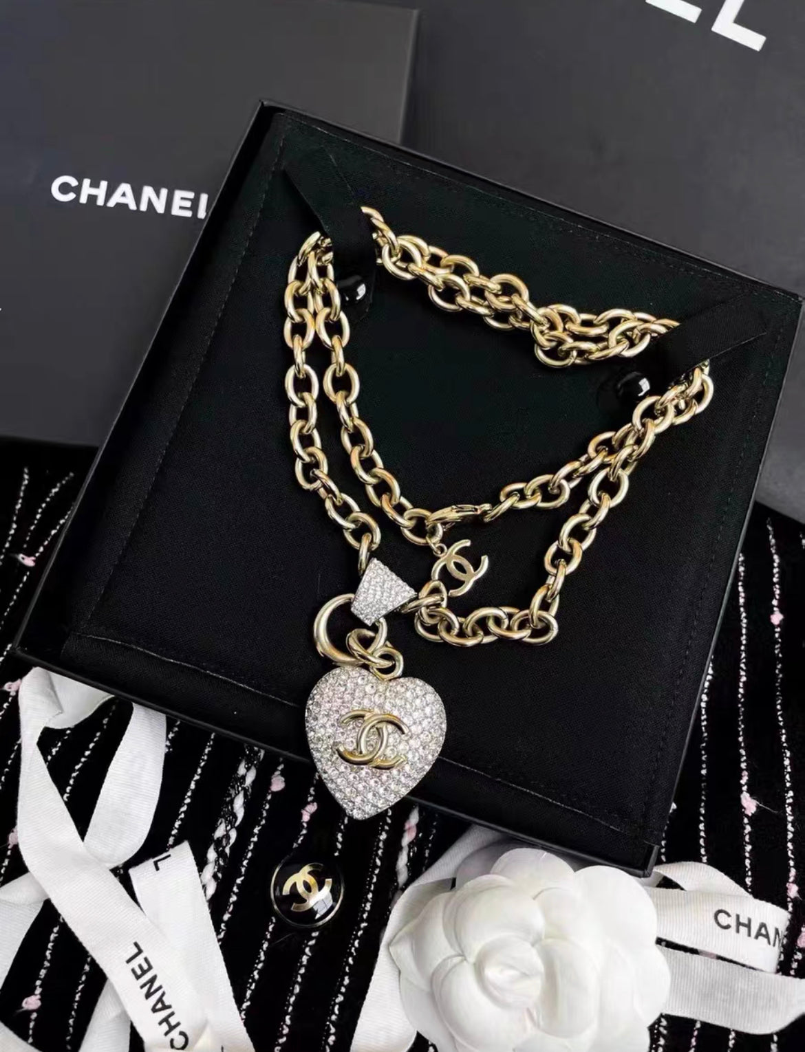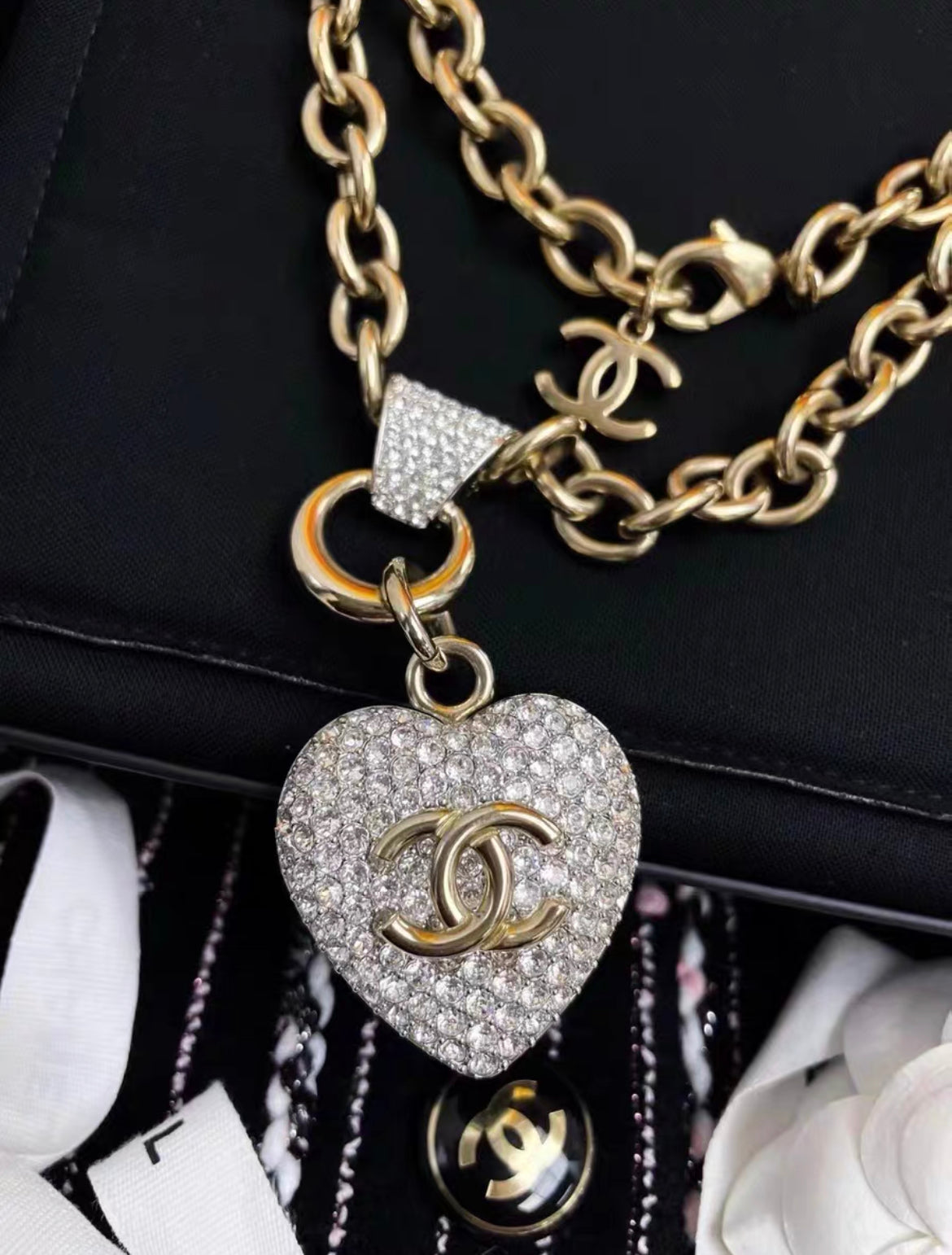 Chanel Strass and Pale Gold Metal CC Heart Necklace, 2020