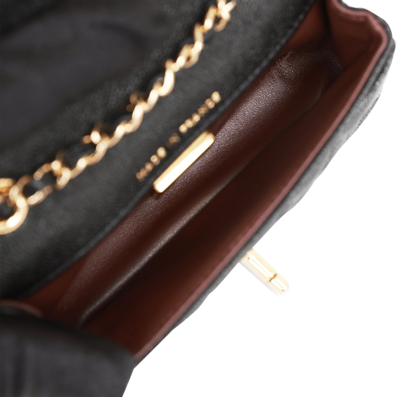 This highly collectible Success Story trunk features four mini versions of Chanel's most iconic bags. The trunk is in black lambskin leather with gold tone hardware and features the signature CC closure, an interior mirror and four compartments to hold the mini bags. The four mini bags are as follows.