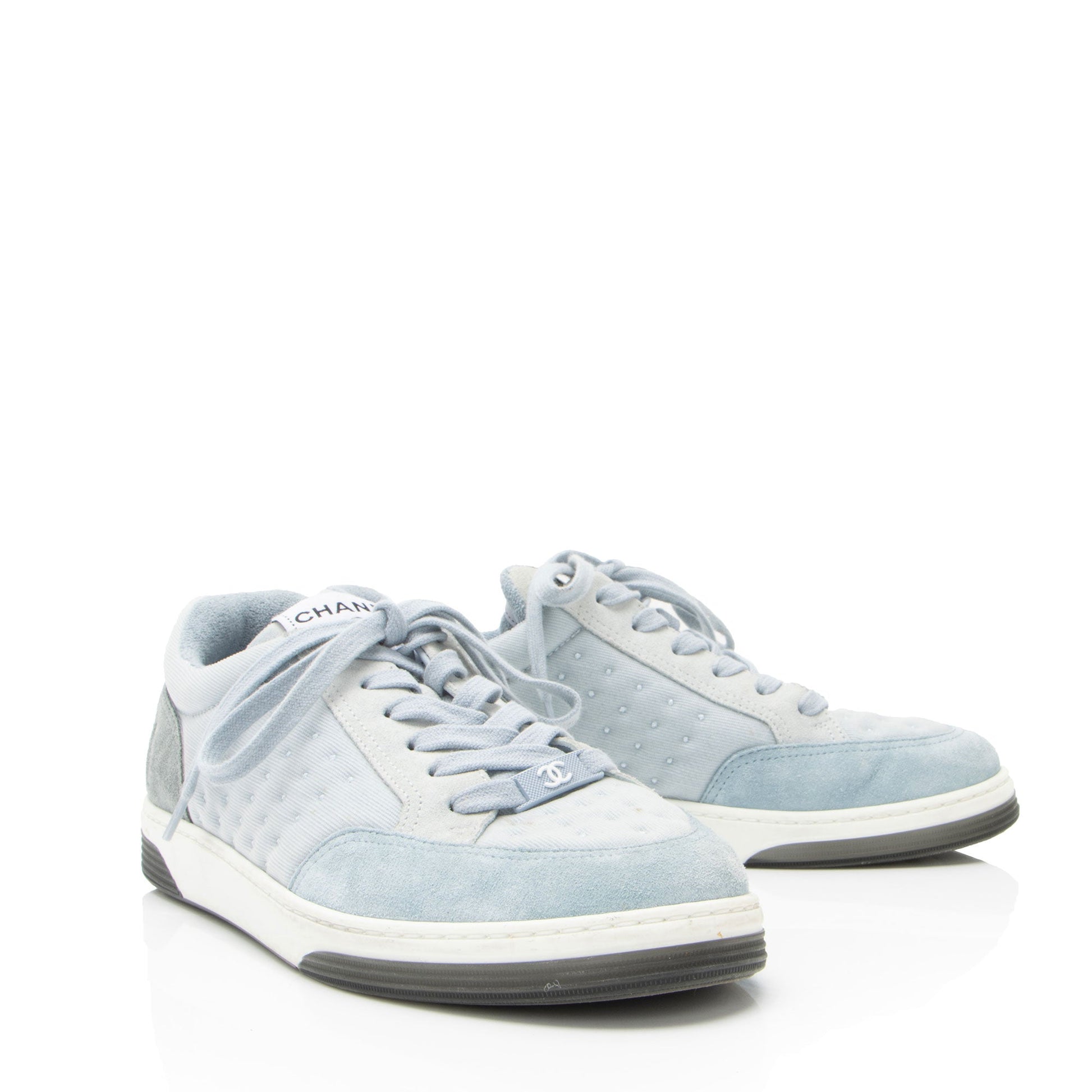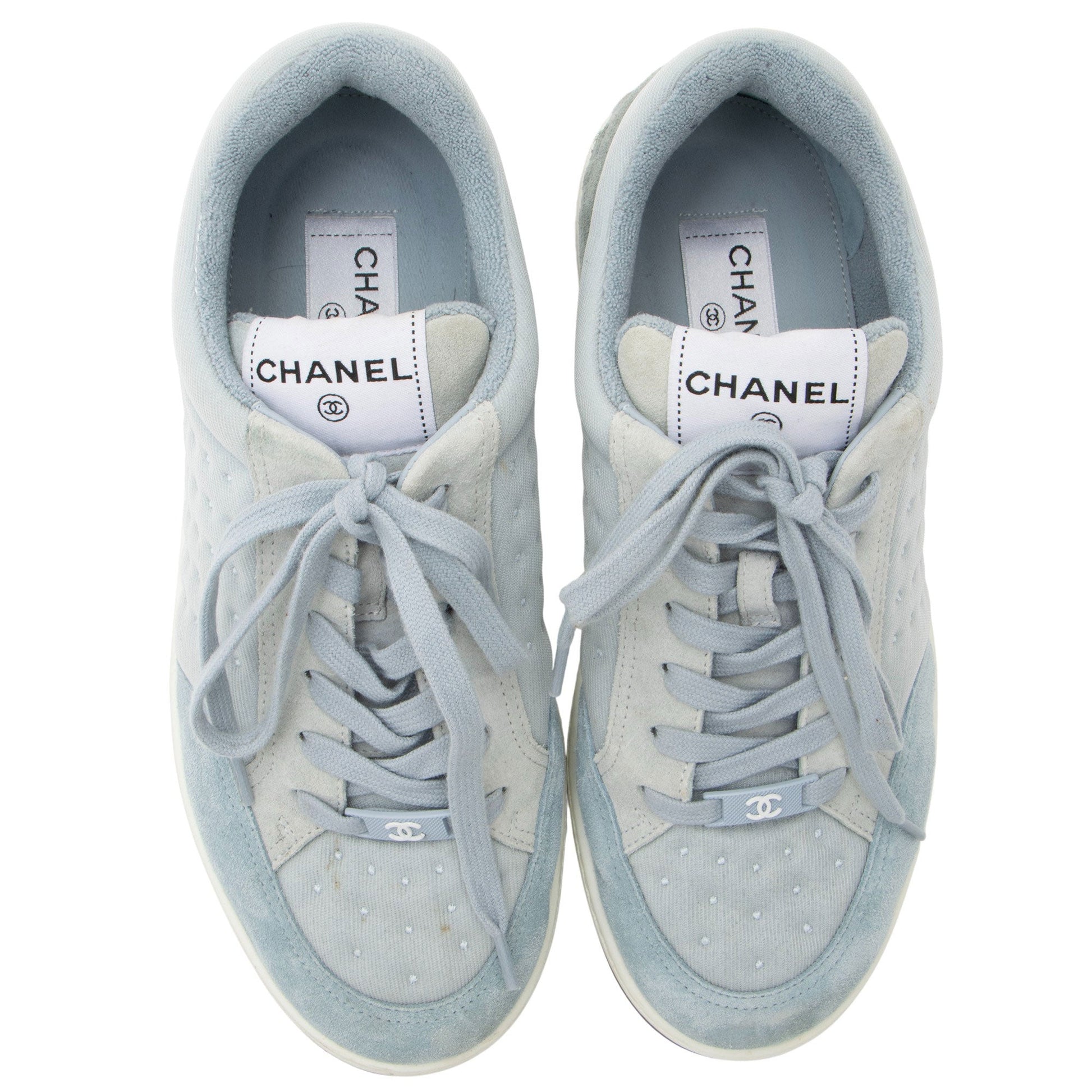 Chanel Suede Studded Logo Sneakers - Size 9.5 / 39.5