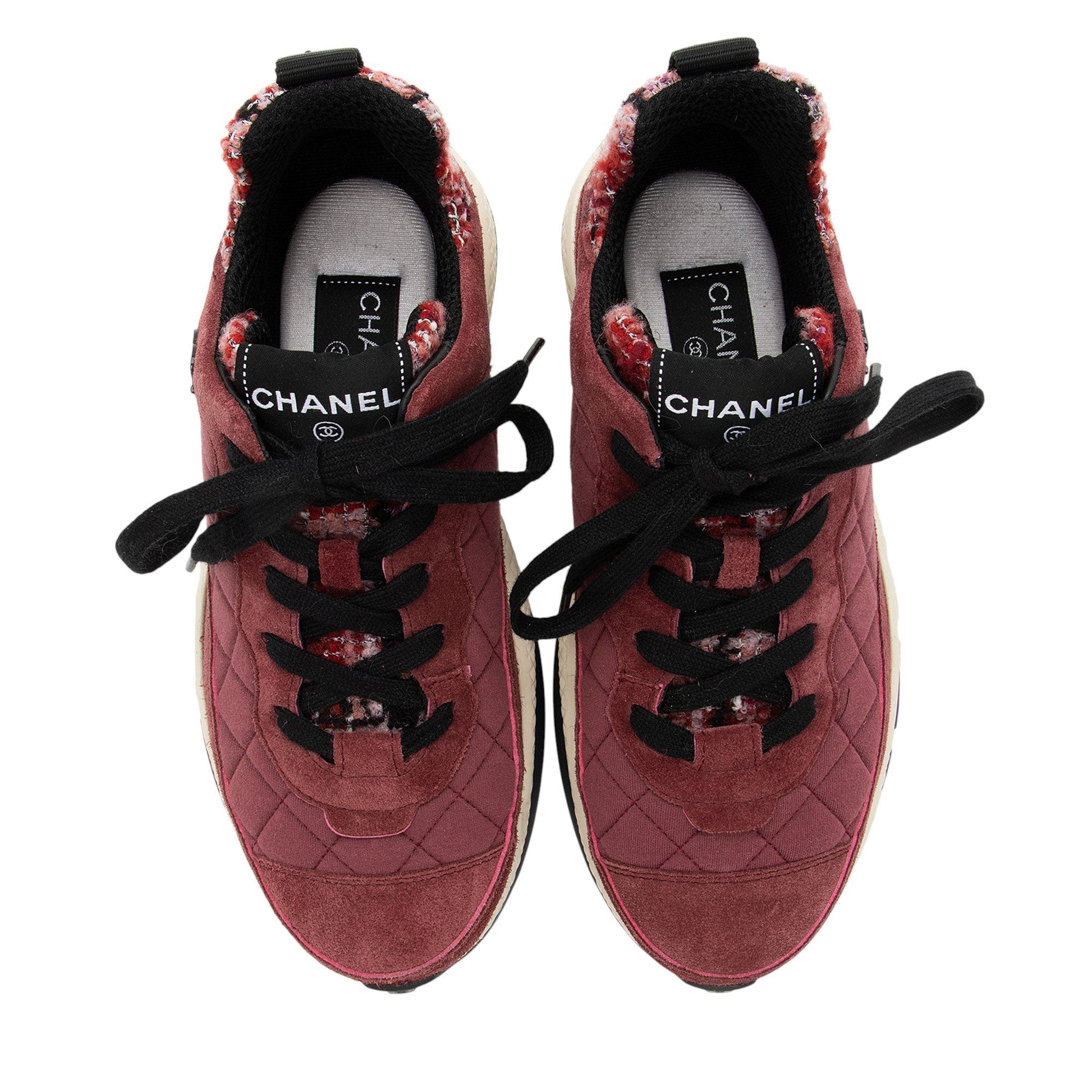 Chanel Suede Tweed CC Sneakers - Size 7.5 / 37.5