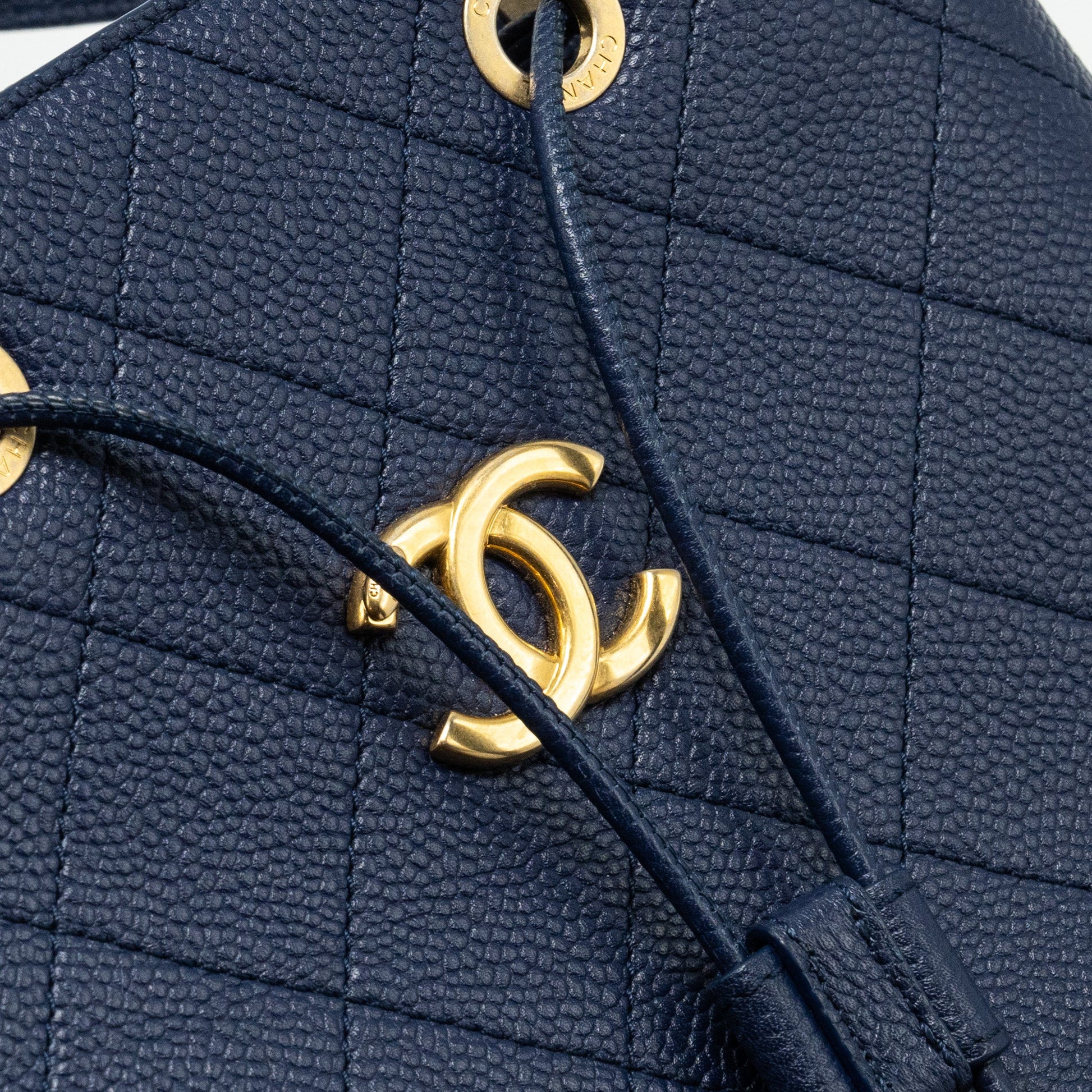 Chanel Top Handle Drawstring Bucket Bag Caviar Navy