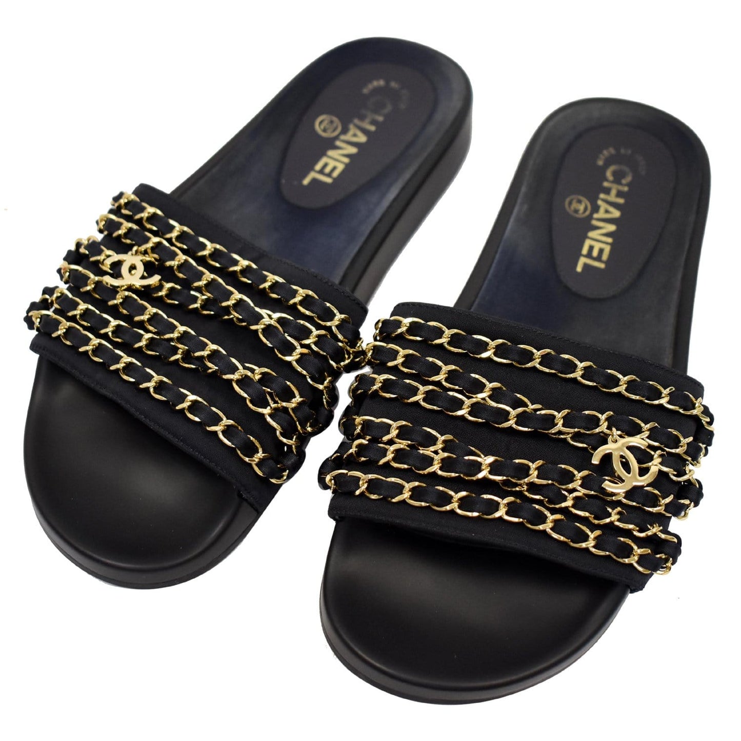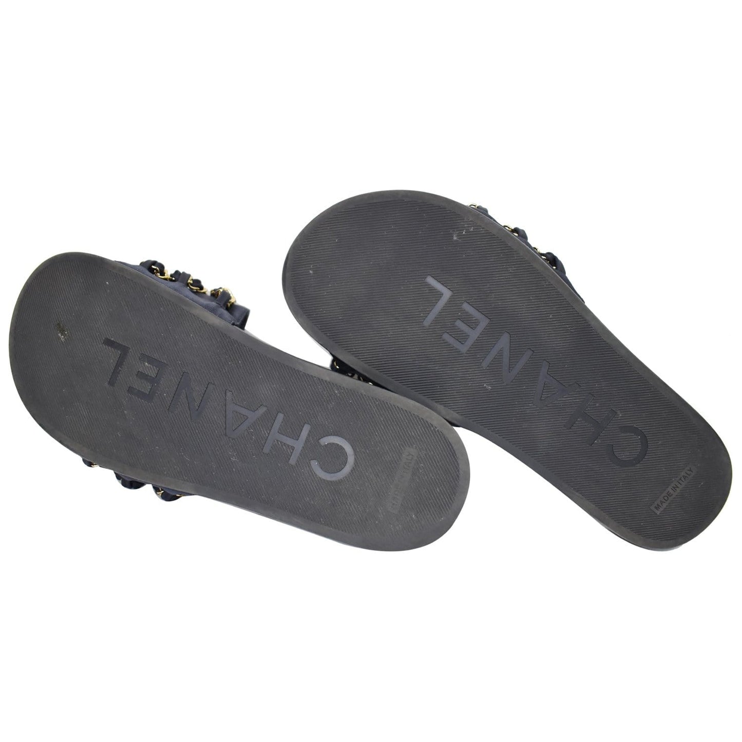 CHANEL Tropiconic Chain Fabric Mules Slides Sandals Black US 8