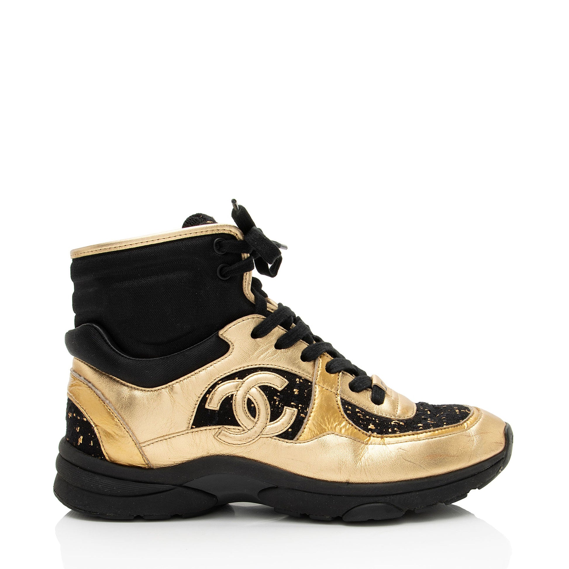 Chanel Tweed CC High Top Sneakers - Size 8.5 / 38.5