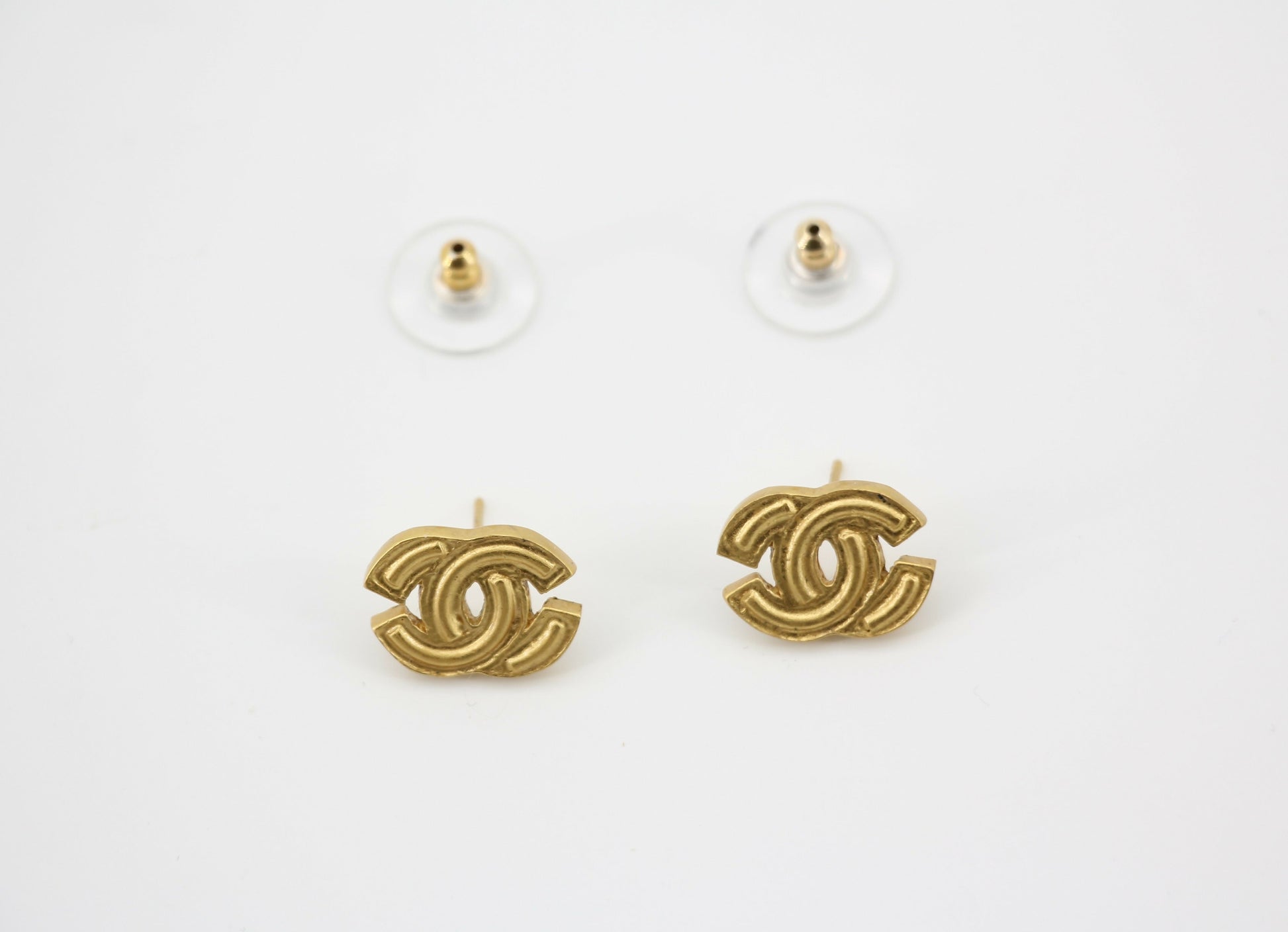 Chanel Vintage 01P Gold-plated Bright Gold CC Clip-in Earrings