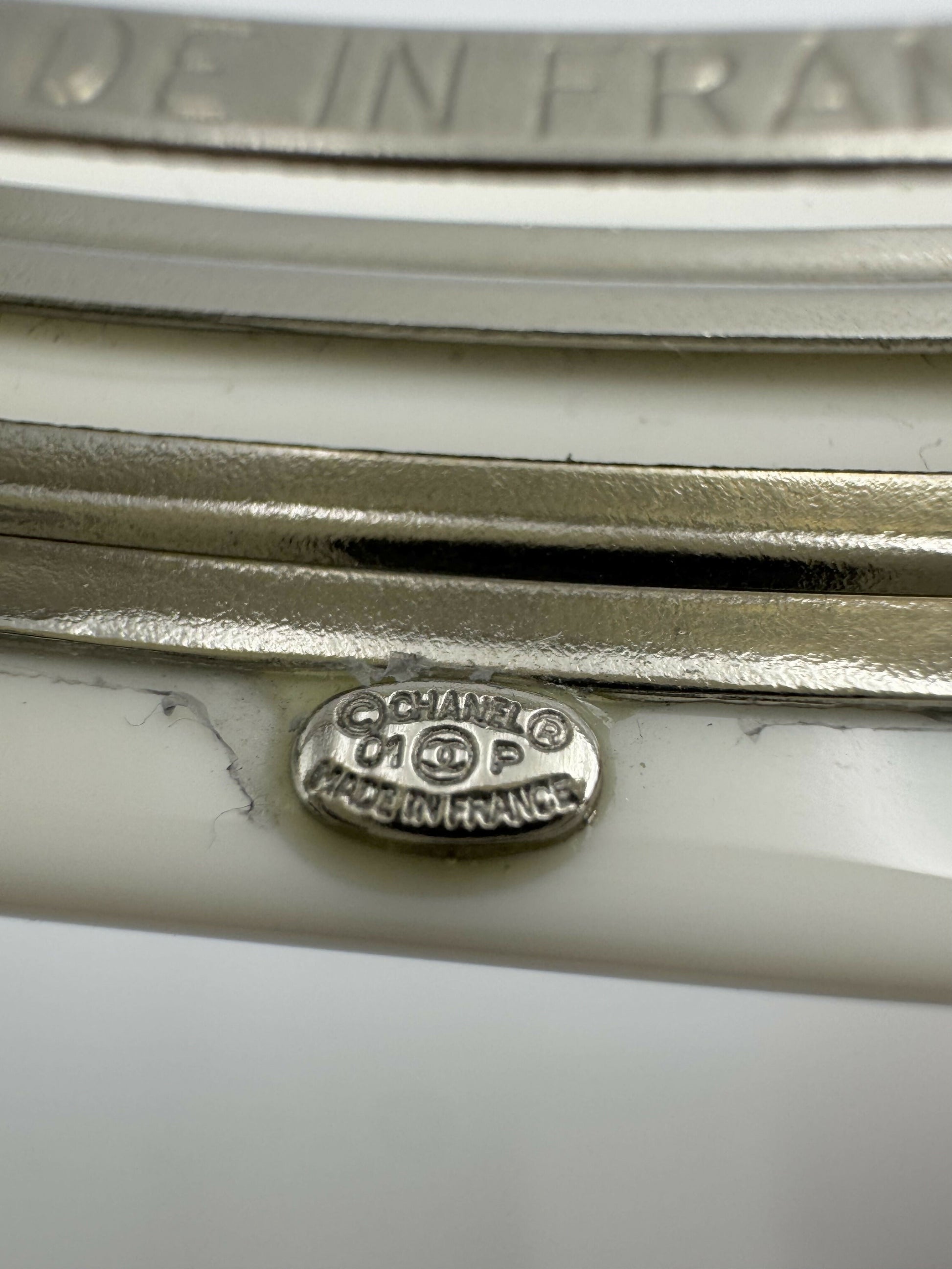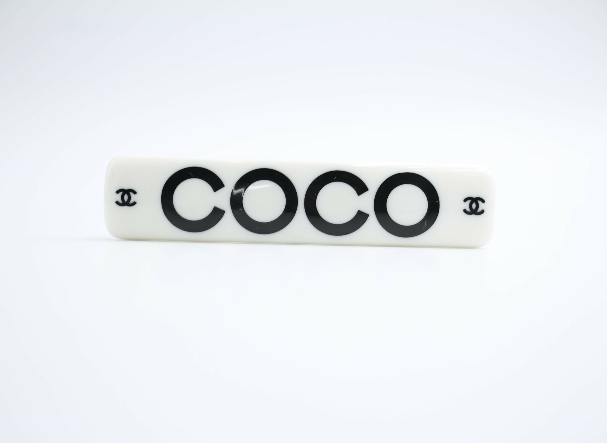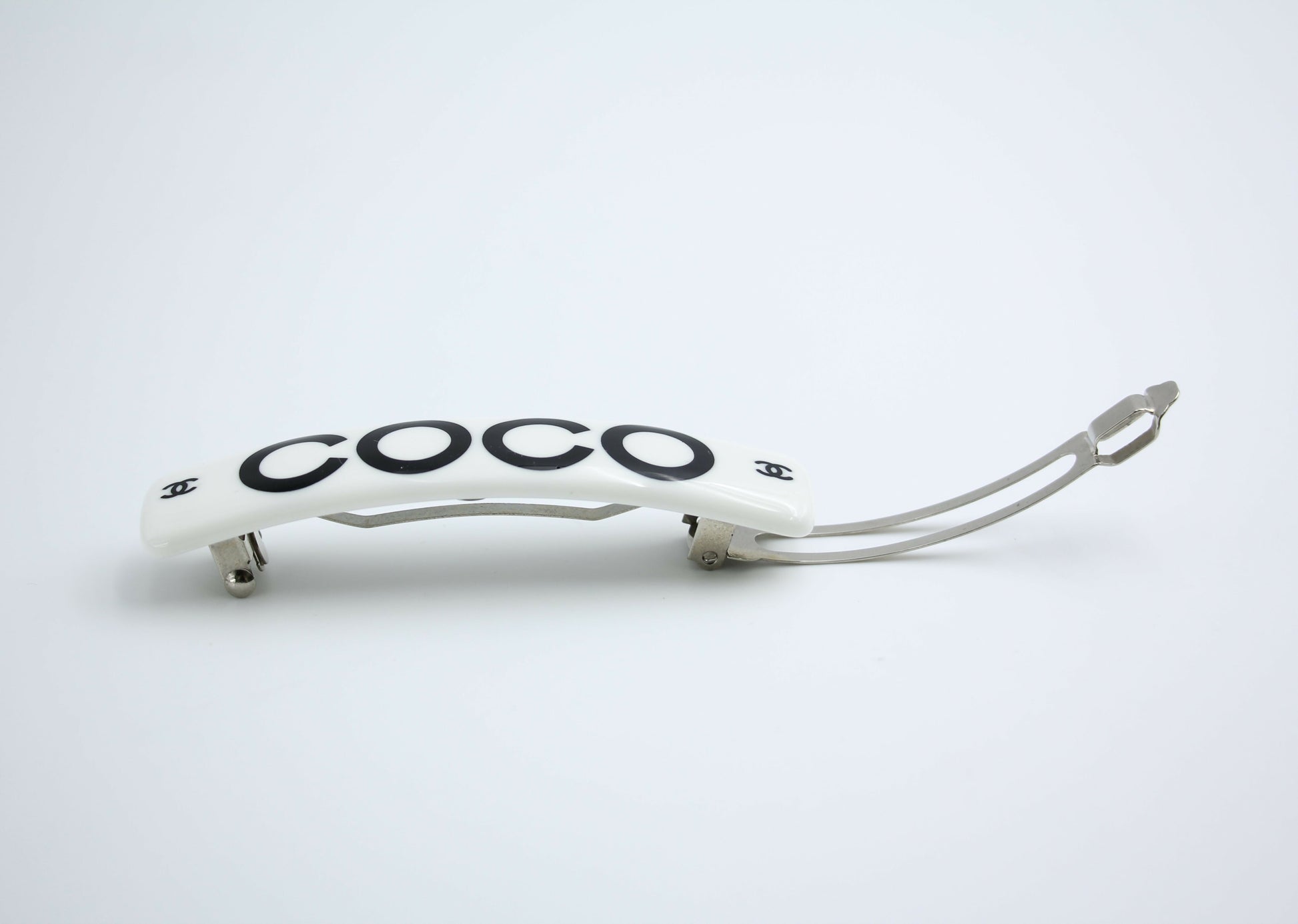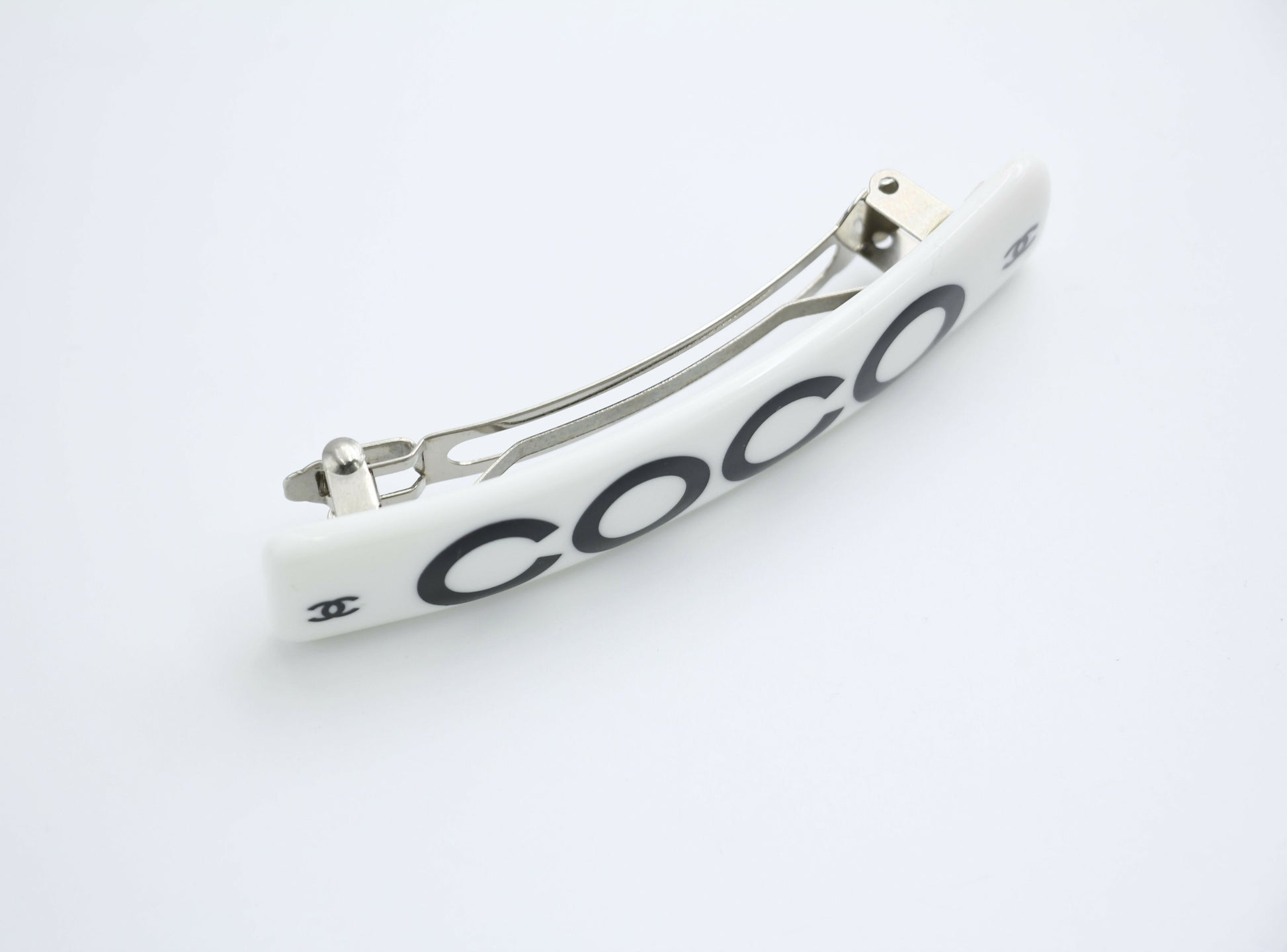 Chanel Vintage 01P Resin Coco Logo White Hairpin