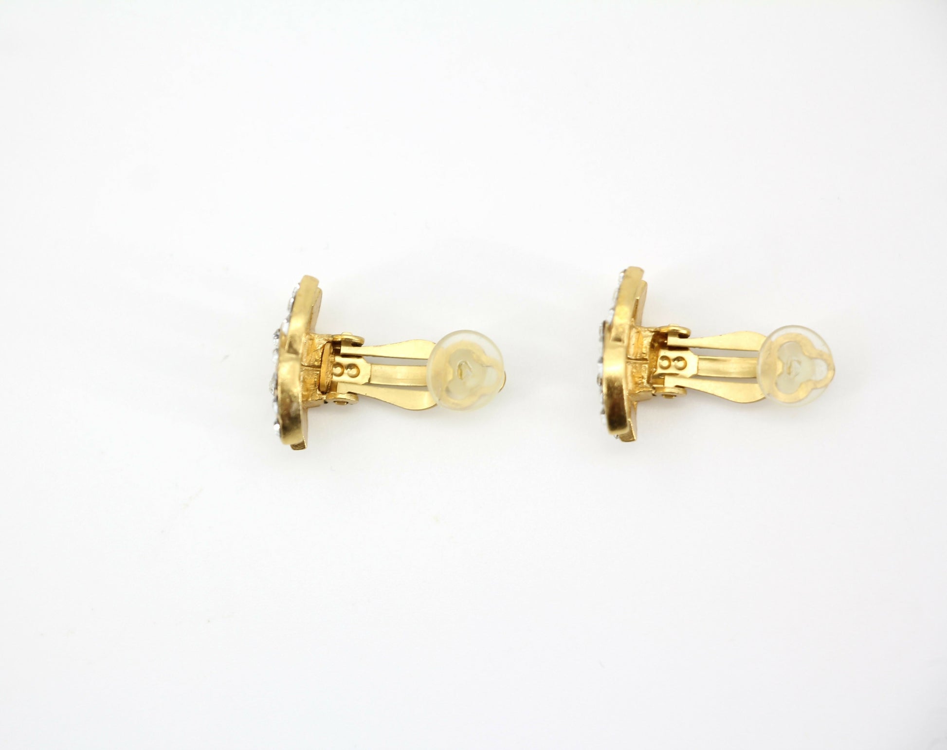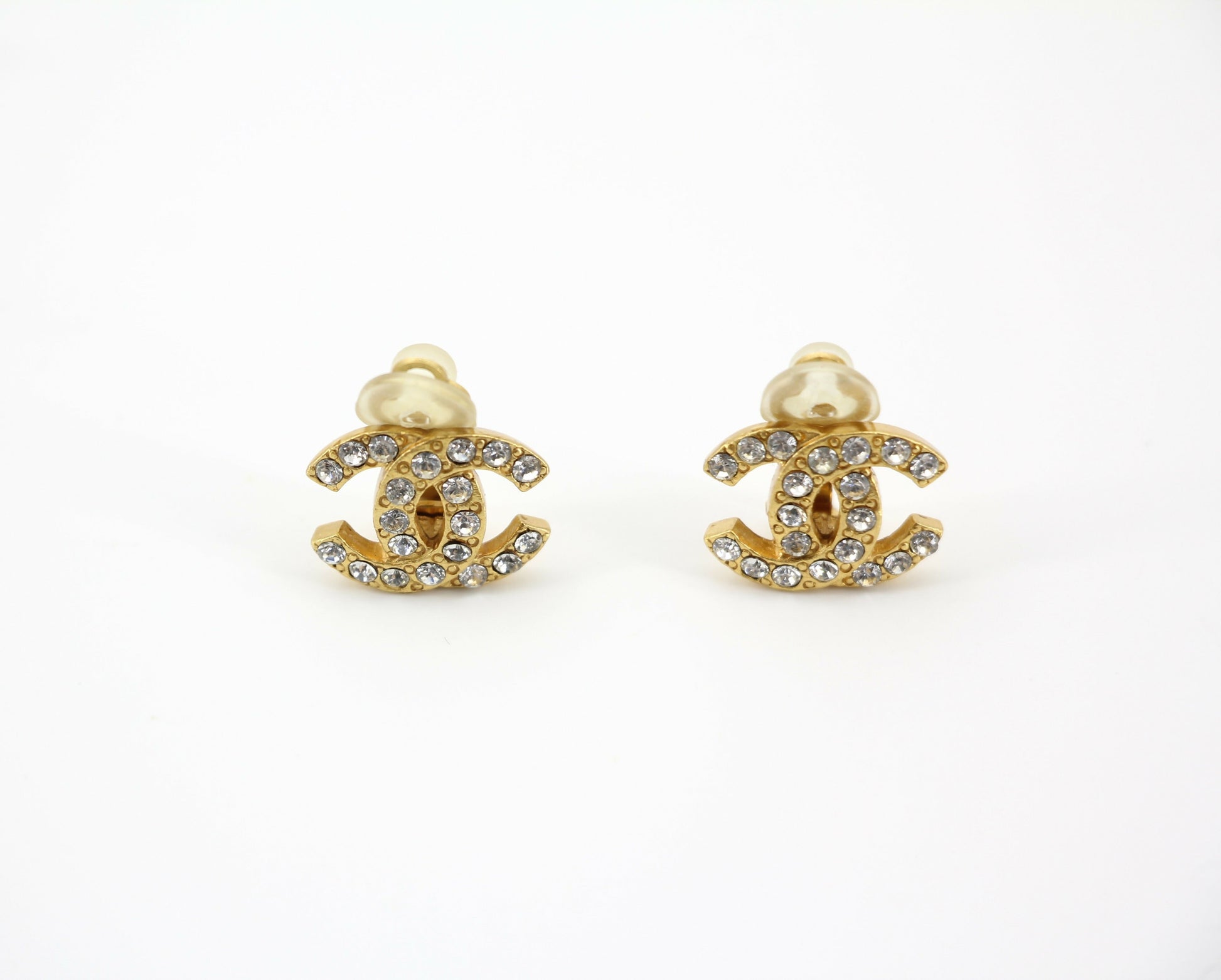 Chanel Vintage 02A Rhinestone Gold-plated CC Mark Clip-on Earrings