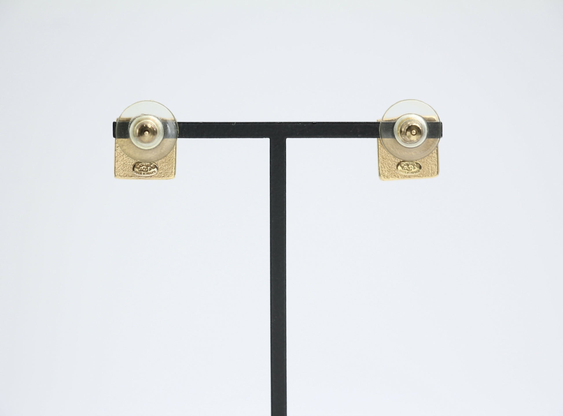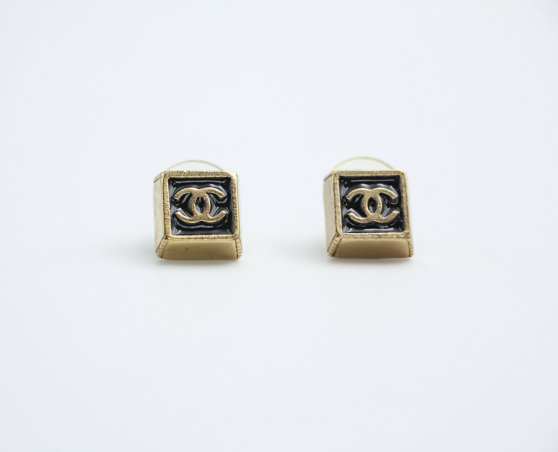 Chanel Vintage 03P Metal Square Black Stud Earrings