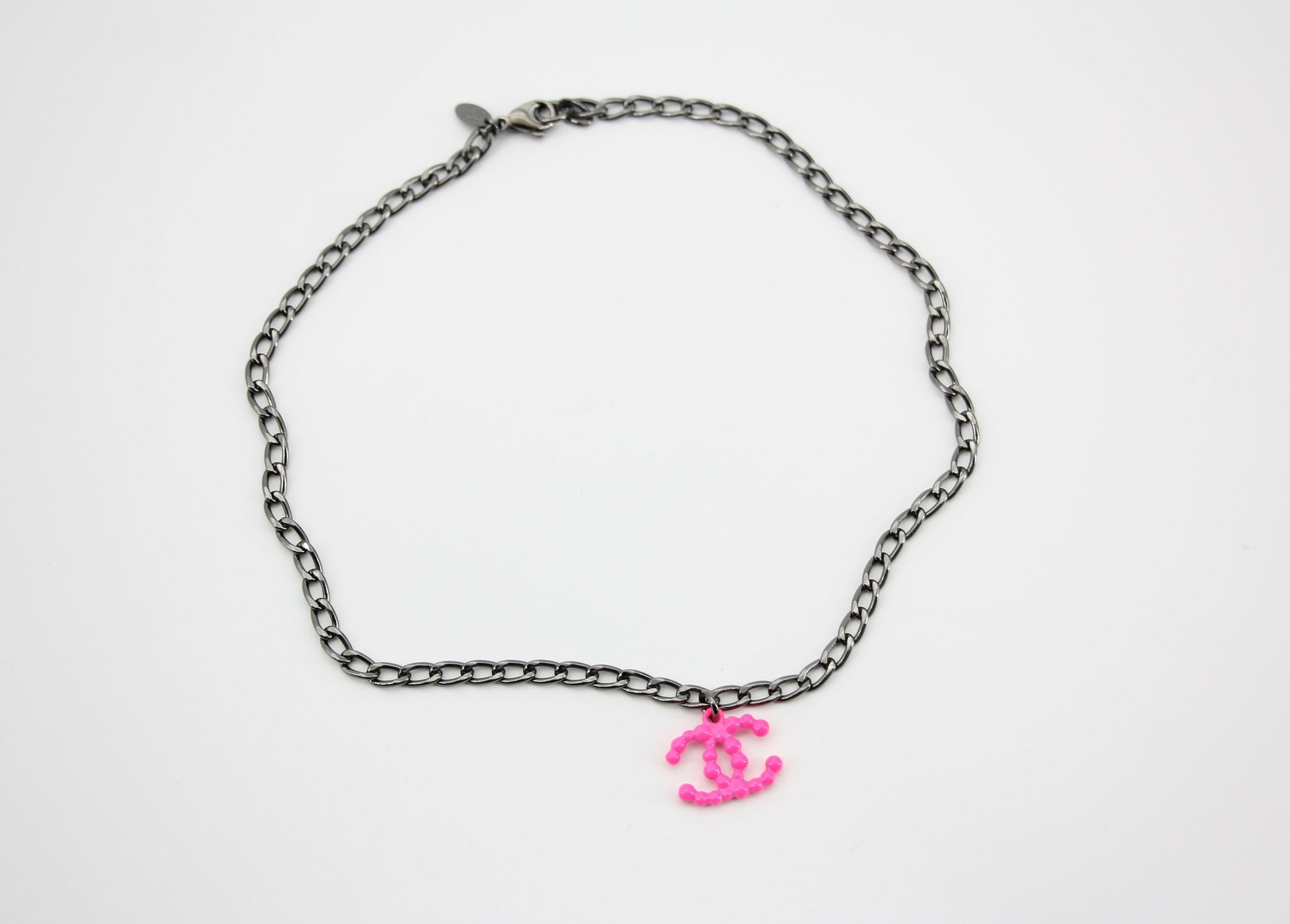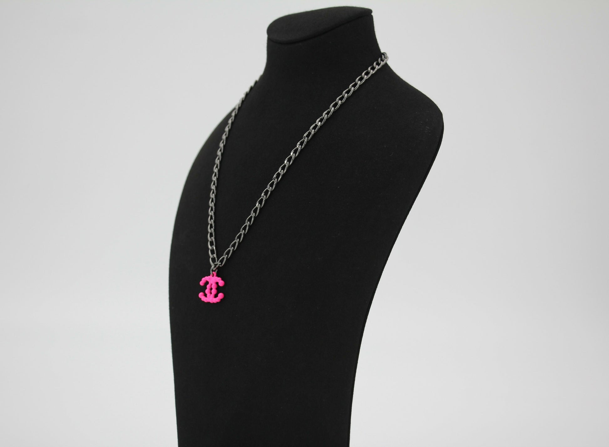 Chanel Vintage 04A Resin Fluorescent Pink CC Necklace