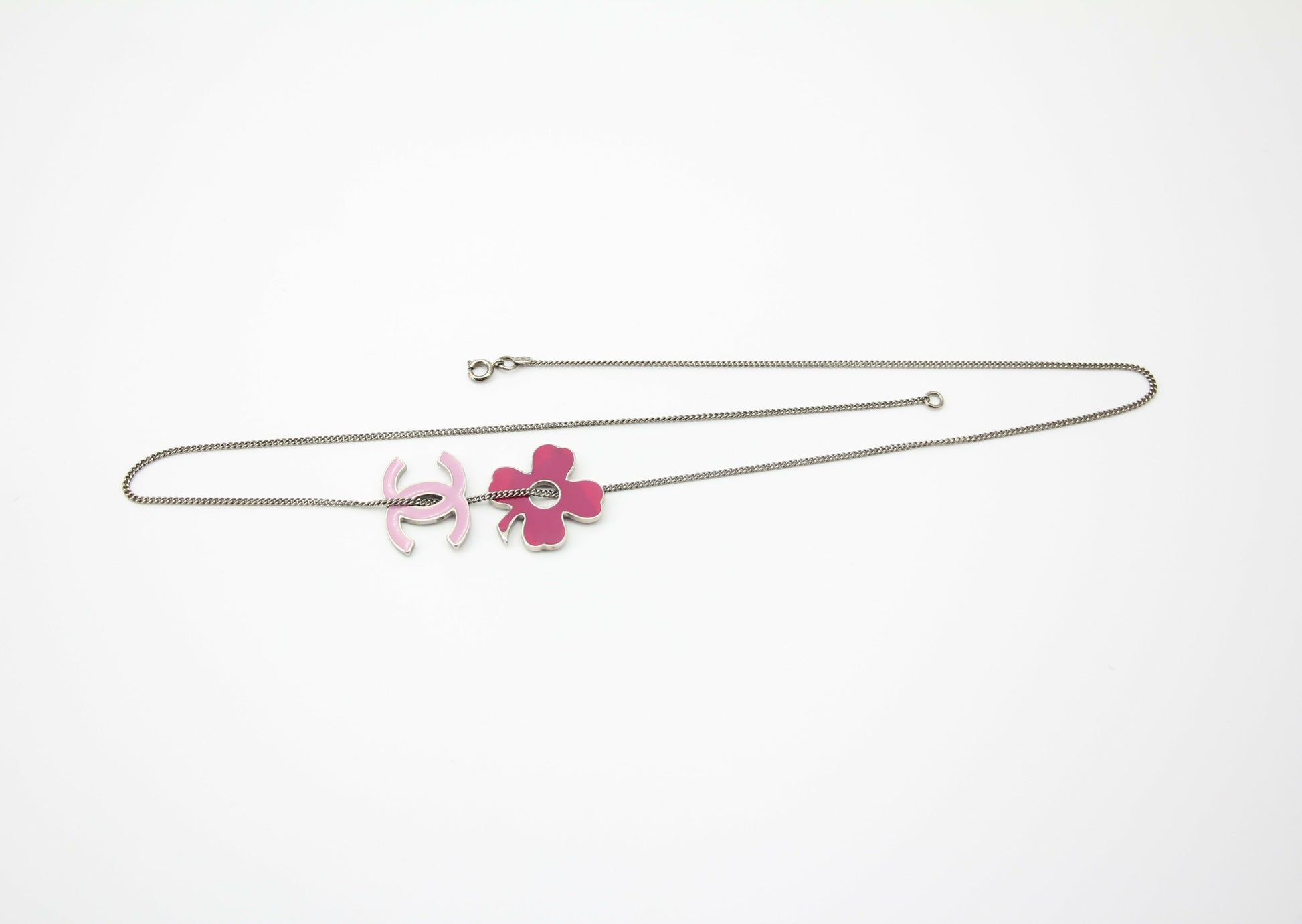 This Chanel Vintage 04P Enamel Peach Pink Four-Leaf Clover Necklace is a pre-lived piece that adds a touch of chic elegance to any outfit. The delicate enamel peach pink clover design is timeless and versatile, making it the perfect accessory for any occasion.