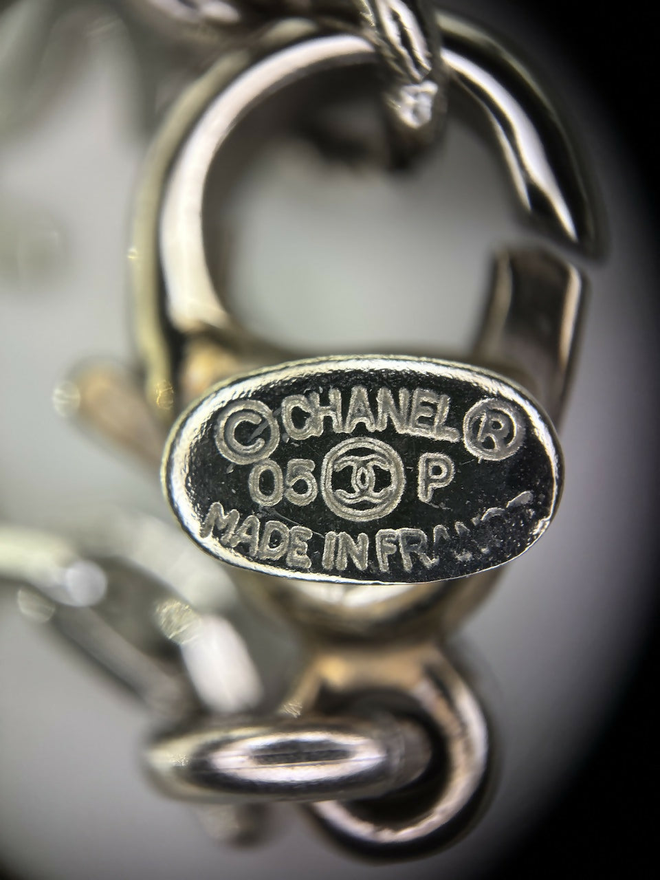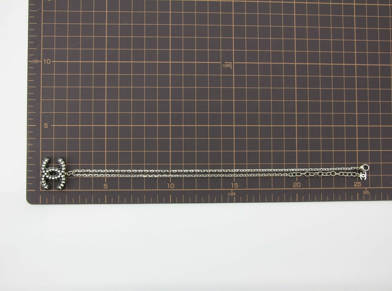 This timeless Chanel necklace features a double-sided CC pendant made of transparent acrylic, adorned with sparkling rhinestones. Each piece is unique, previously loved and in excellent condition. Own a piece of Chanel history while adding a touch of elegance to any outfit.