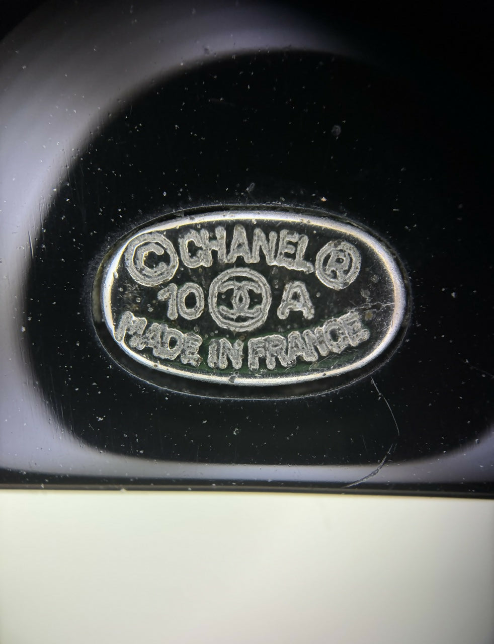 This Chanel Vintage 10A Resin Transparent Square Black CC Pendant Necklace is a timeless piece that has been pre loved. Made with high-quality resin and featuring a transparent square pendant with a black CC logo, this necklace brings effortless elegance to any outfit. A must-have for fashion enthusiasts.