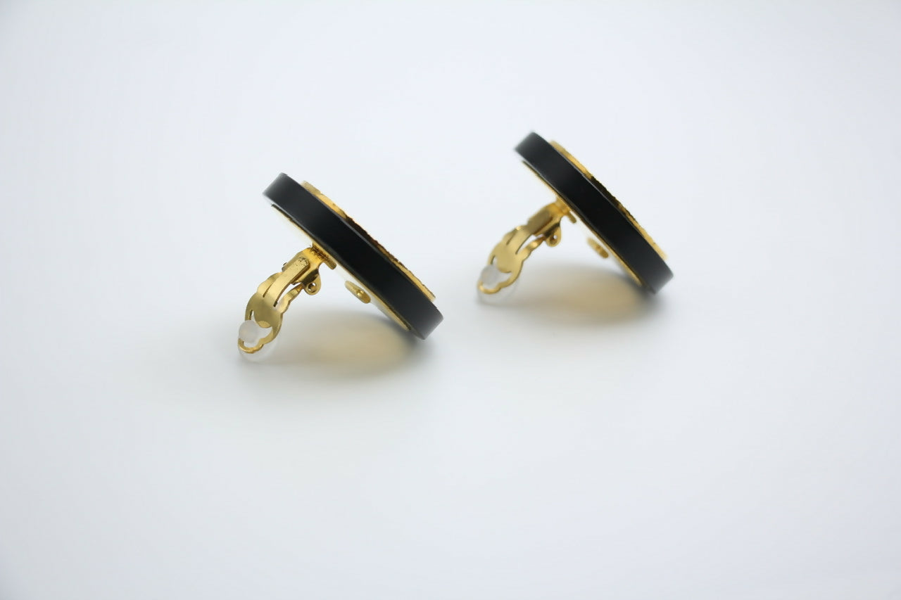 Chanel Vintage 1992 Gold-plated Black Gold Brushed Clip-on Earrings