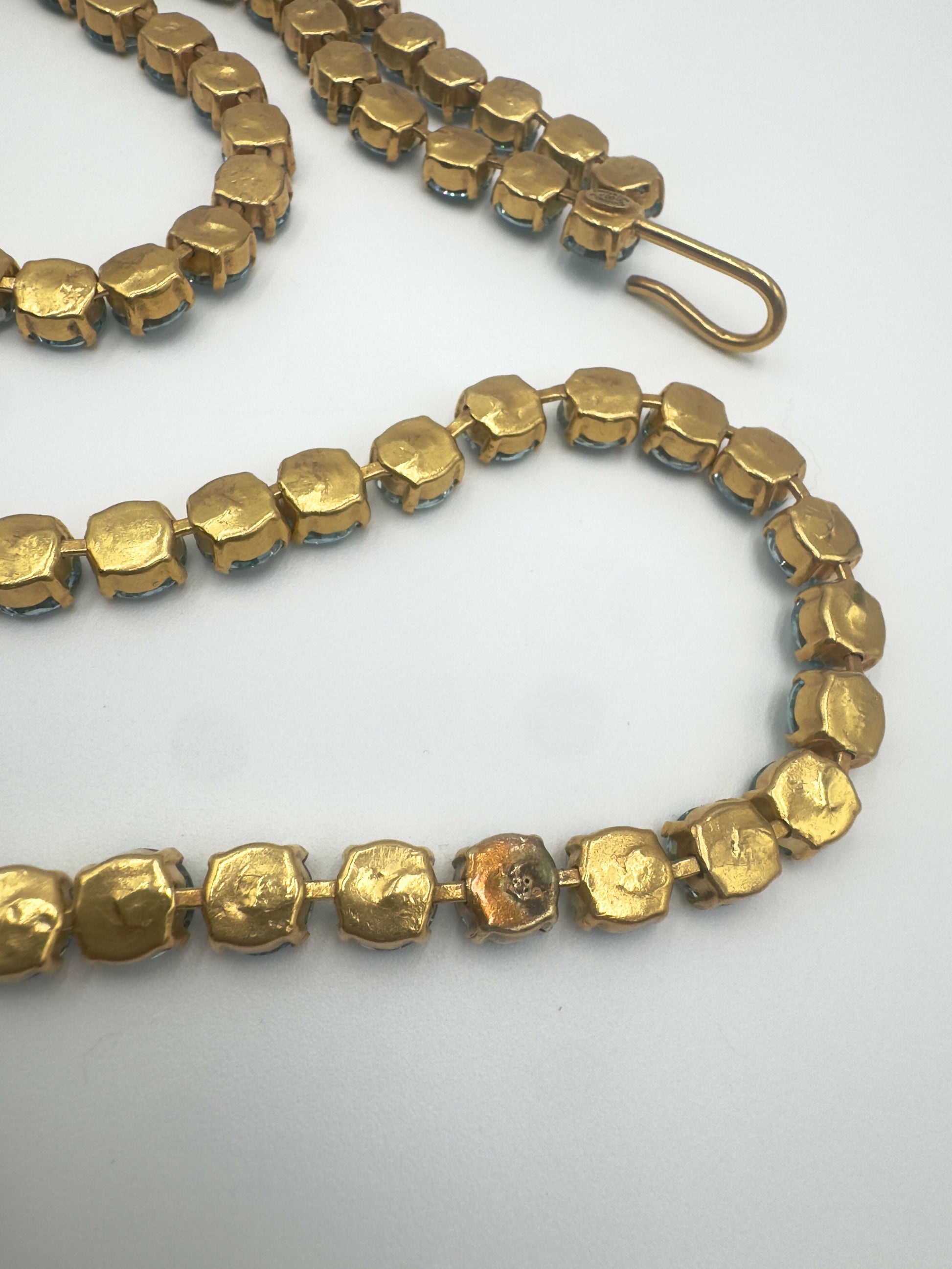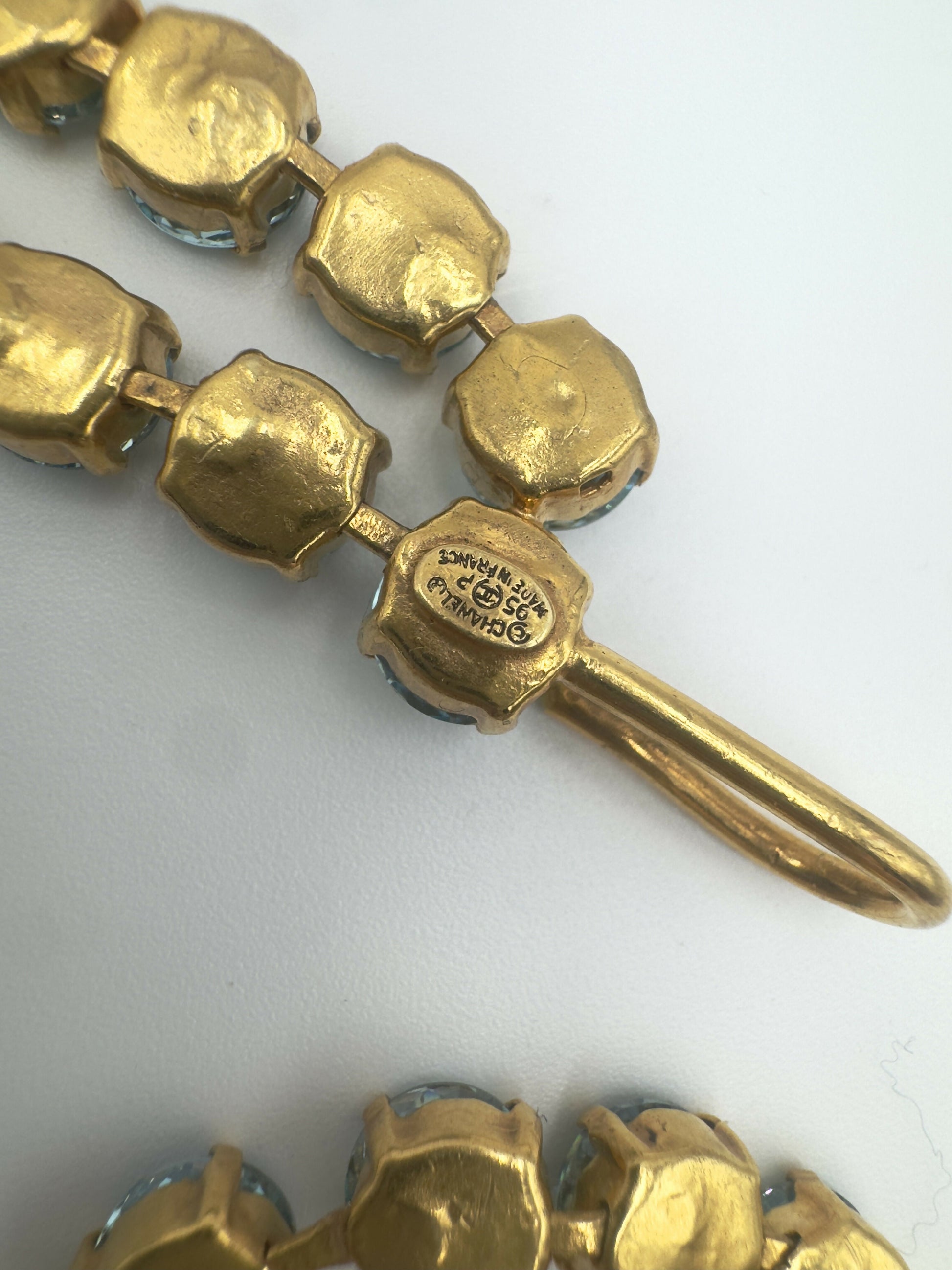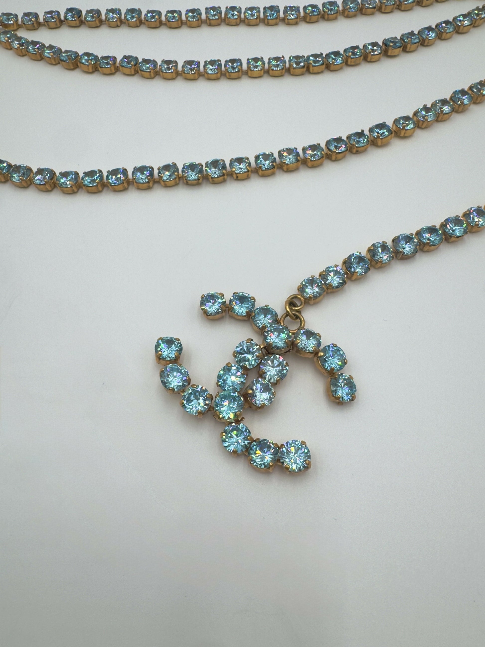 The Chanel Vintage Baby Blue Iridescent Dangle Belt from the exclusive 1995P collection is an ultra-rare runway piece, with fewer than five known to exist worldwide. Designed solely for the runway and never released for public distribution, this belt showcases shimmering baby blue iridescent rhinestones set in an elegant chain-link design. The iconic dangling CC charm adds a touch of signature Chanel sophistication. A true collector’s treasure, this masterpiece embodies the bold glamour and exclusivity of ‘90s Chanel couture.