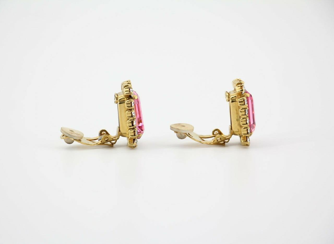 Chanel Vintage 95P Rhinestone Barbie Pink Clip-on Earrings