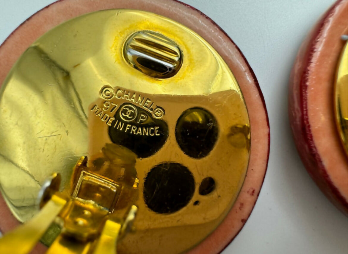 Chanel Vintage 97P Resin Big Red ‘CHANEL’ Round Gold-plated Clip-on Earrings