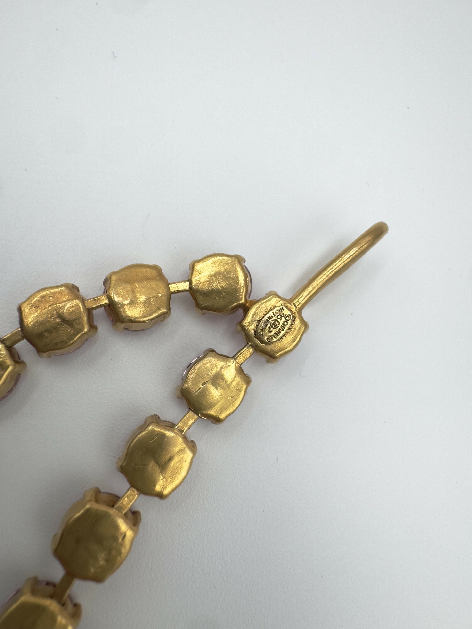 The Chanel Vintage Baby Pink Iridescent Dangle Belt from the exclusive 1995P collection is an ultra-rare runway piece, with fewer than five known to exist worldwide. Designed solely for the runway and never released for public distribution, this belt showcases shimmering baby pink iridescent rhinestones set in an elegant chain-link design. The iconic dangling CC charm adds a touch of signature Chanel sophistication. A true collector’s treasure, this masterpiece embodies the bold glamour and exclusivity of ‘90s Chanel couture.