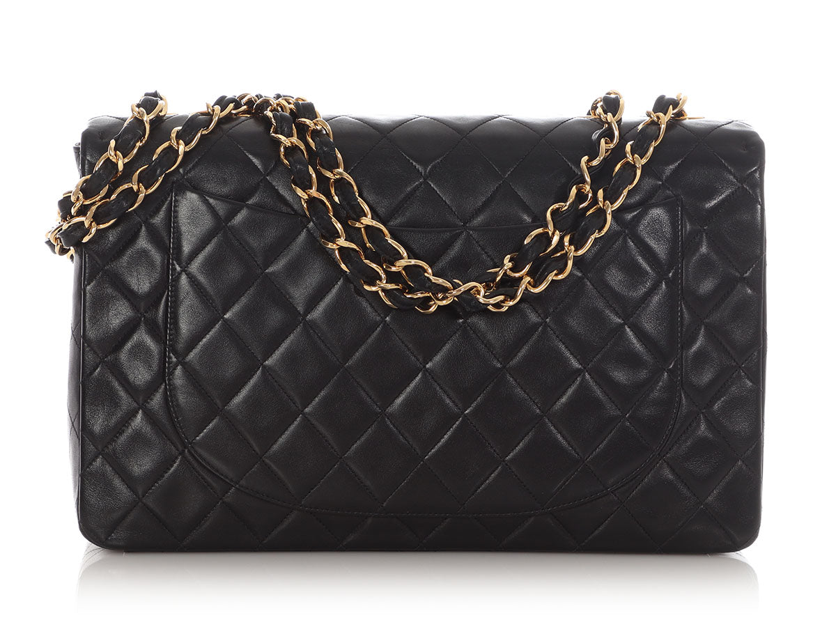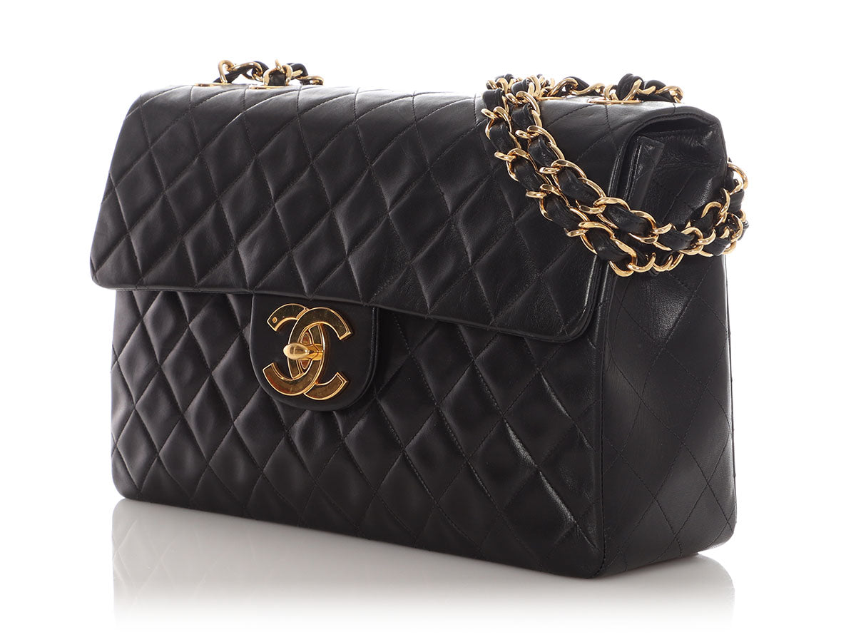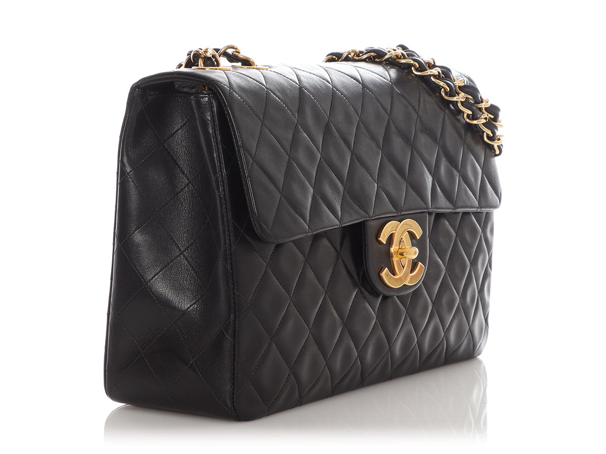 Chanel Vintage Extra Large Black Quilted Lambskin Classic Flap