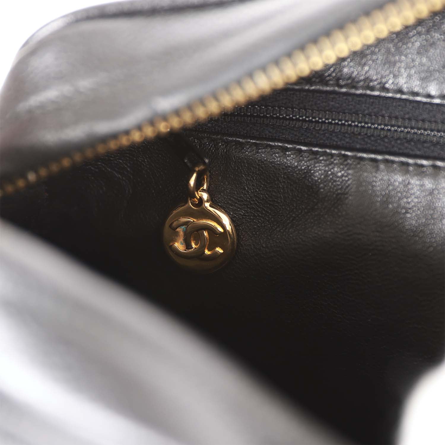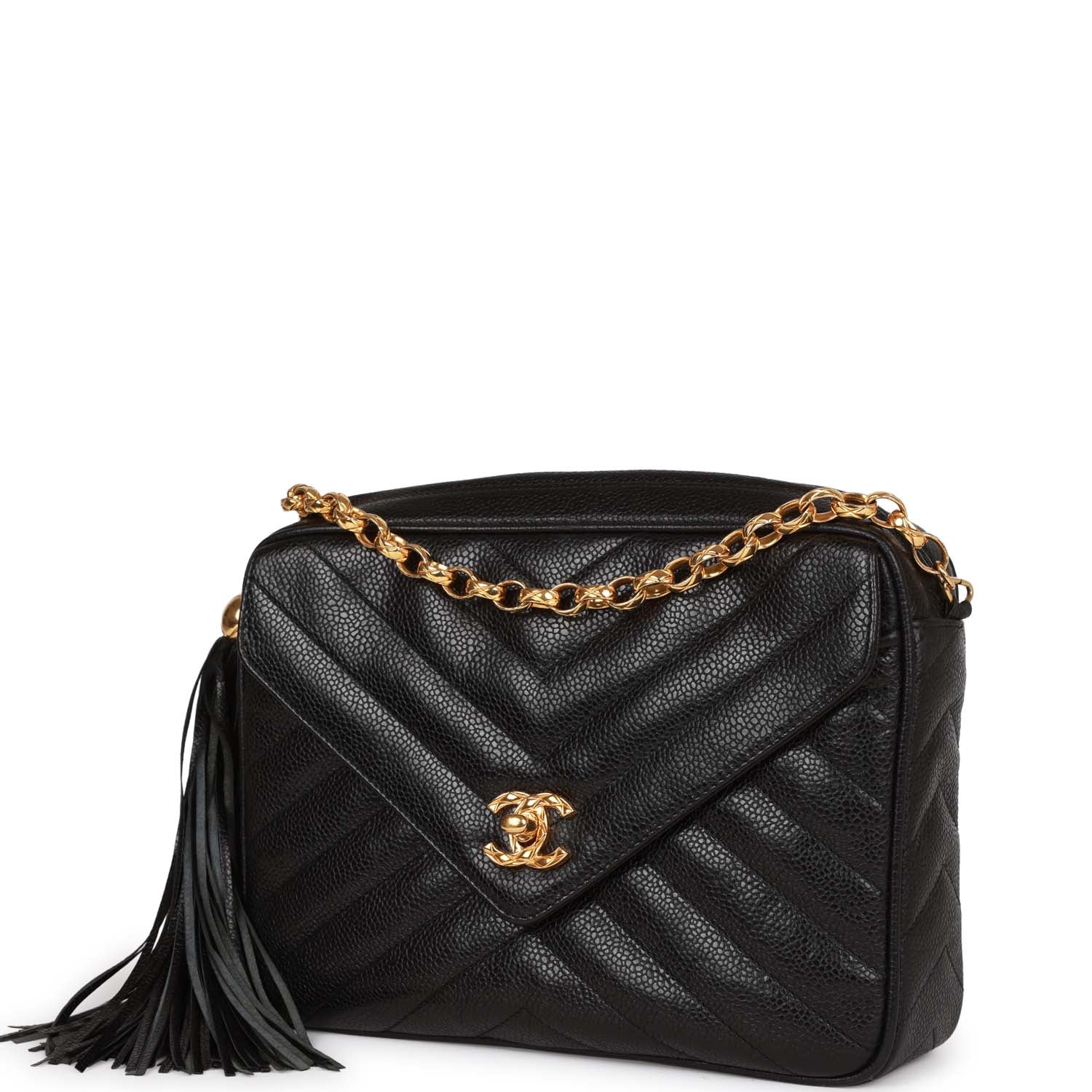 Chanel Vintage Small Chevron Tassel Camera Bag Black Caviar Gold Hardware