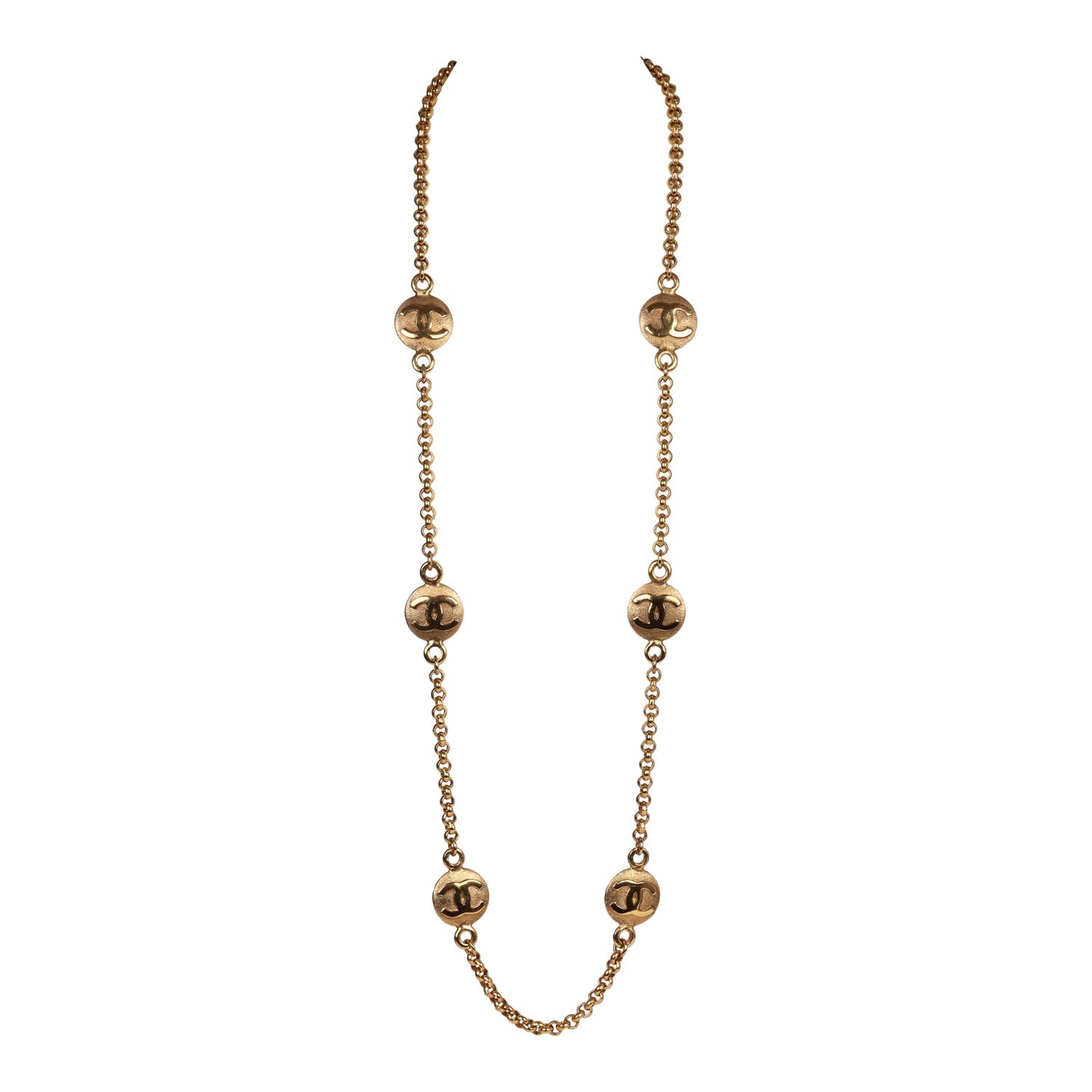 Chanel Vintage Medallion Cable Chain Gold Metal Necklace