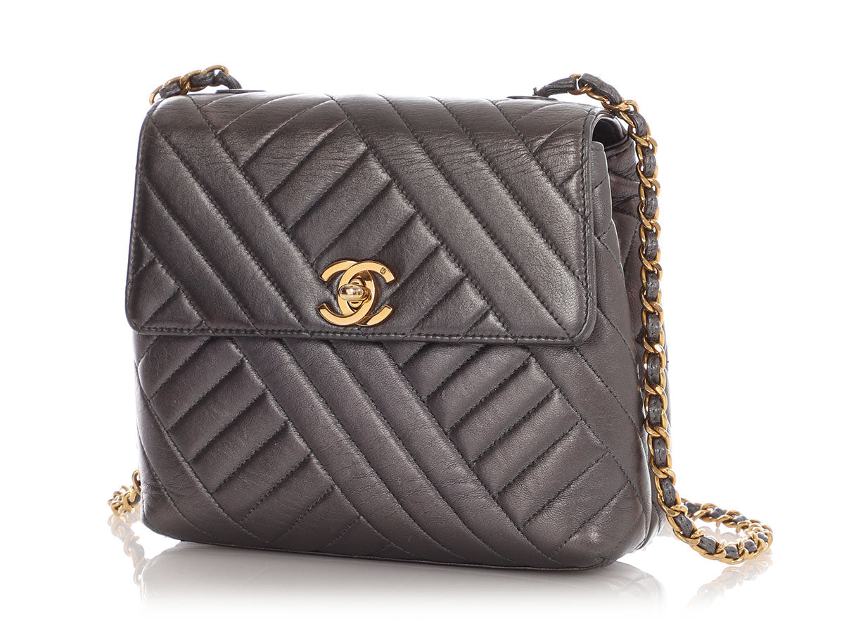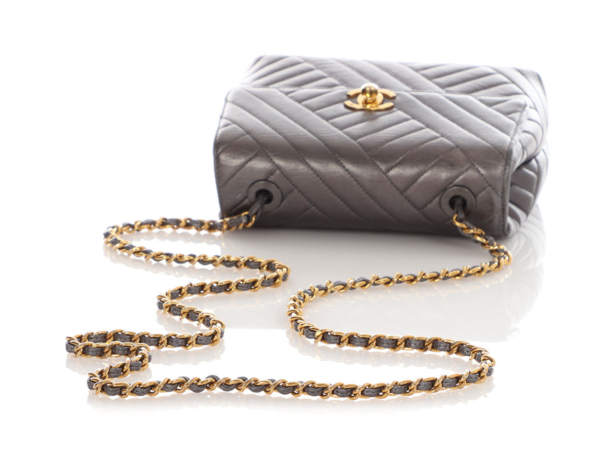 Chanel Vintage Mini Pewter Quilted Lambskin Flap
