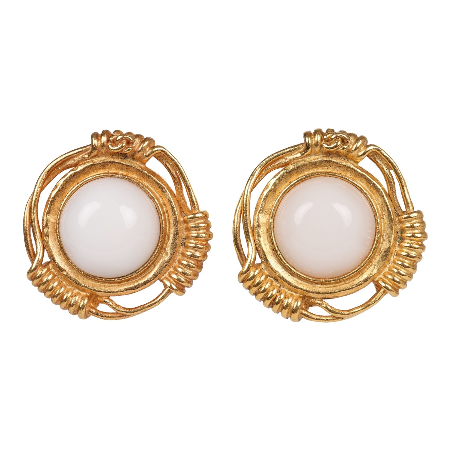 Chanel Vintage 24K Gold Plated White Gripoix Earrings