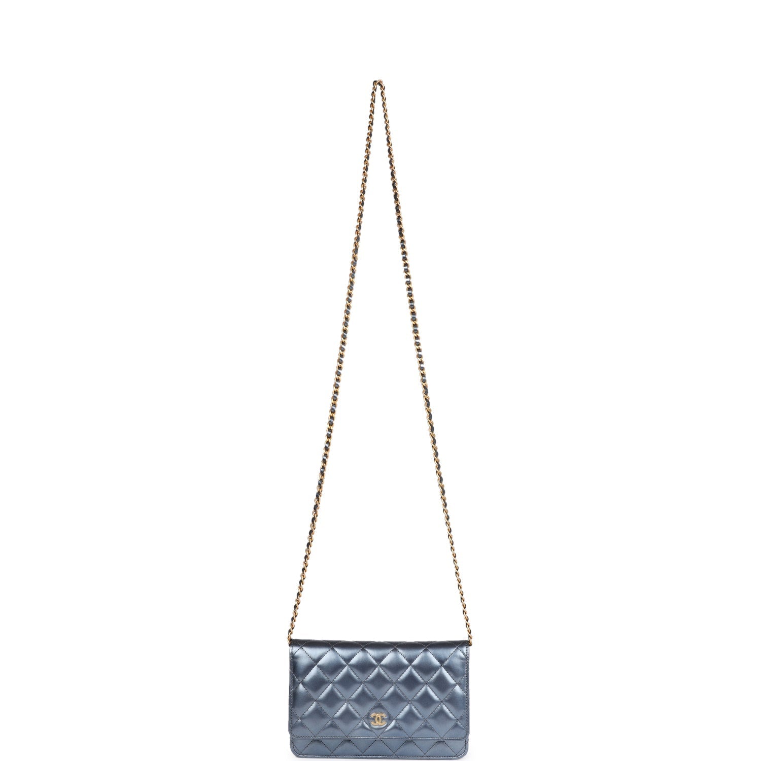 Chanel Wallet on Chain WOC Dark Blue Iridescent Calfskin Antique Gold Hardware