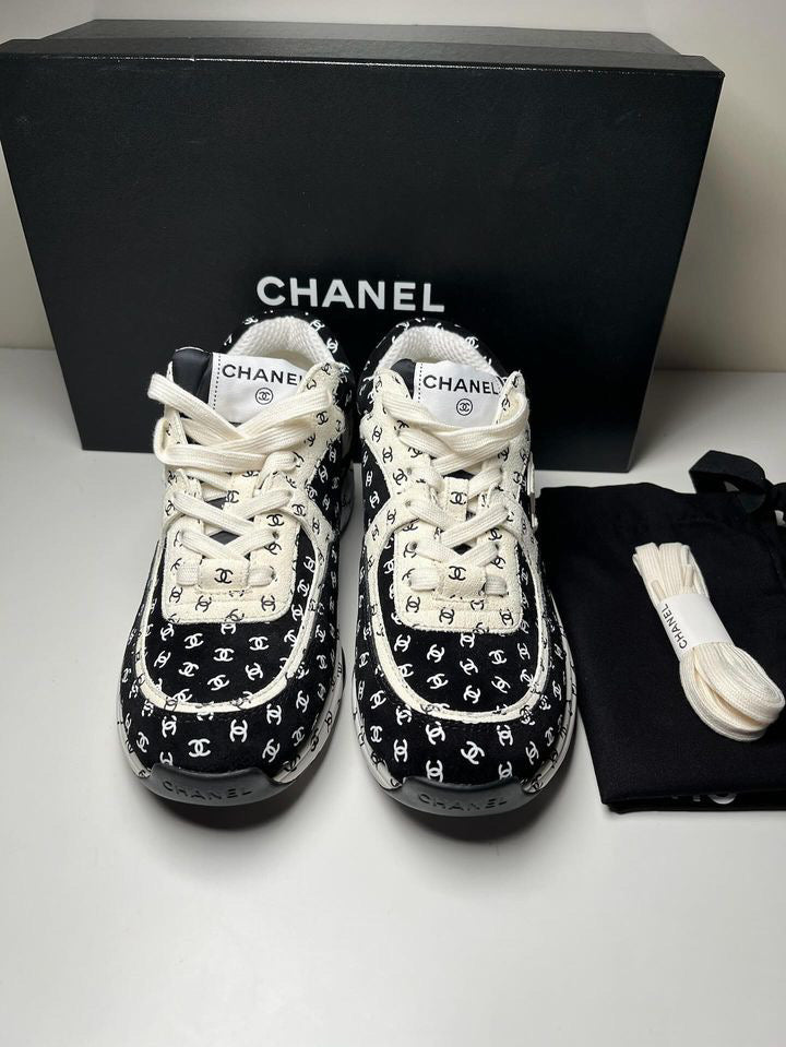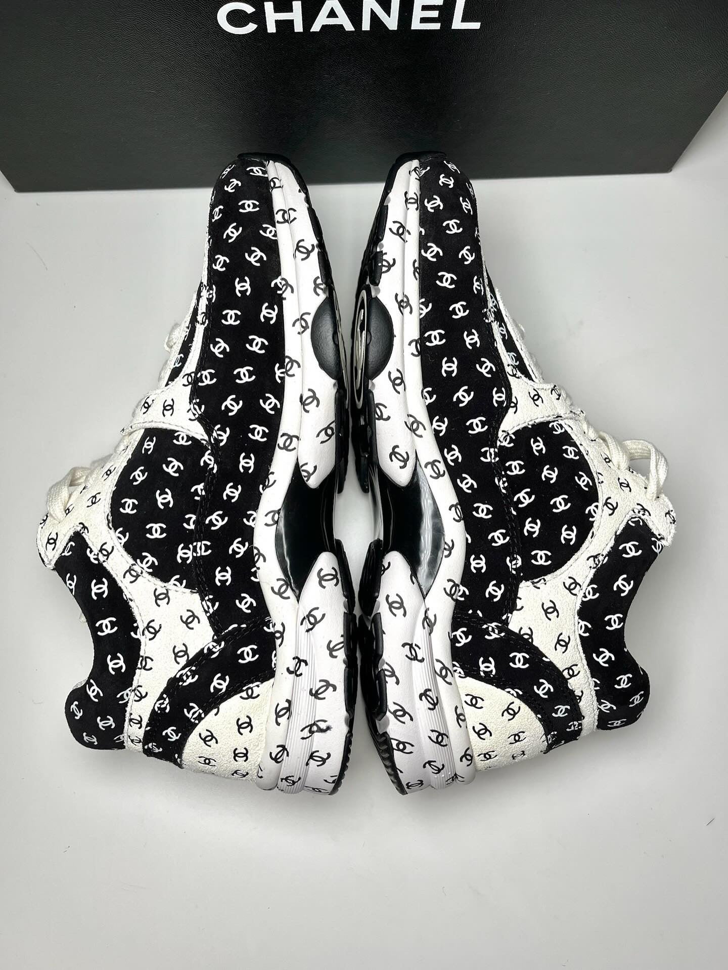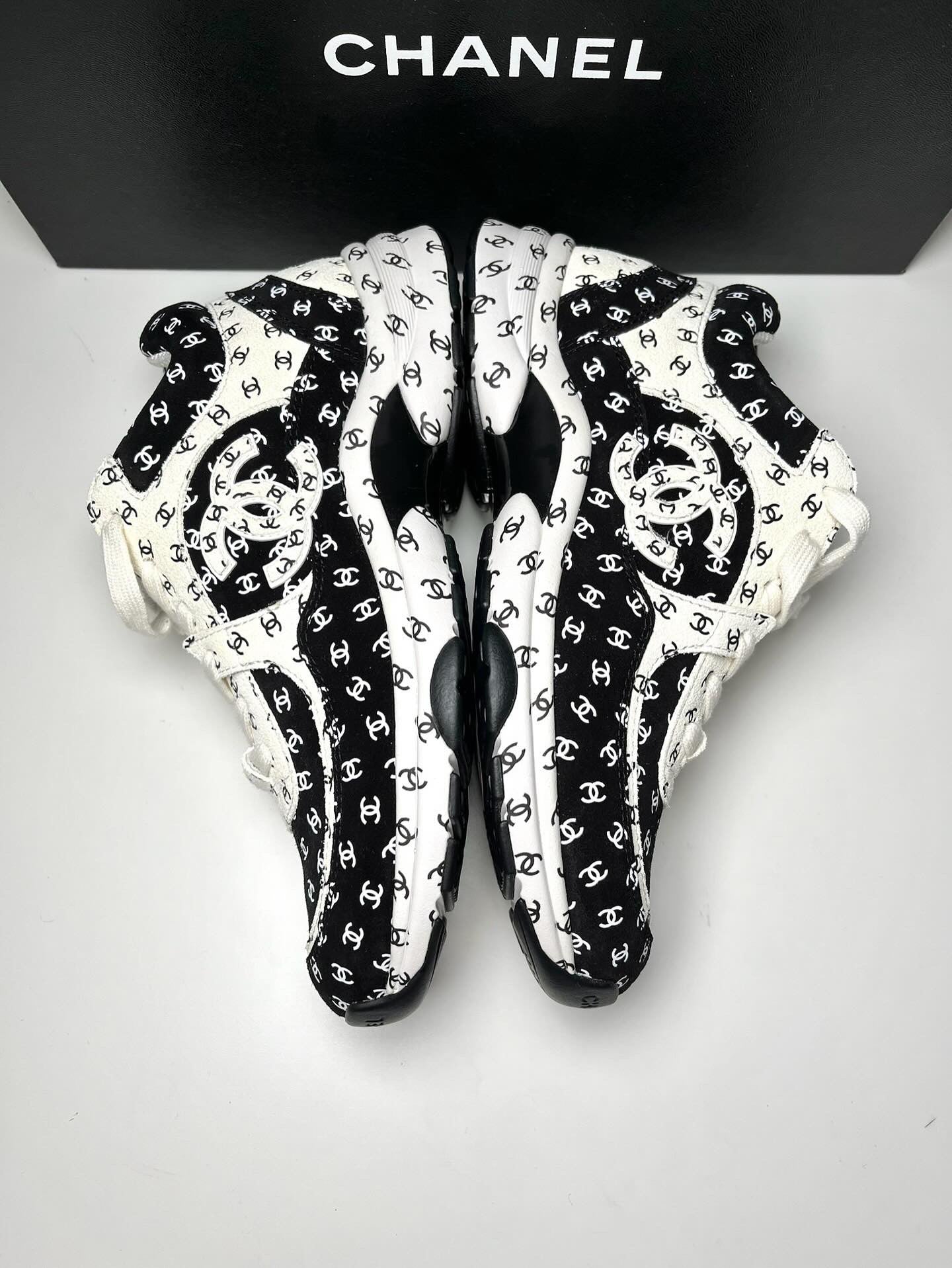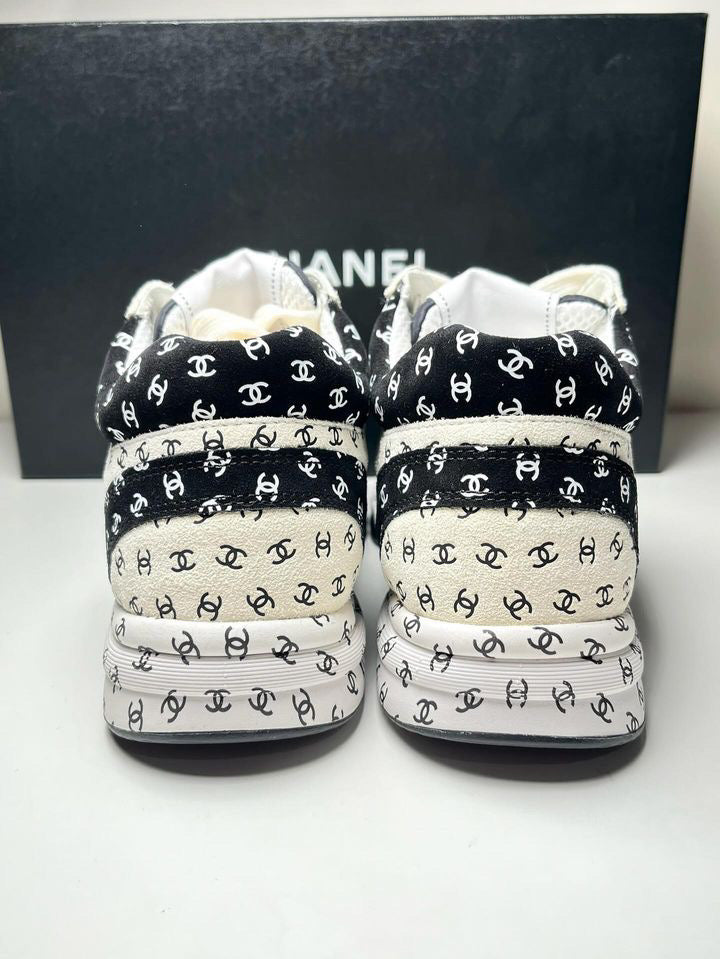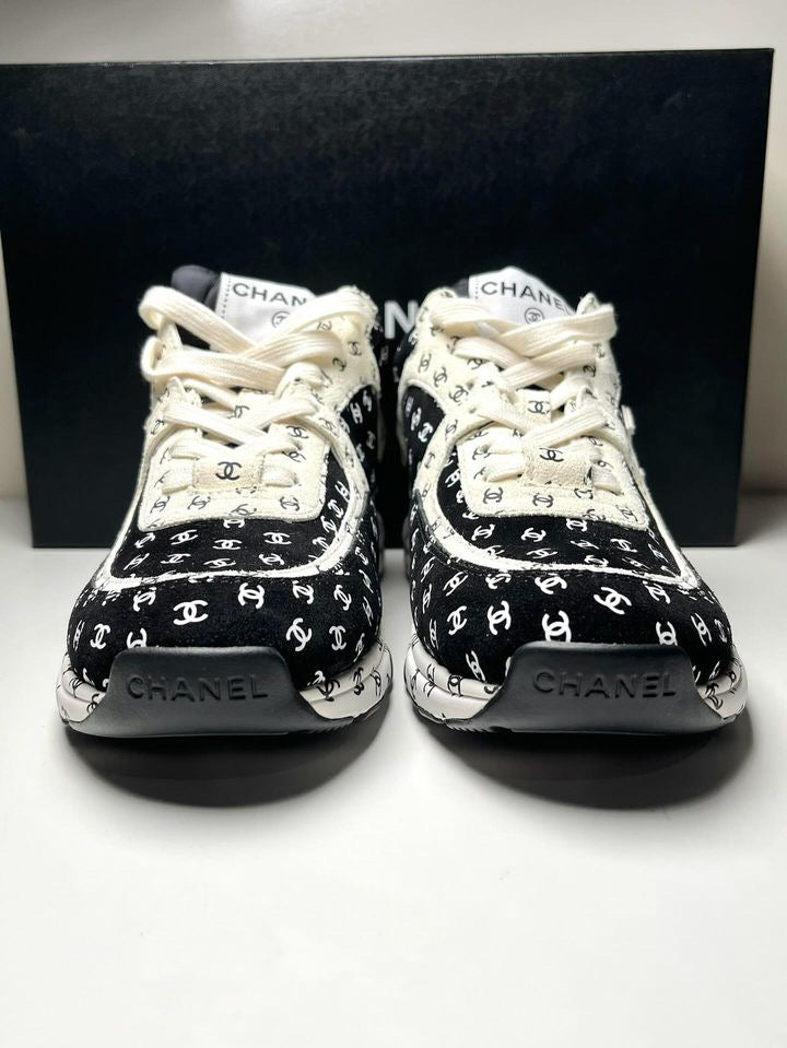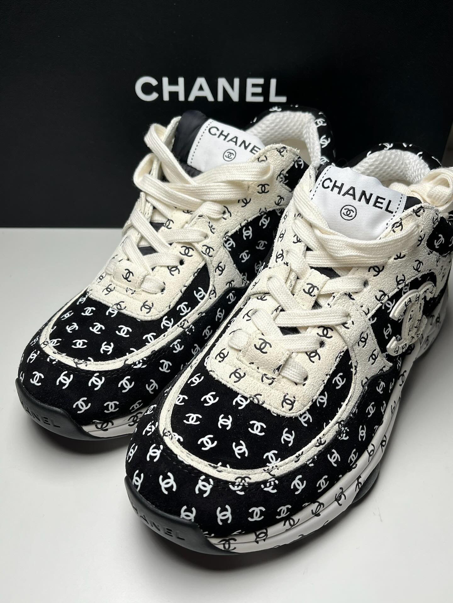 CHANEL White Black suede CC Logo Trainers Sneakers size 37C full set