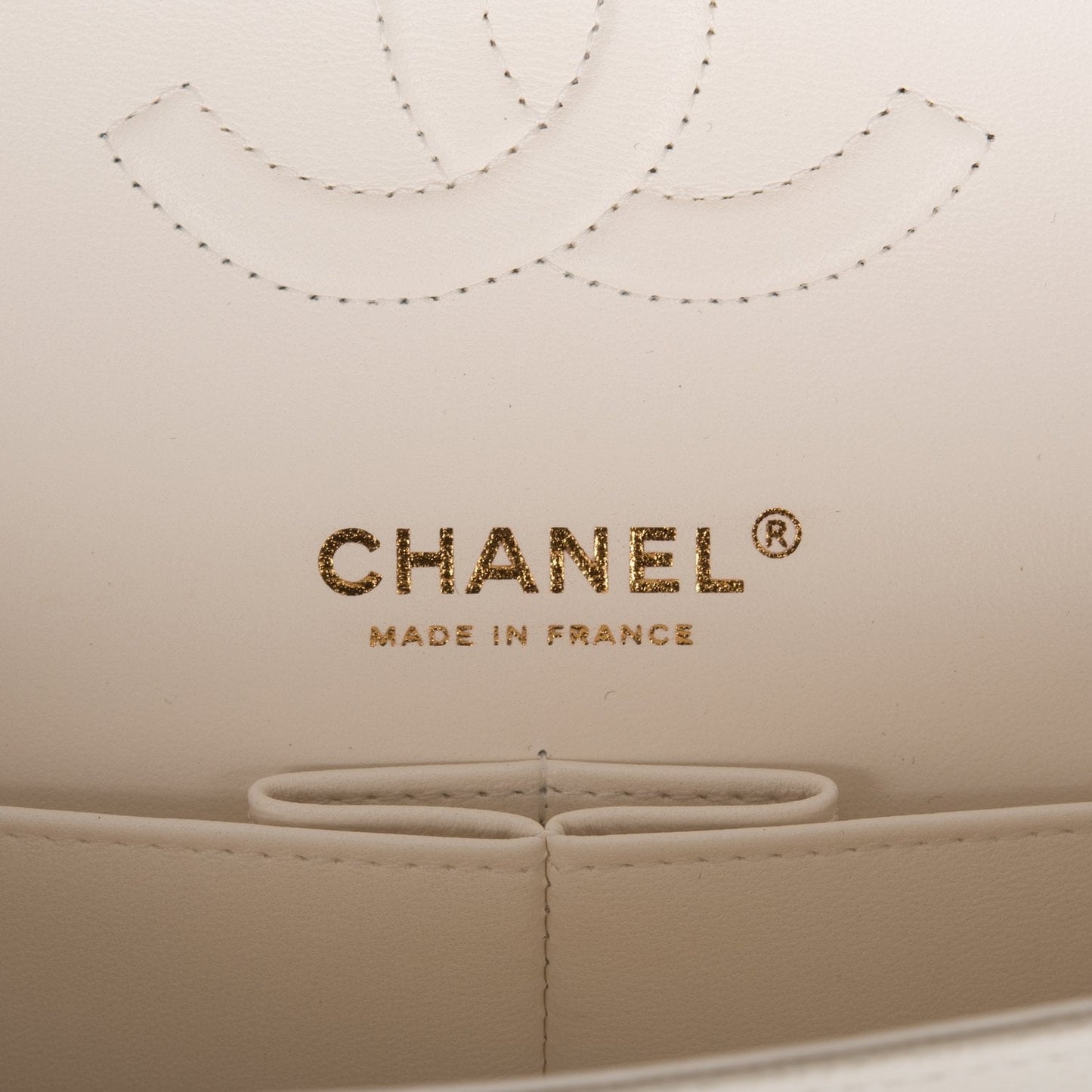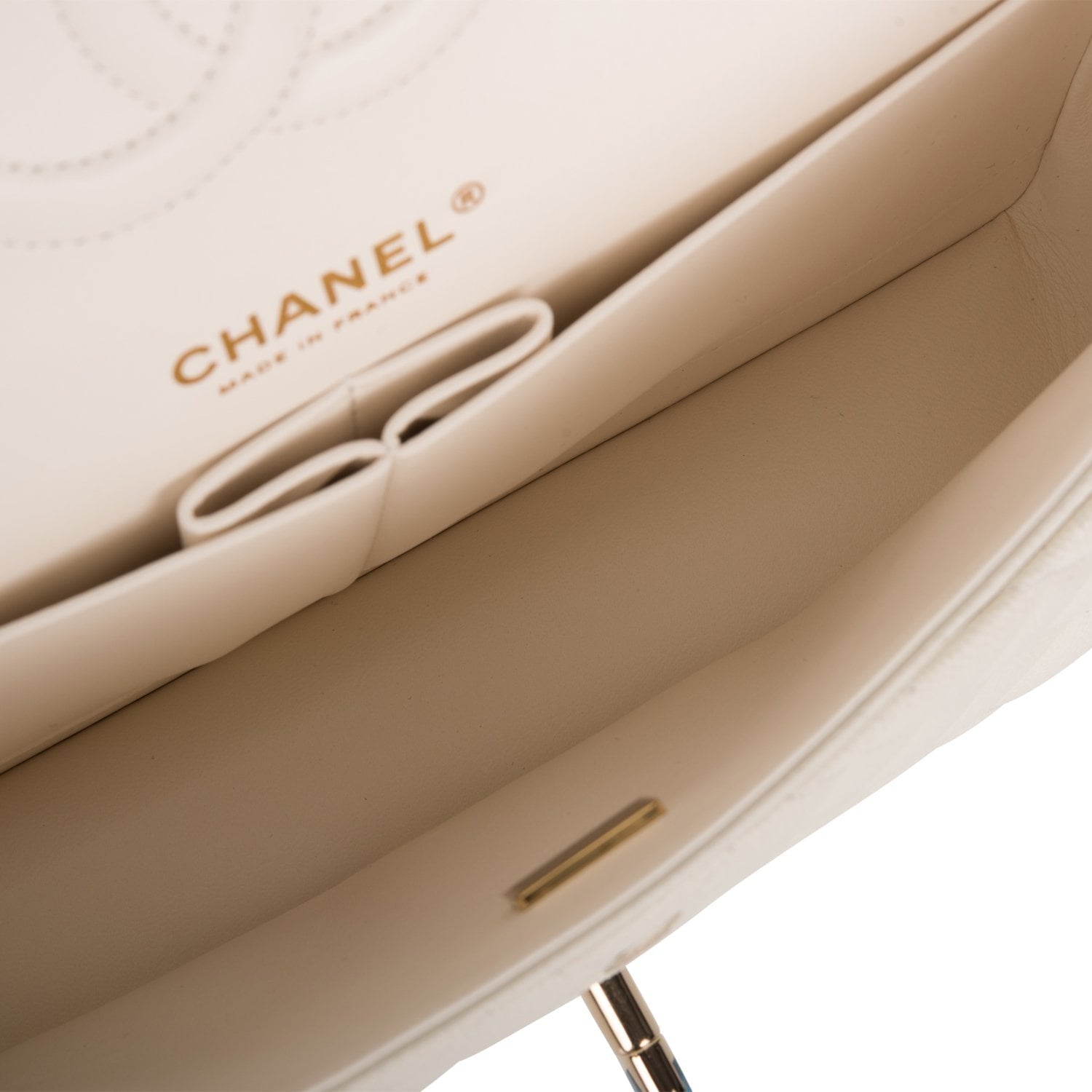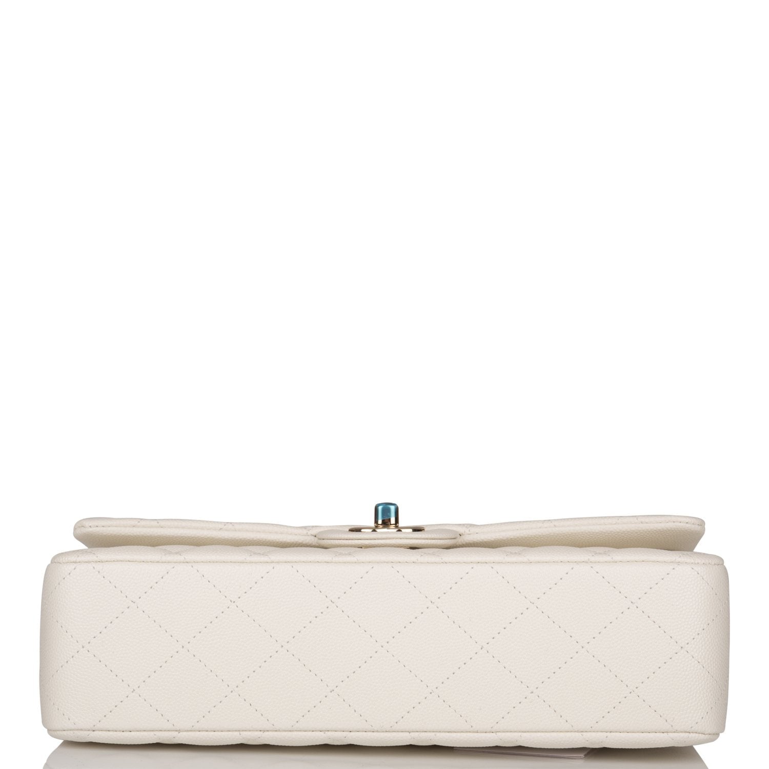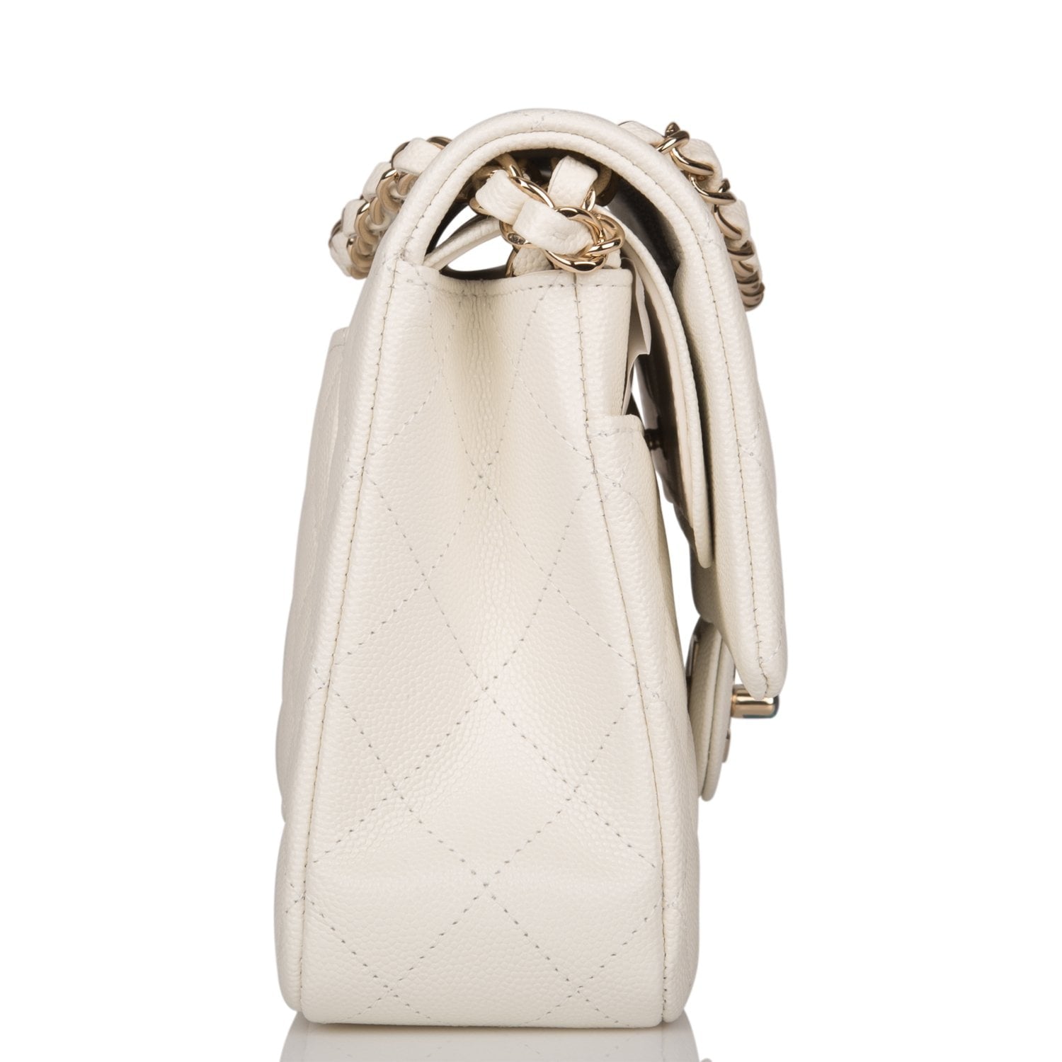 Chanel White Quilted Caviar Medium Classic Double Flap Bag Light Gold Hardware