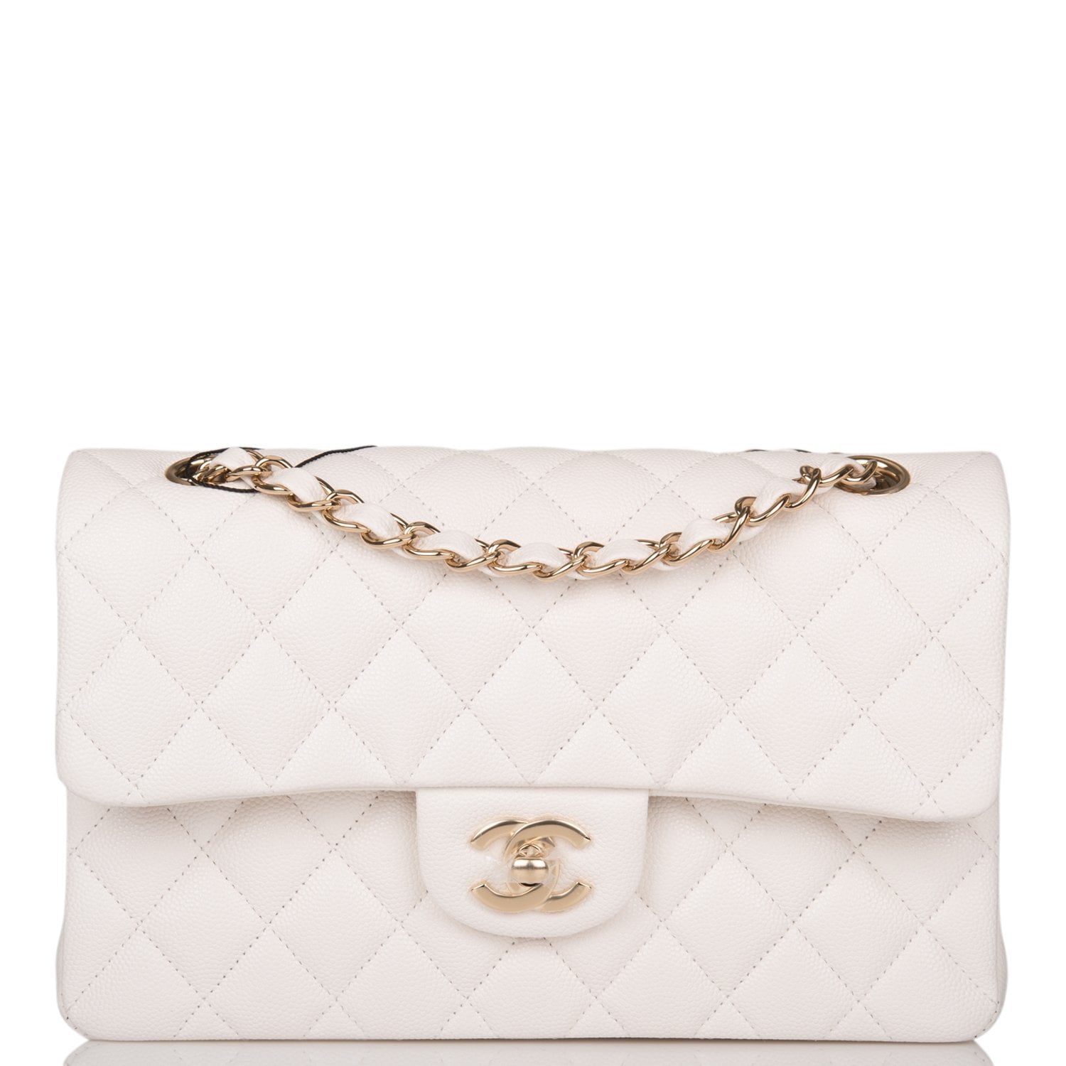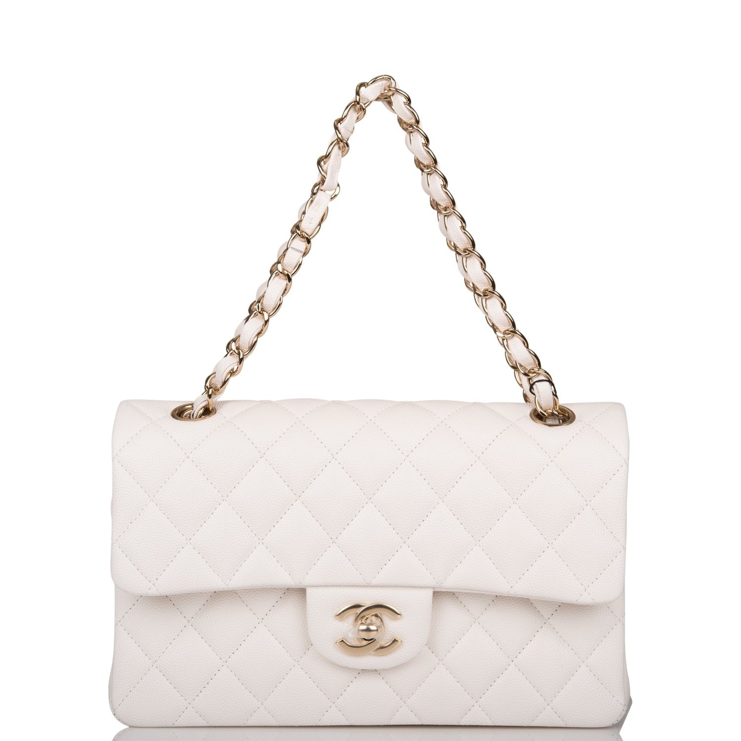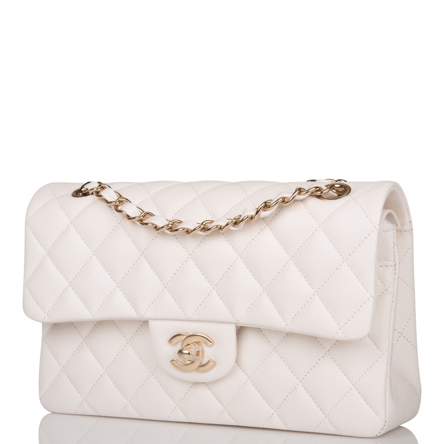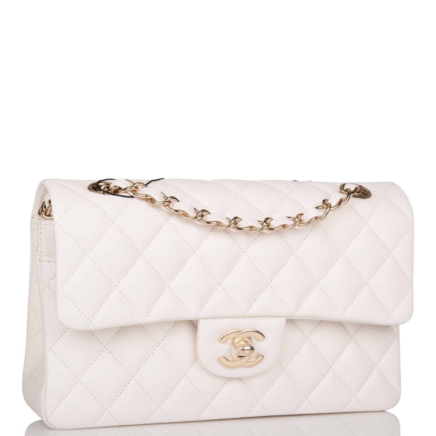 Chanel Small Classic Double Flap White Caviar Light Gold Hardware