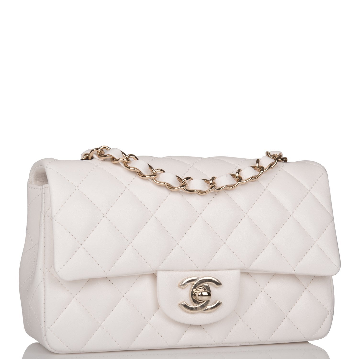 Chanel White Quilted Lambskin Rectangular Mini Classic Flap Bag Light Gold Hardware