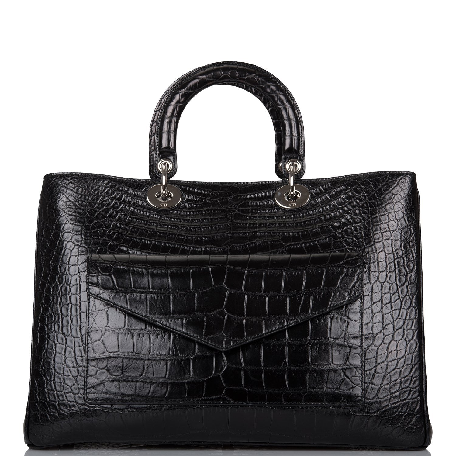 Christian Dior Diorissimo Pocket Tote Black Matte Alligator Silver Hardware
