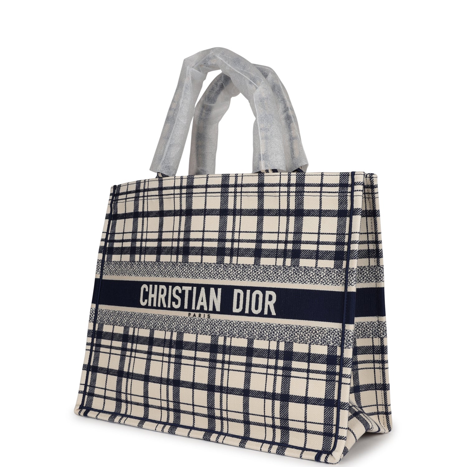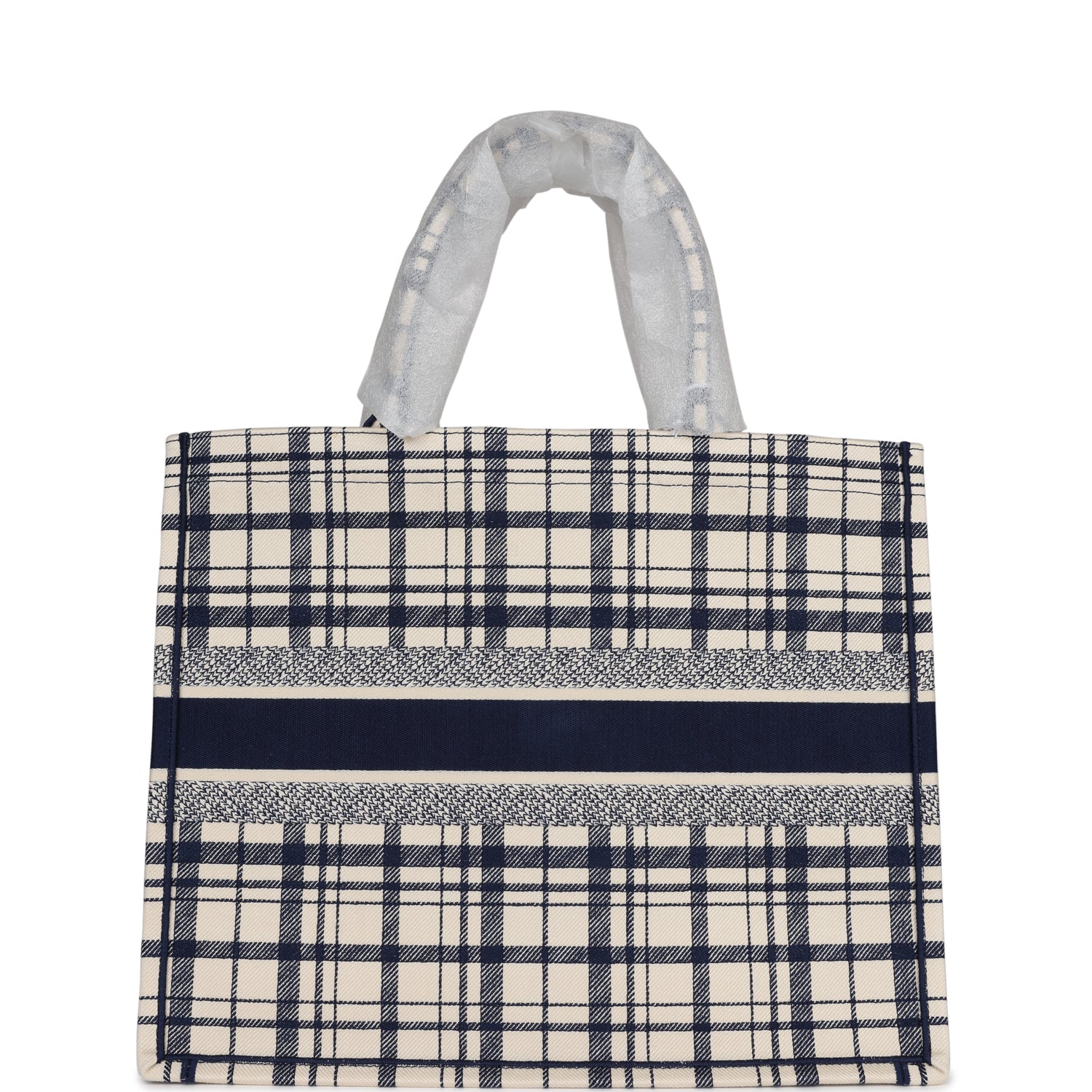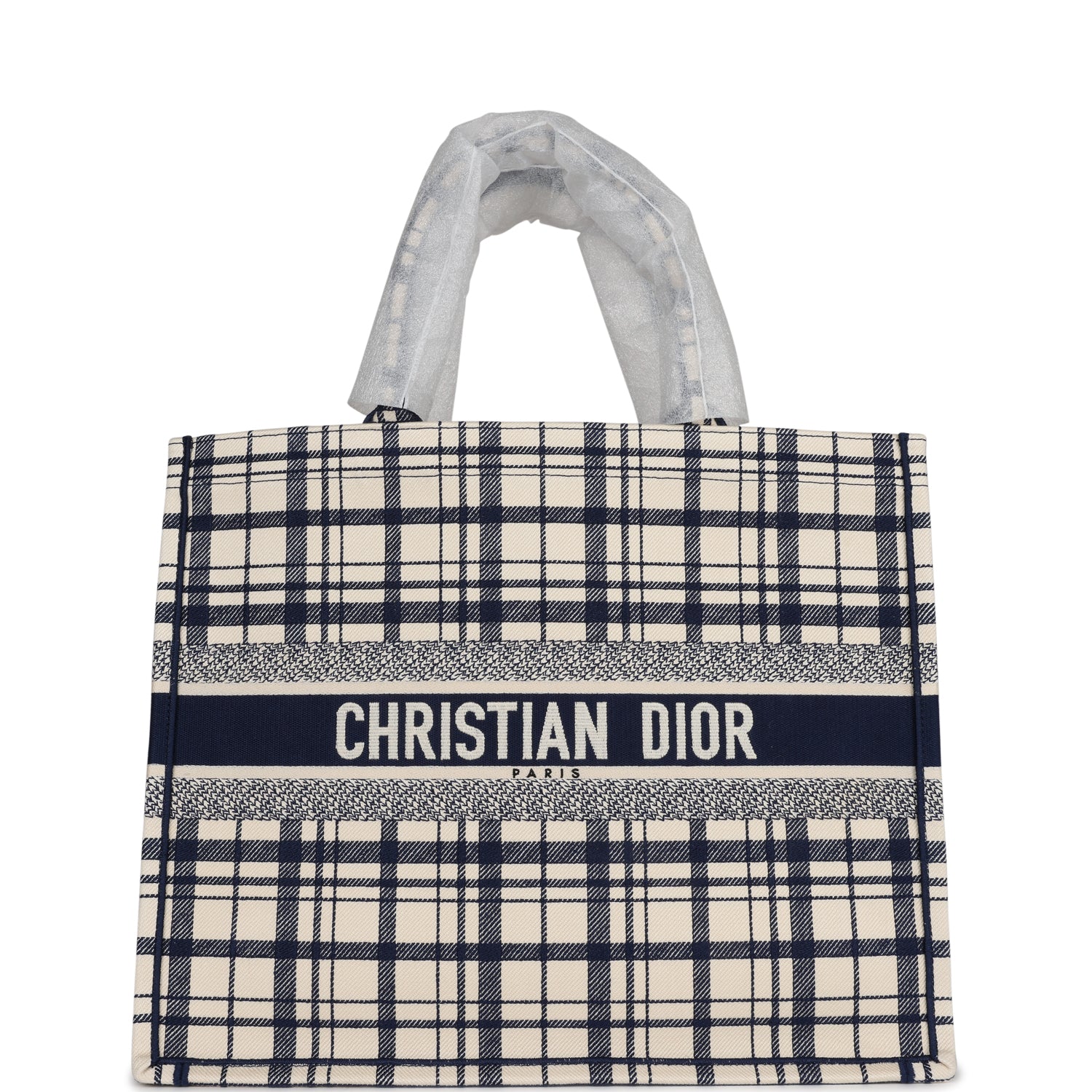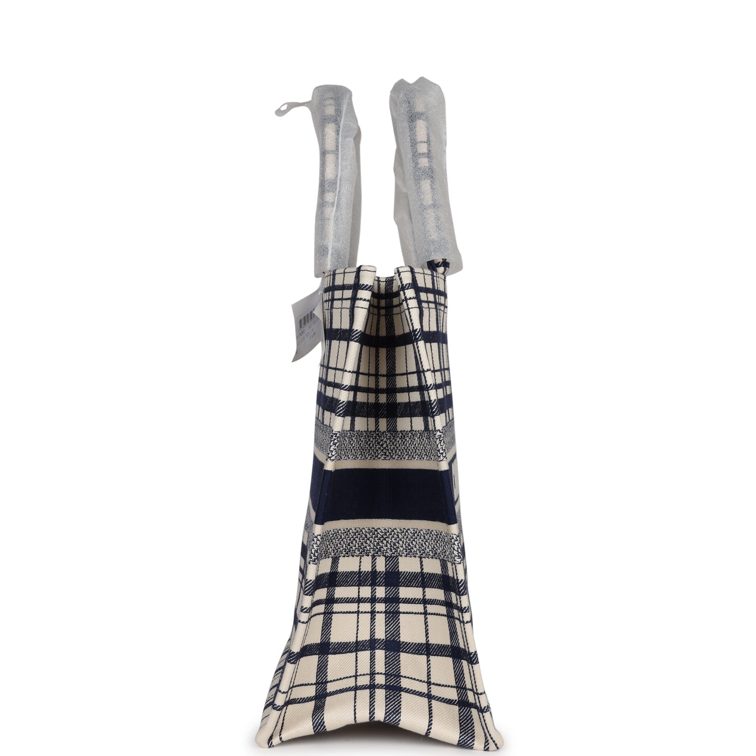 Christian Dior Blue and White Canvas Check'n' Large Book Tote