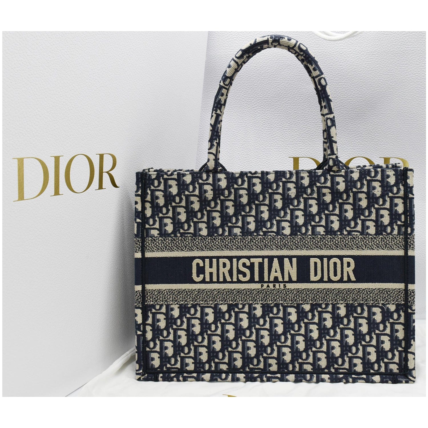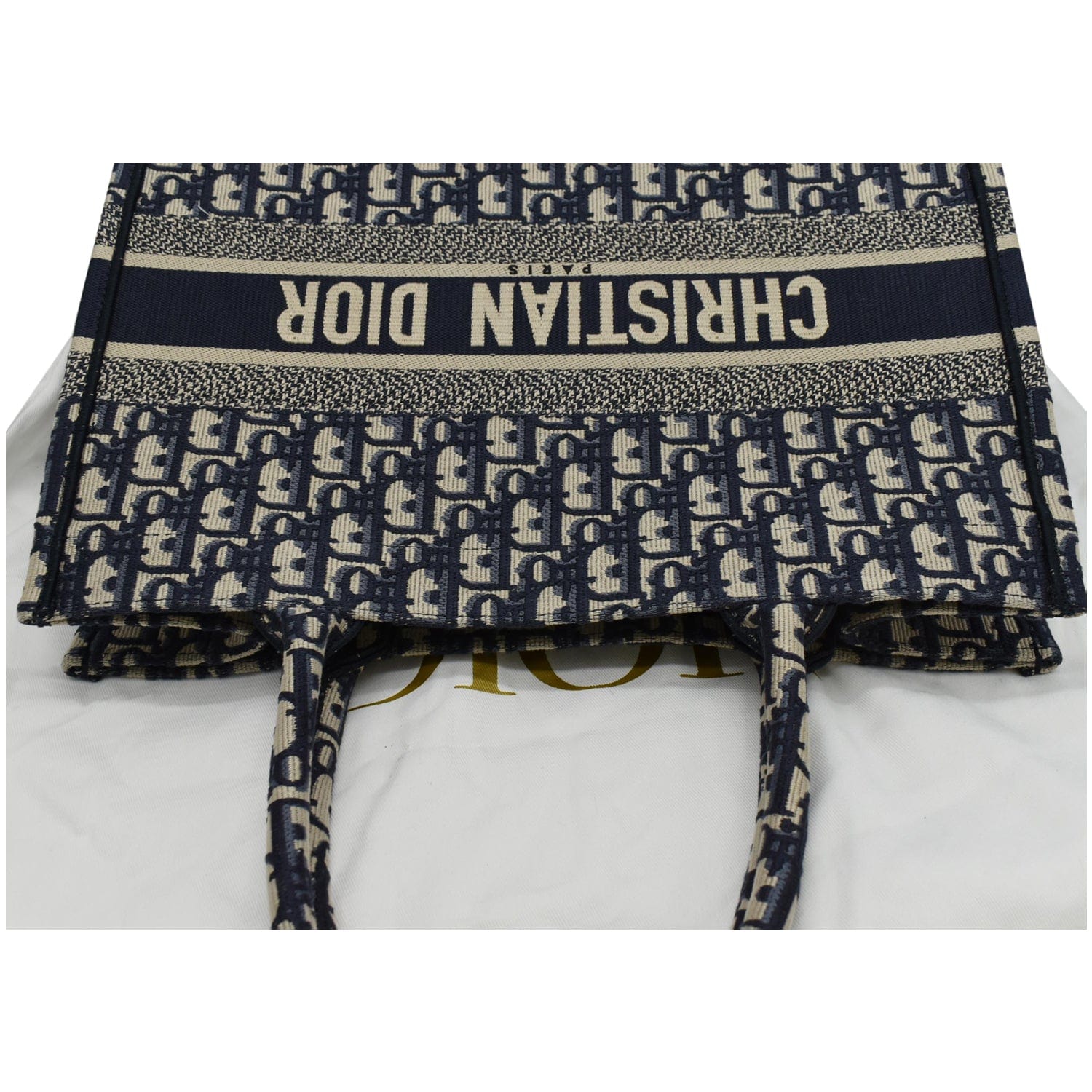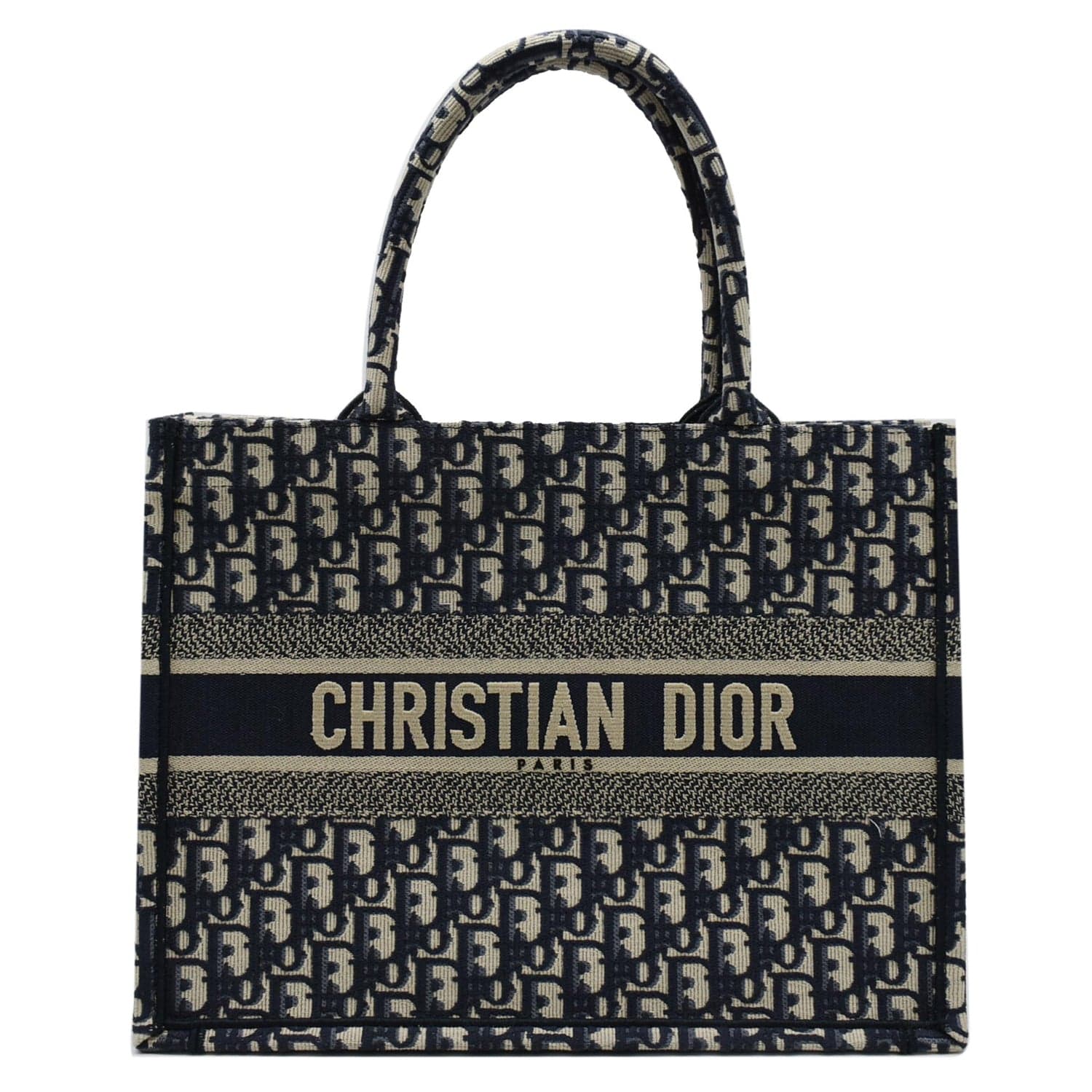 CHRISTIAN DIOR Book Medium Oblique Embroidery Tote Bag Blue