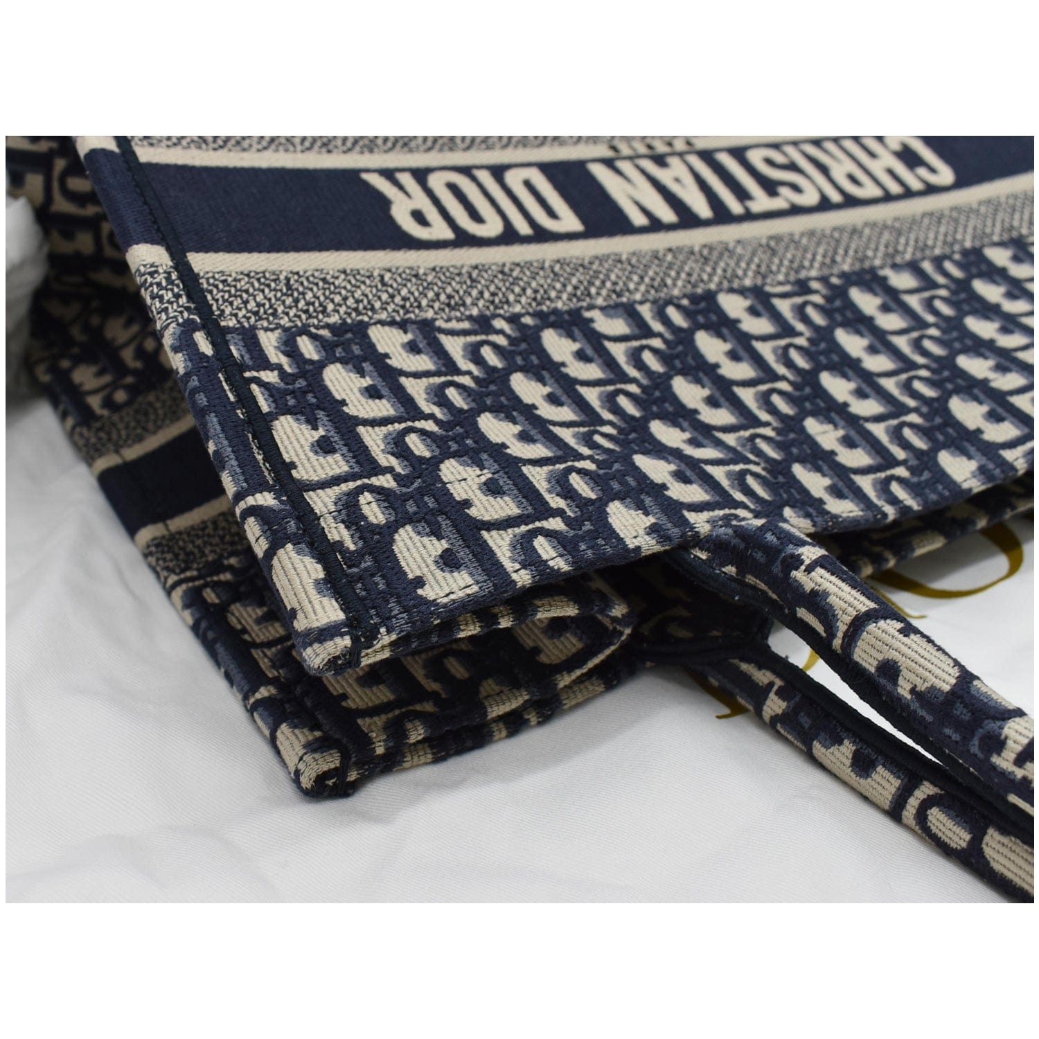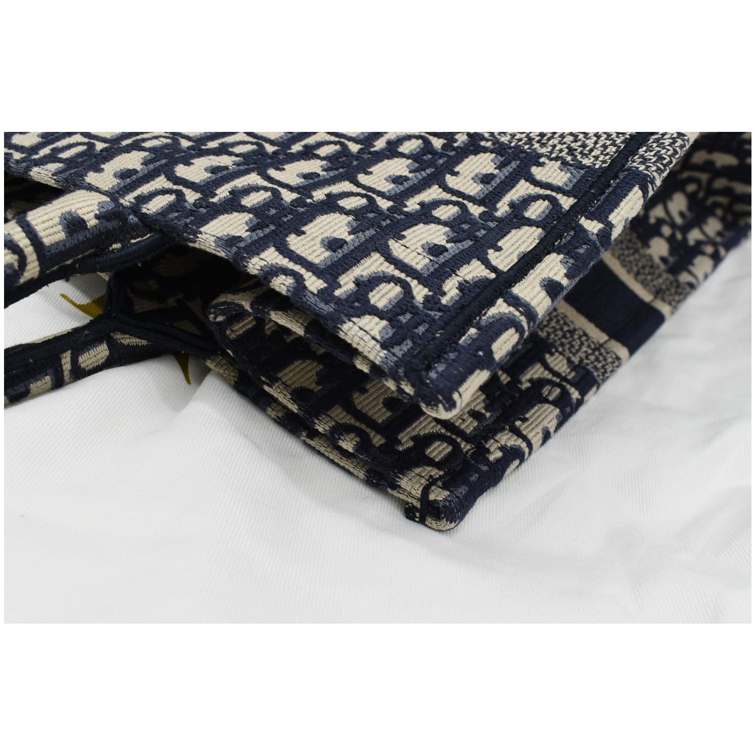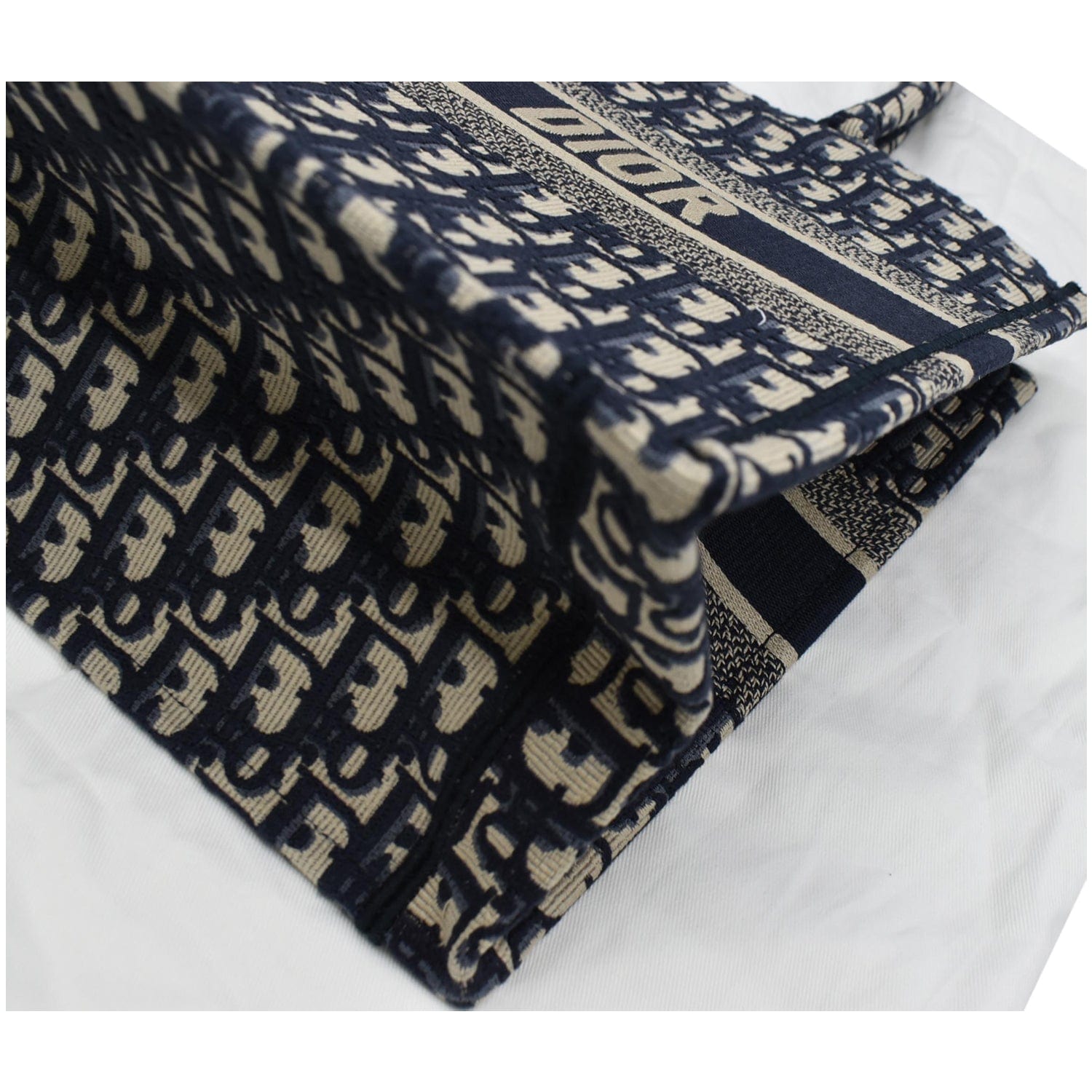 CHRISTIAN DIOR Book Medium Oblique Embroidery Tote Bag Blue