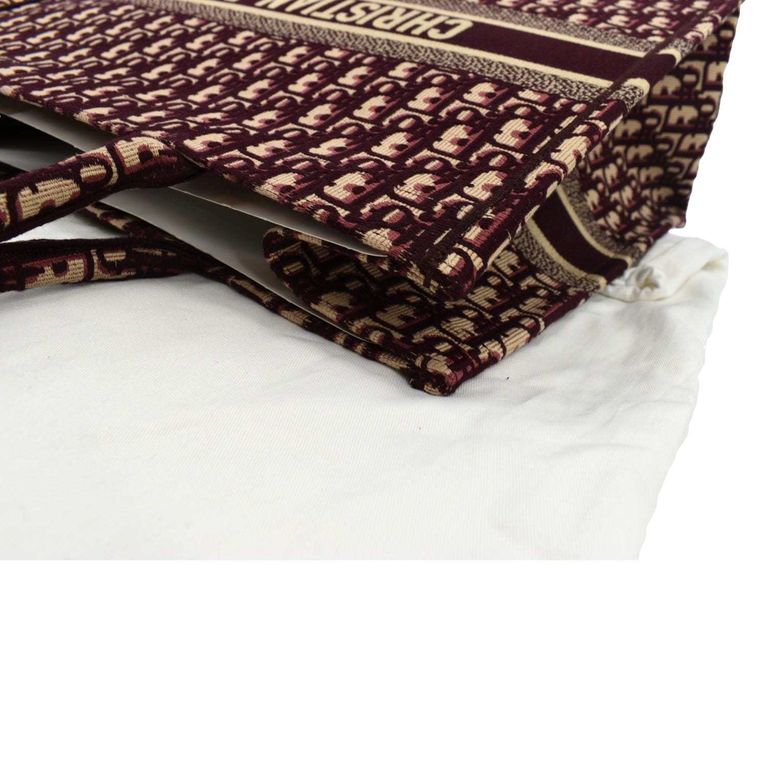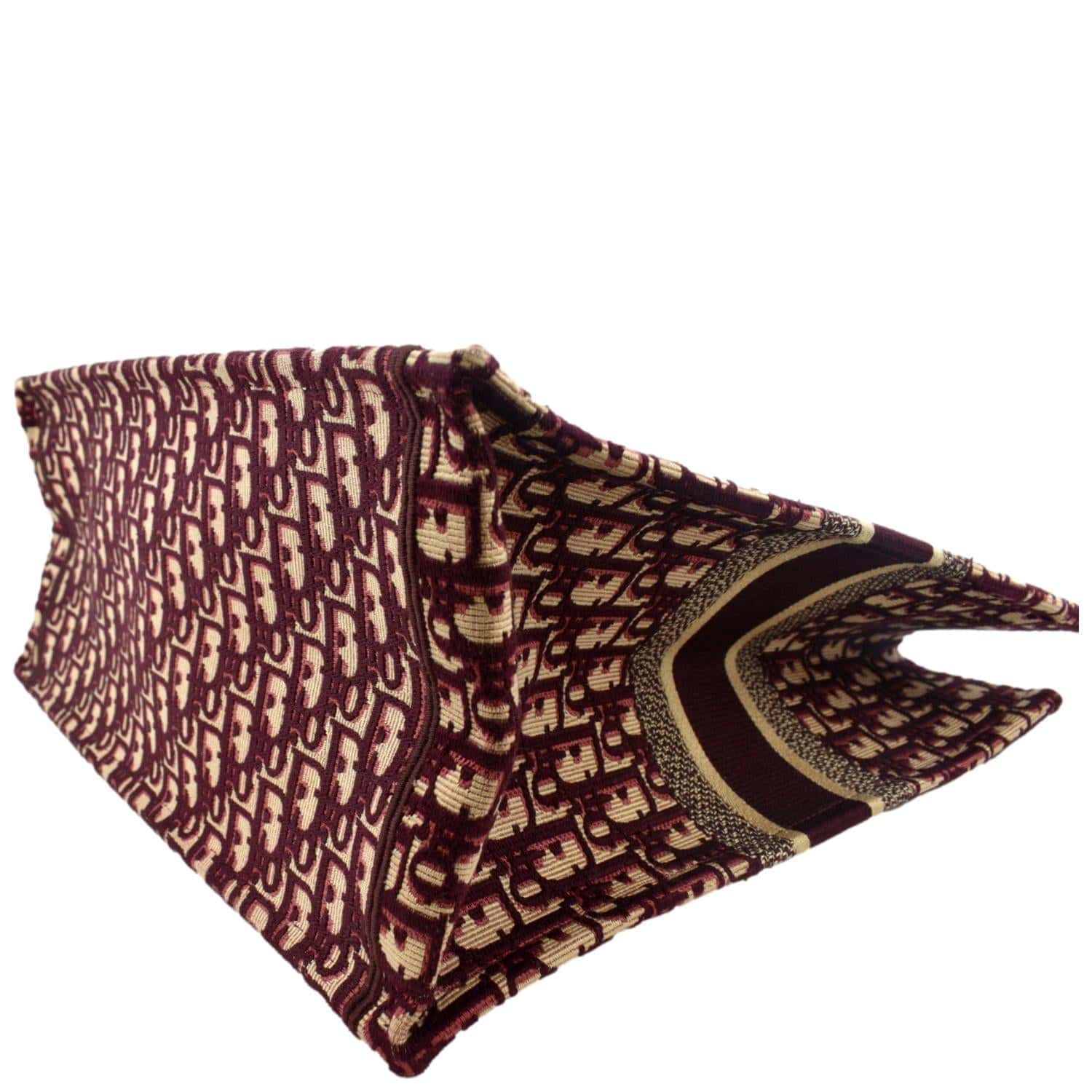 CHRISTIAN DIOR Book Oblique Embroidered Canvas Tote Bag Burgundy