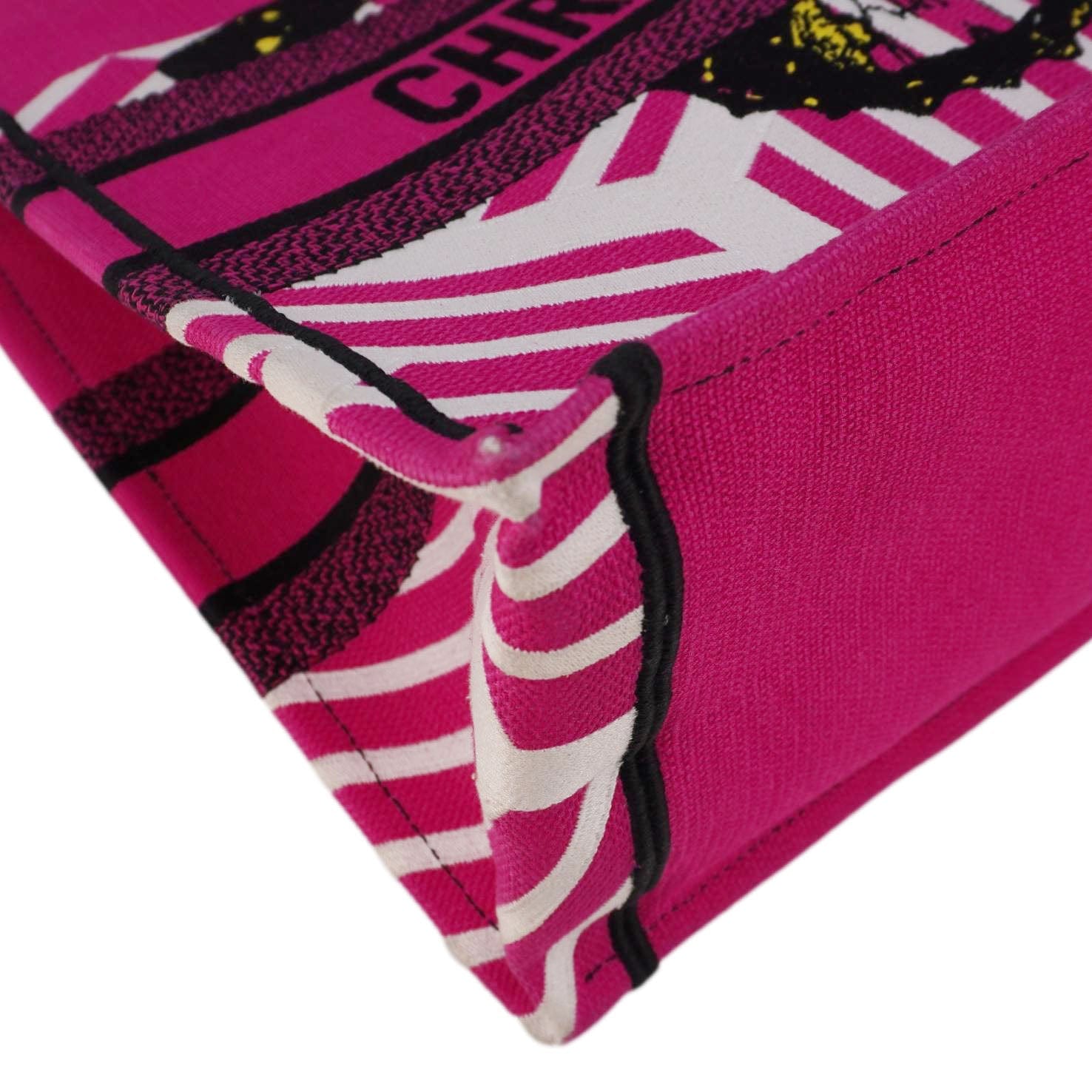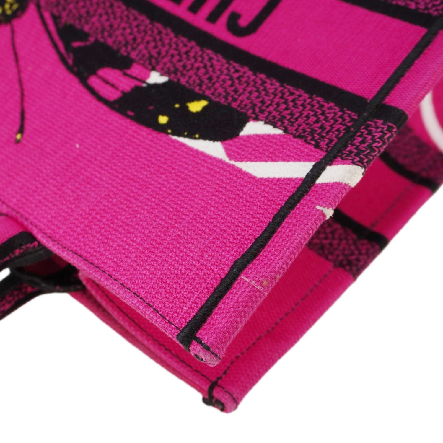 The Christian Dior Butterfly Book Canvas Tote Bag in pink is a stunning statement piece. Adorned with intricate butterfly embroidery, it features the iconic "Christian Dior" logo and offers ample space, combining elegance with practicality.