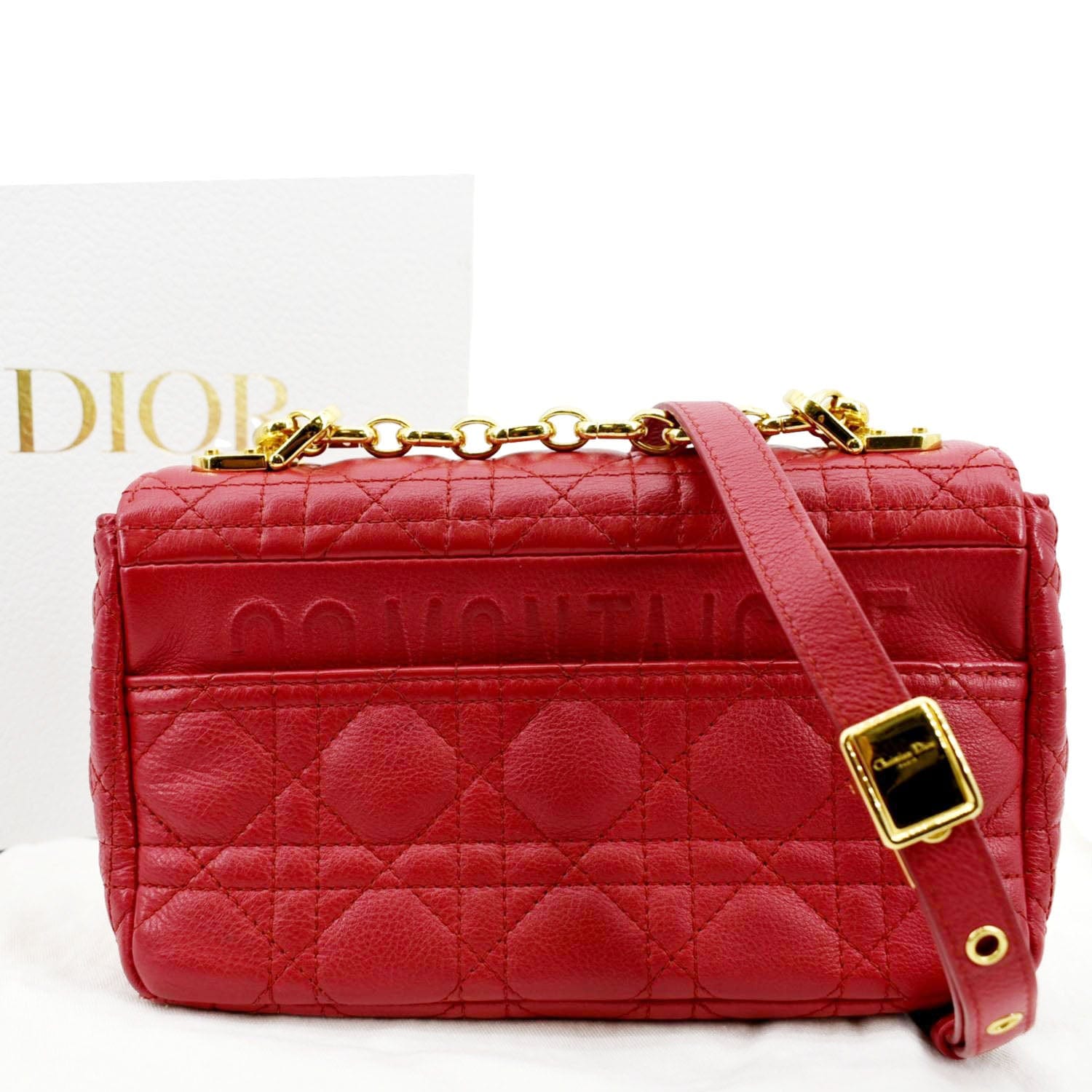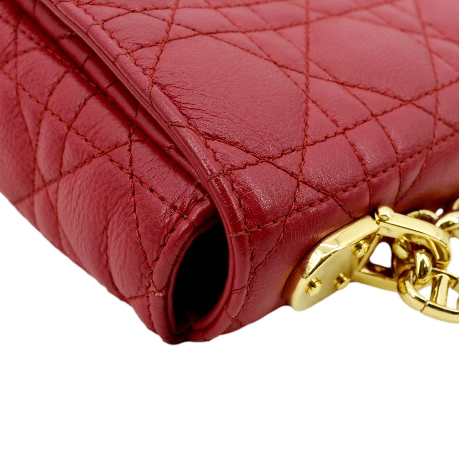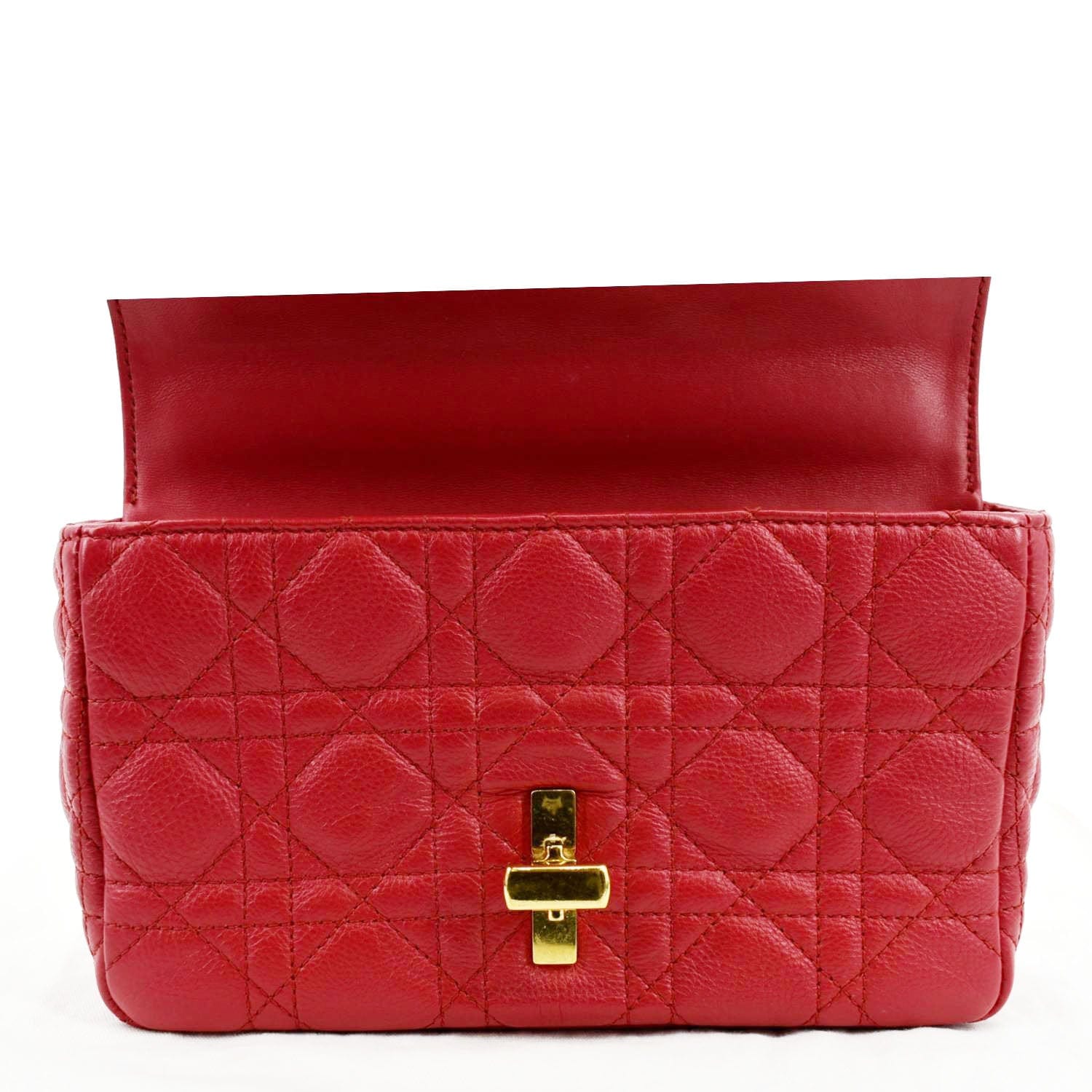 CHRISTIAN DIOR Caro Cannage Calfskin Leather Shoulder Bag Red